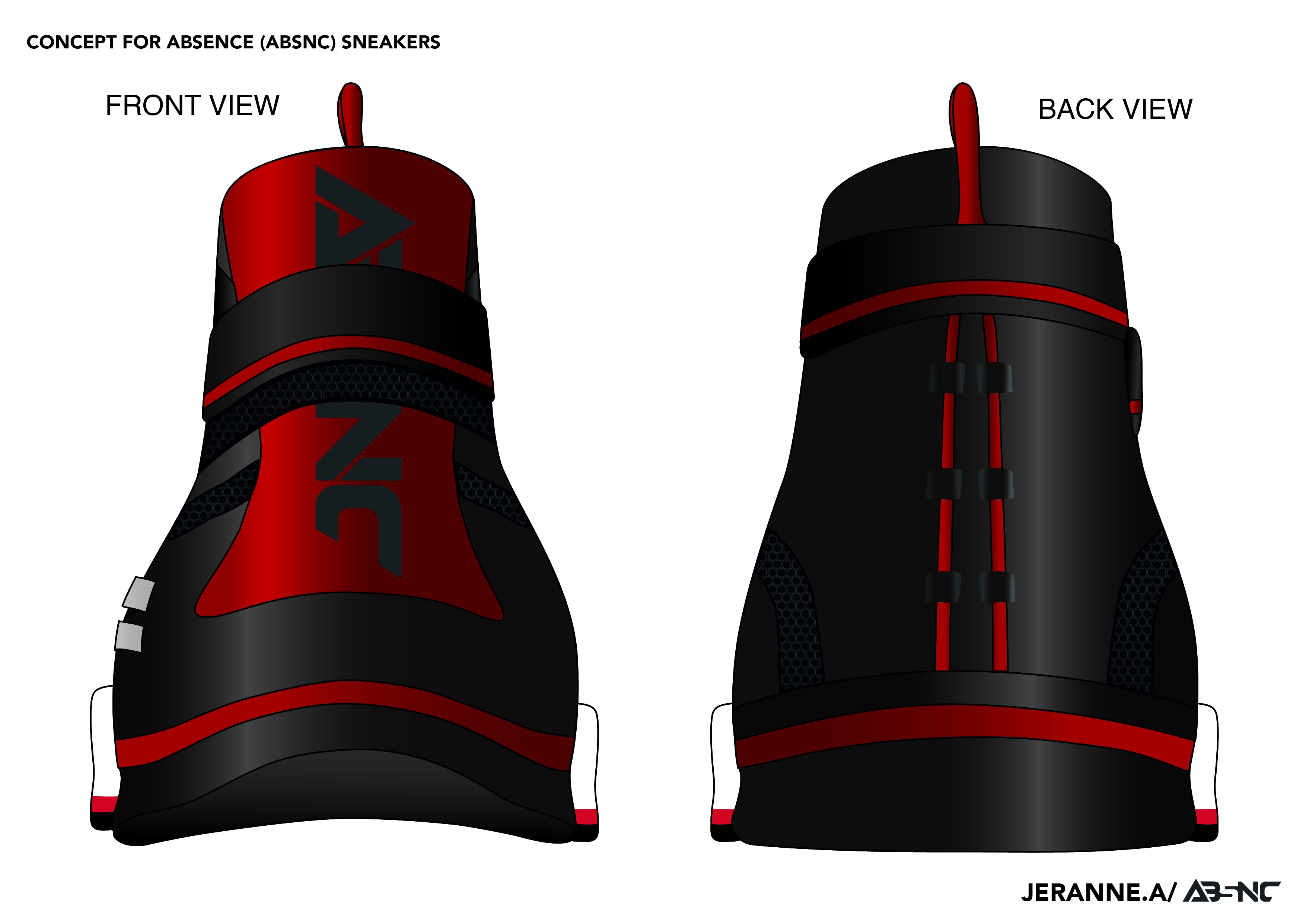 Created this high top concept sneaker back in 2018 during some sneaker challenge. I have decided to modify it a little and added my own brand ABSENCE (ABSNC) onto the sneakers itself. It is more of a fashion/lifestyle sneakers for everyday use. There is the breathable mesh as well as EVA foam for comfort, and also 3M reflective stripes on the sneaker itself. The magnetic strap is to create convenience for the consumer, instead of having to lace or velcro strap which might wear off after some time. The uppers is made from veg tan leather.