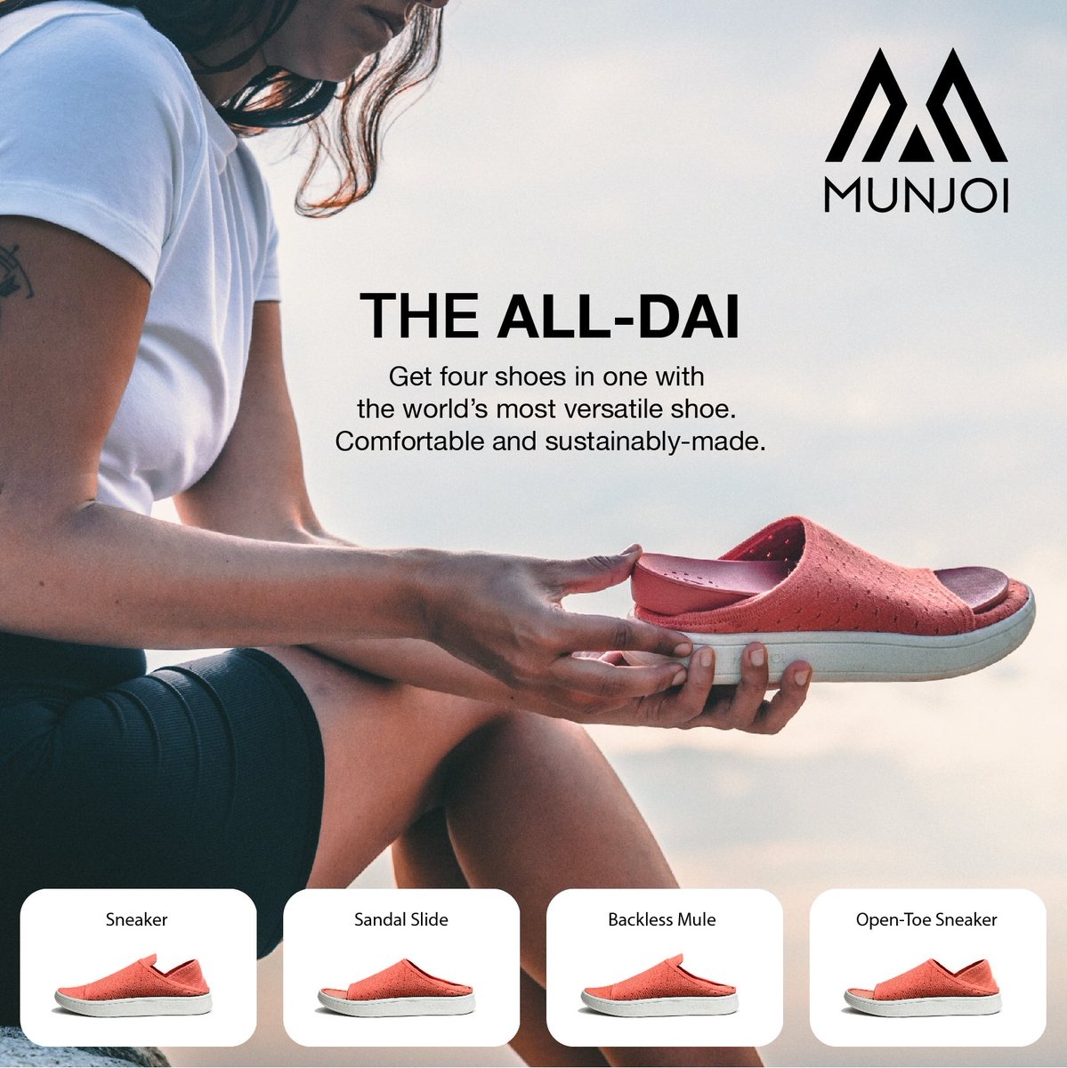 The All Dai was designed under the vision of Patrick Hogan, an American founder of MUNJOI. Patrick knows first-hand how extremely wasteful, polluting, and energy-consuming the footwear industry is to our environment. Making better material choices is a good first step, but with almost 70 million pairs of shoes manufactured every single day, there is an additional need to create less footwear to greatly reduce our carbon footprint. SEMS and their “Factory of the Future” is dedicated to manufacturing more sustainable footwear and offering innovative solutions to reduce environmental pollution.