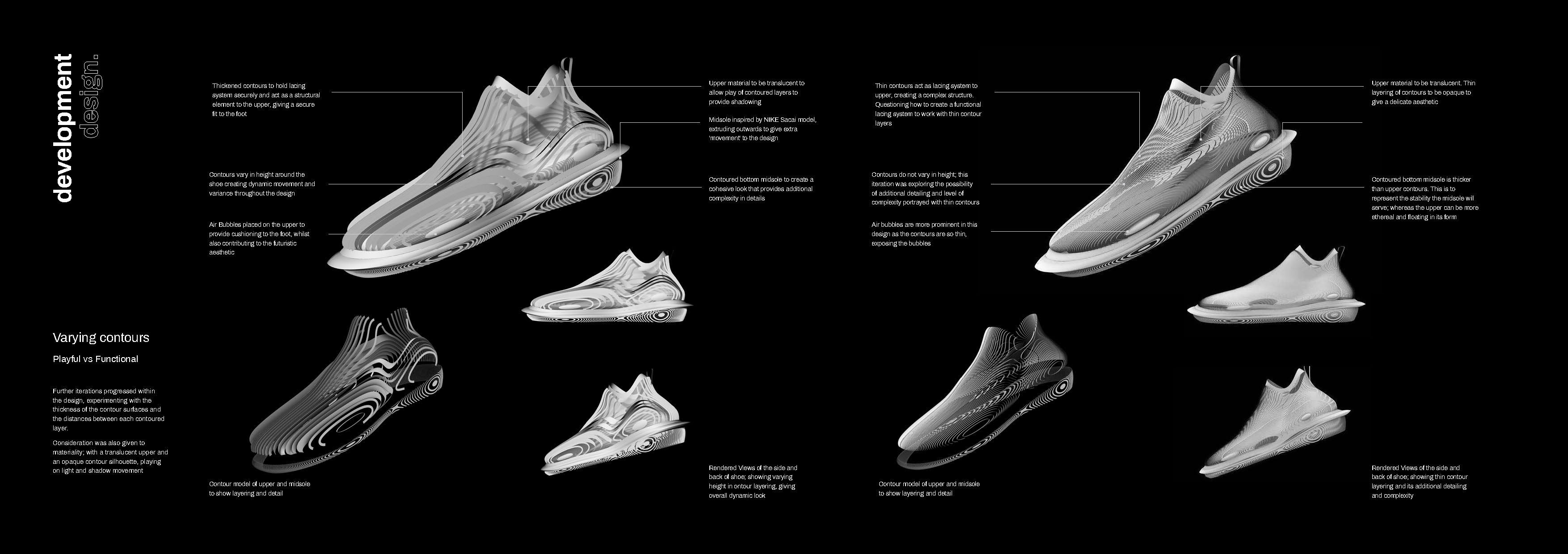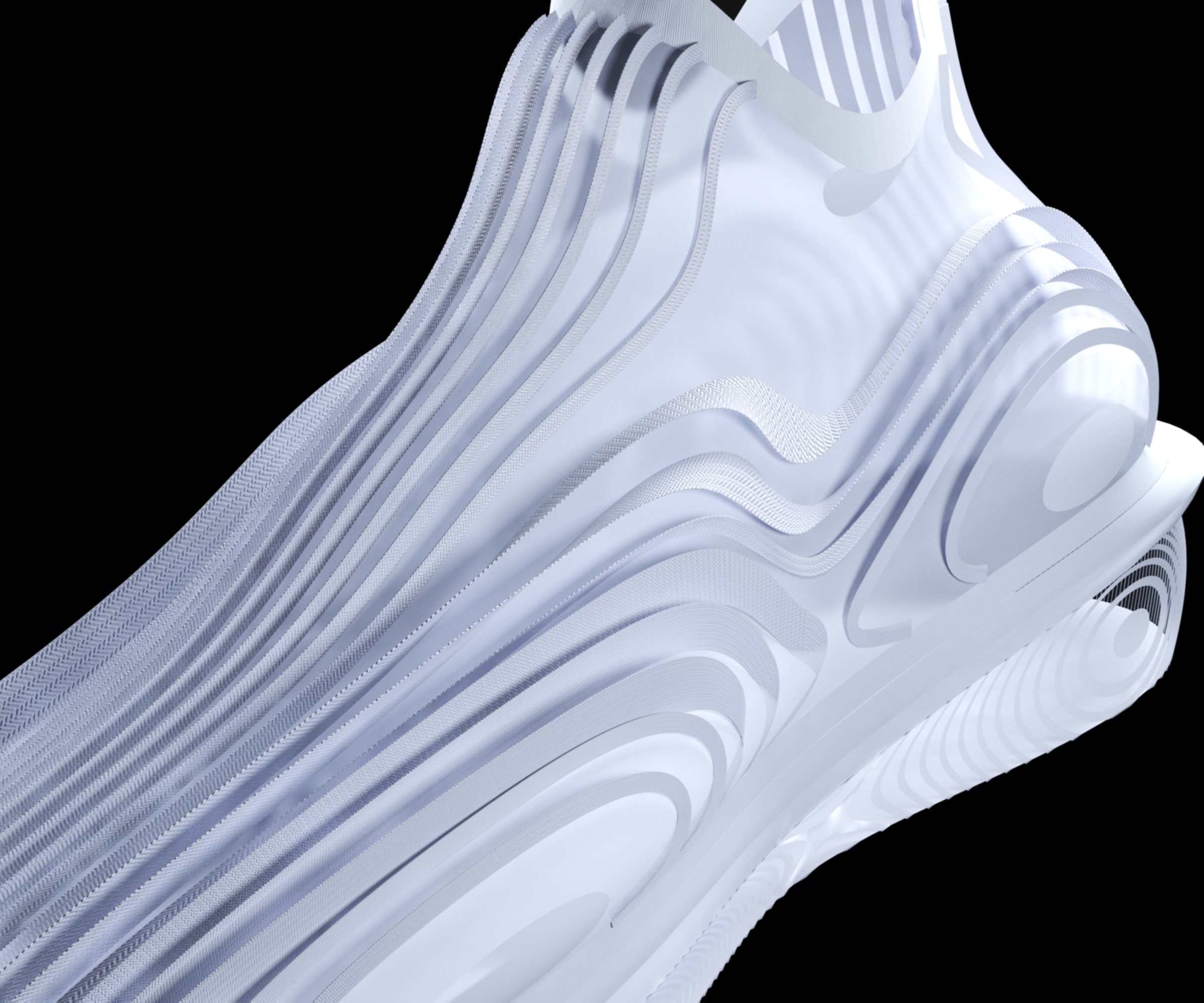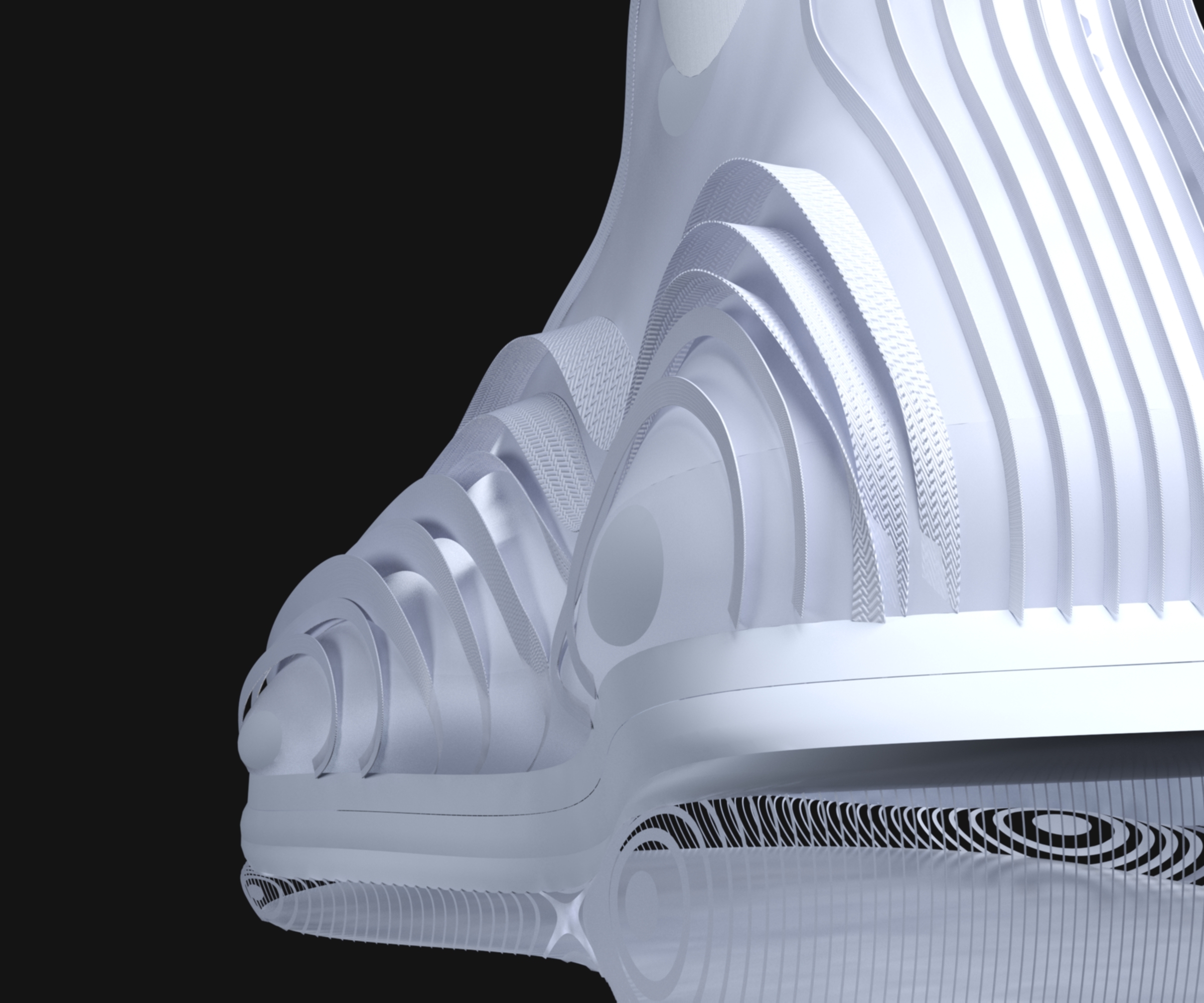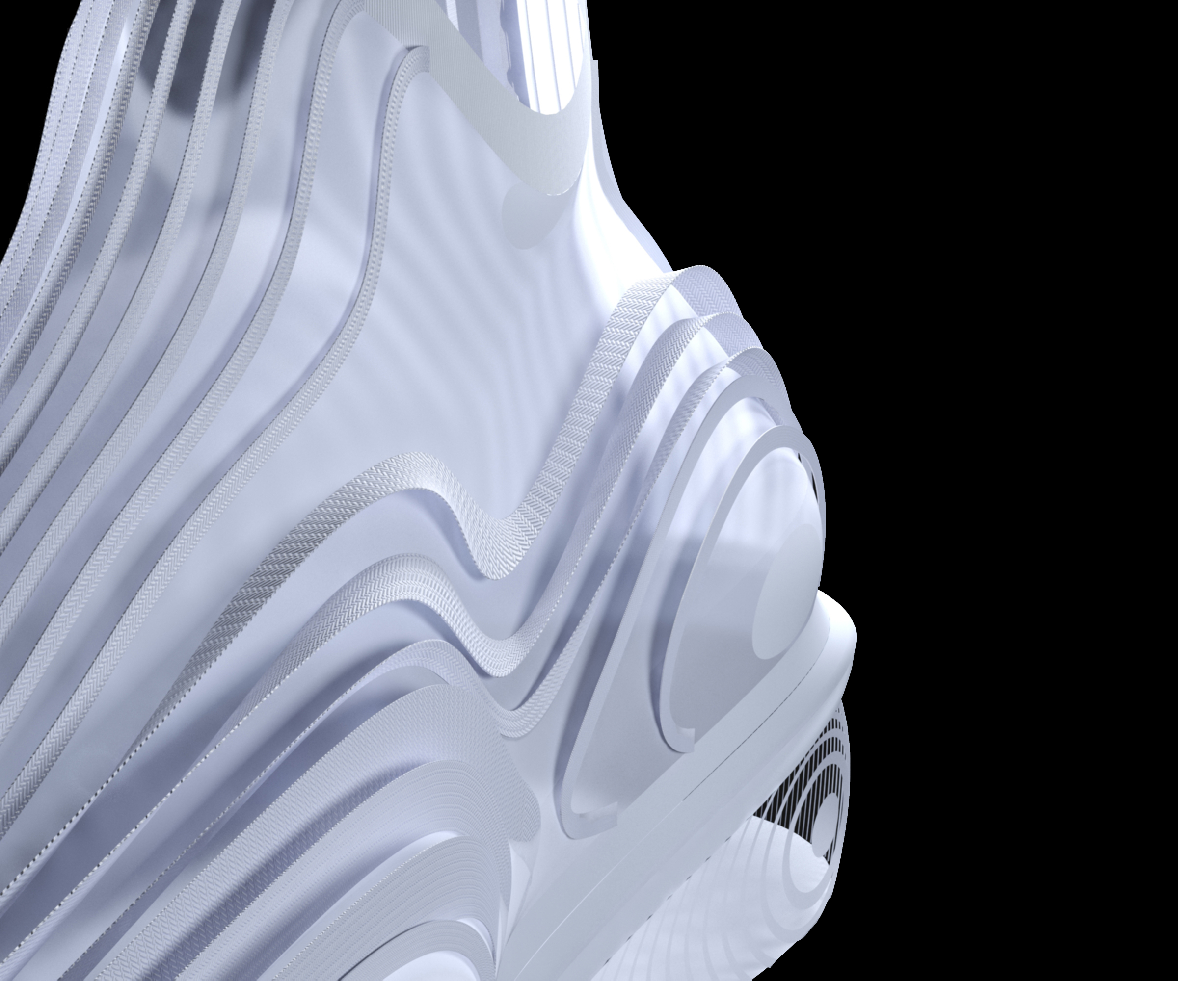 Zaha Hadid is a creative visionary who has challenged the conventions of her profession. Hadid’s focus on seamless architecture is concerned with the connectivity of parts and the idea of the process as well as the product. Having a background in architecture made me think of what the intersection of architecture and footwear design could look like. This is a speculative concept for what lies at the intersection of both creative design industries.