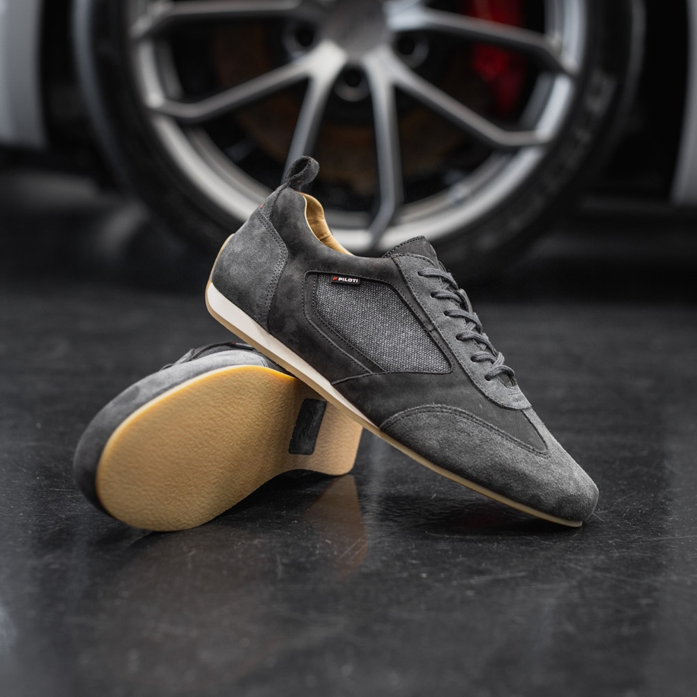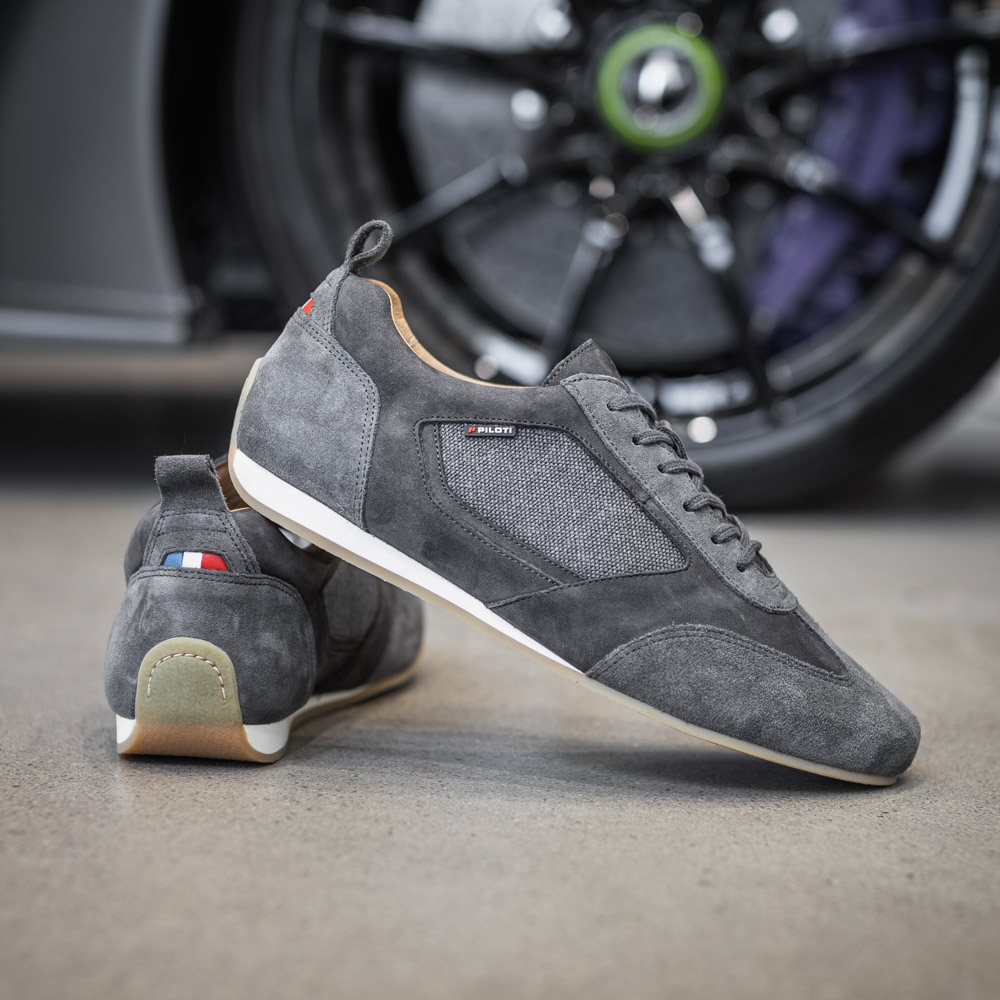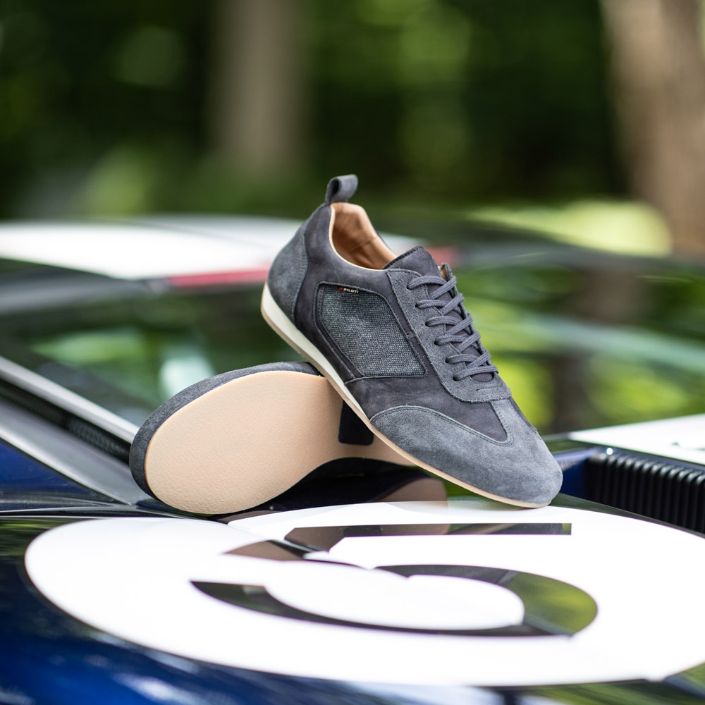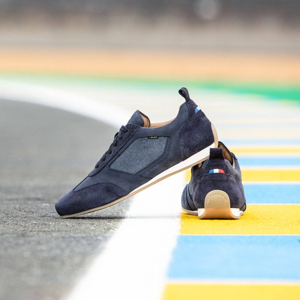 The Endurance driving shoe is part of our official-licensed 24 Hrs of Le Mans collection, making it a wardrobe staple for any motorsport enthusiast! Handcrafted in Portugal from nubuck leather, suede and recycled cotton, this sneaker is offered on a vintage buffed EVA sole to provide a rubberized grip and rolled heel for additional control while driving. Featuring one-of-a-kind detailing, a leather French flag and official Le Mans branding, this versatile shoe can be worn as a casual staple or track-day essential.