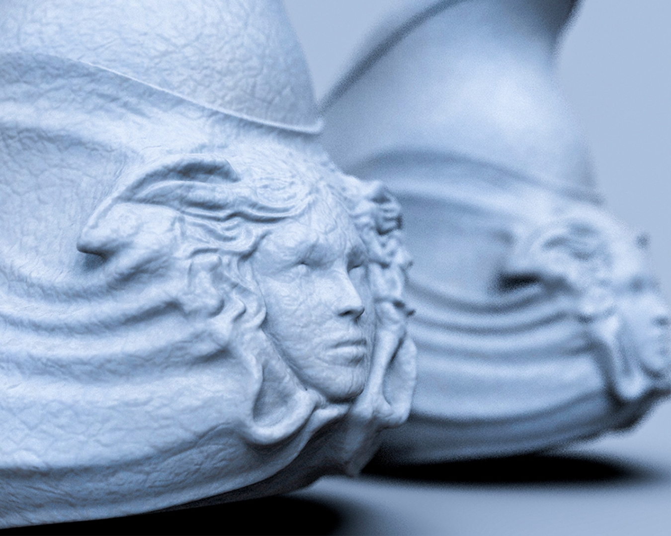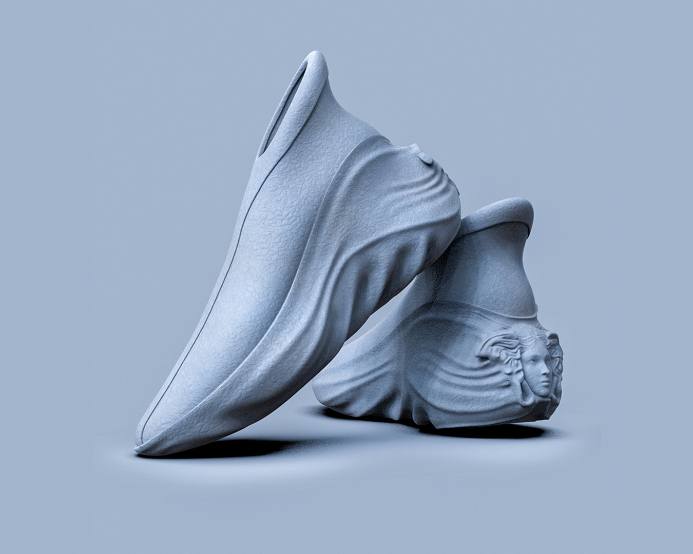 Mythology is a vision concept designed for Versace. The design of the sneaker is inspired by Versace chain reaction and medusa head shape aesthetics seen on various products. Medusa had the power to convert people to stone so the sole texture of the shoe mimics the same concept and connects the ancient story with a modern take on the design language.