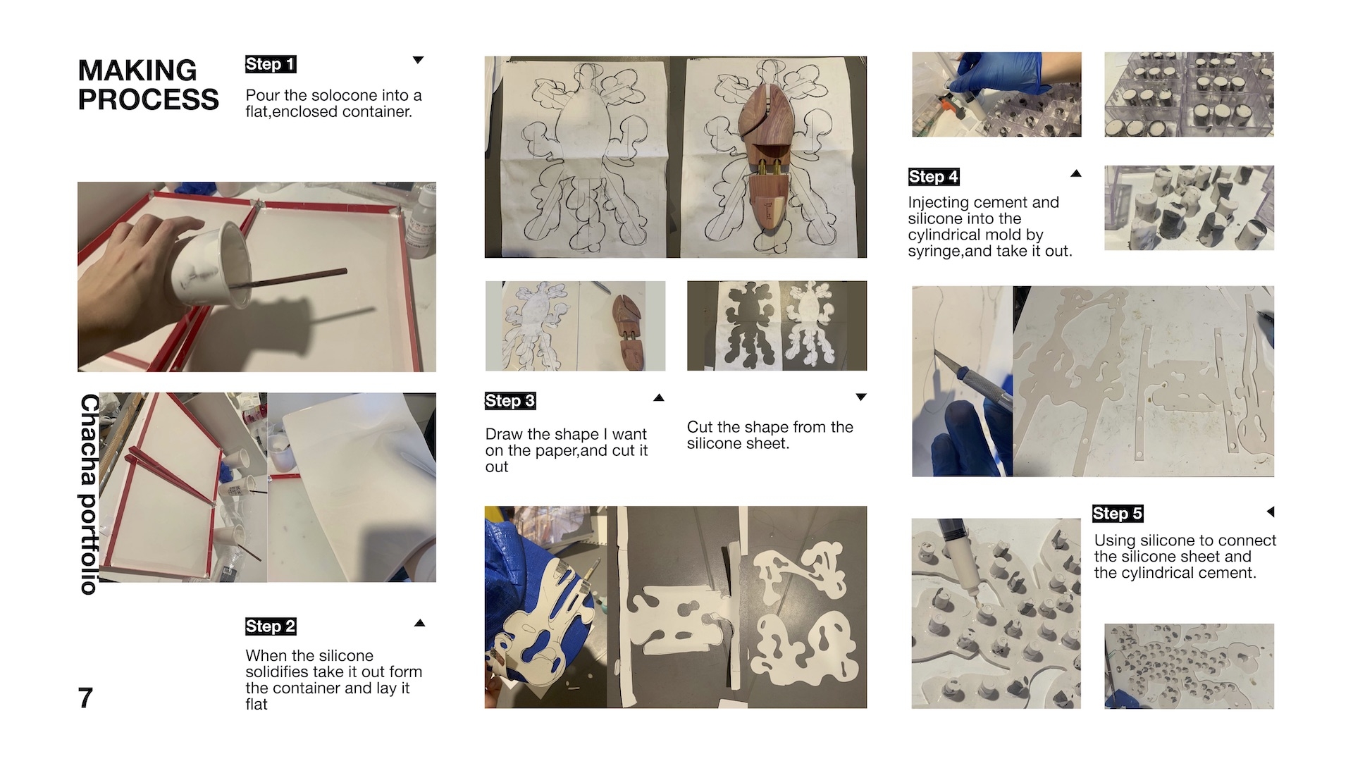 Then I explored a new mixed material that mixed grass seeds with silicon and cement which include nutrients,When it's stressed and deformed , seeds and cement will fall out,after that ,seeds still sprout.