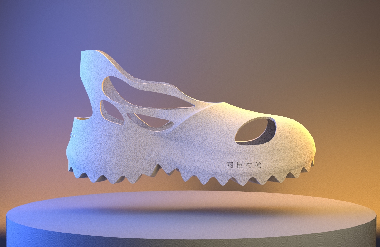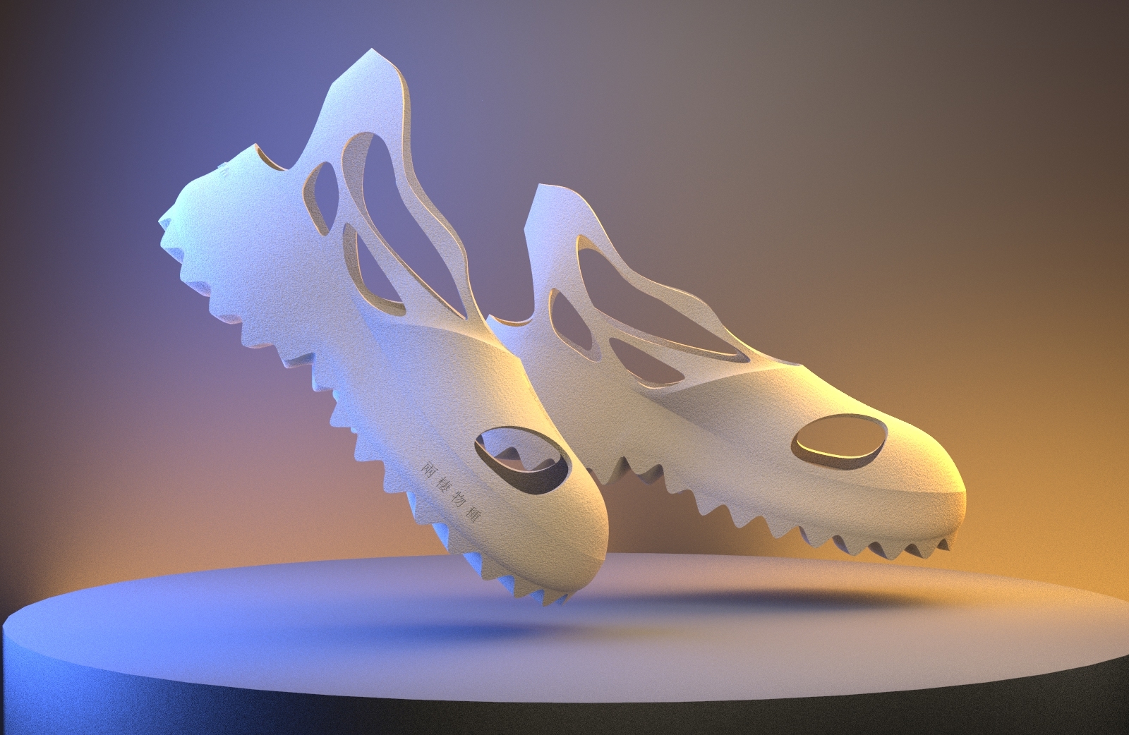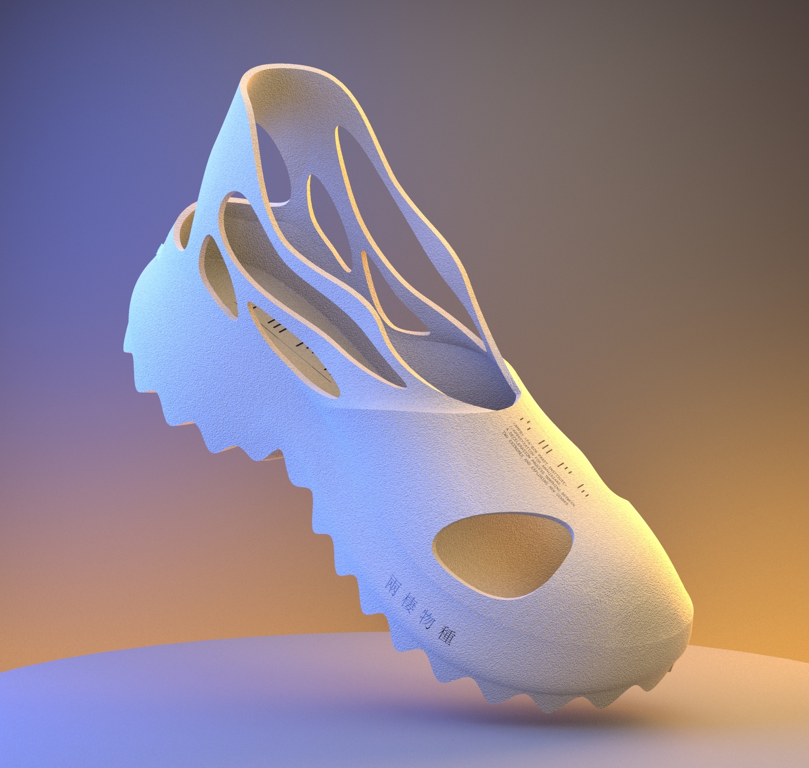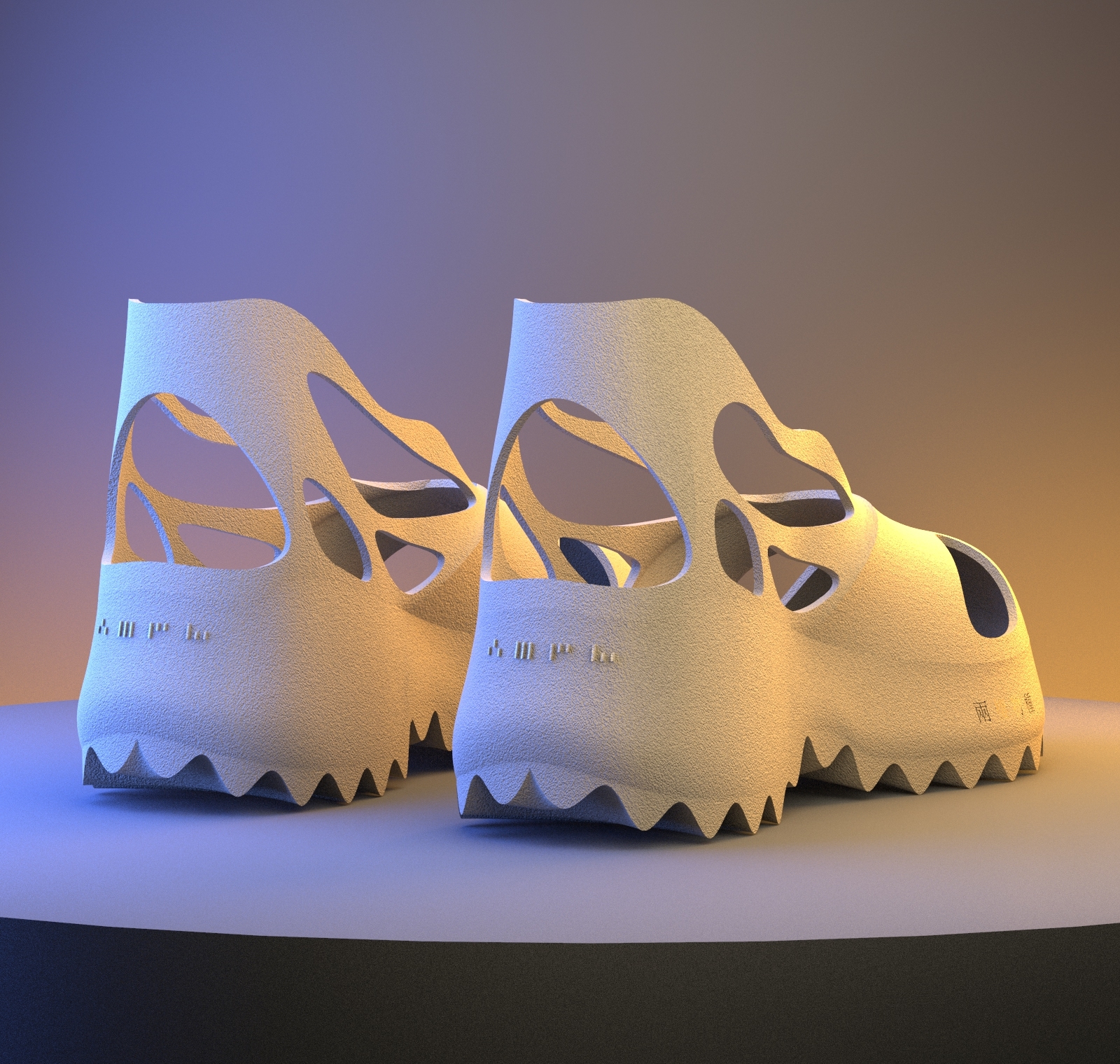 The shown model, as one of the possible outputs from the system, possesses heel protection, ventilation and sturdiness defined by its transformation templates.