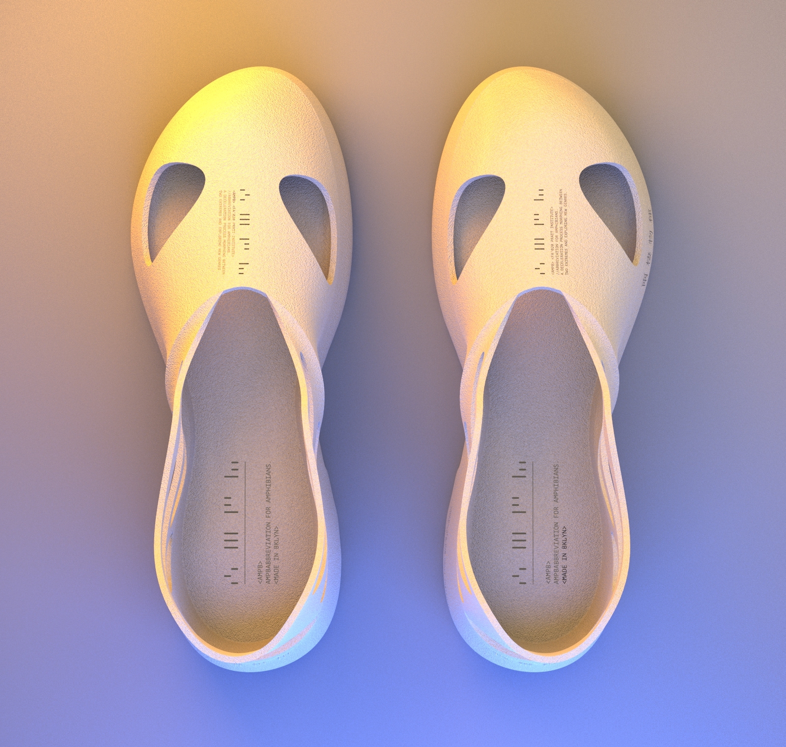 “AMPB” is the abbreviation for Amphibians; FTW_AMPB project represents a footwear-creation process morphing between two extremes.