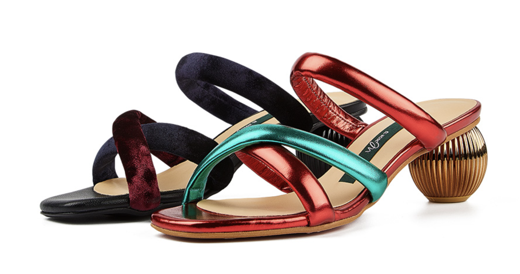 The symbol colours for CHRISTMAS! The padded cross-over straps will make you feel absolutely comfortable, and the unique shape of heel that resembles a decoration on Christams tree is another charming point of our product.