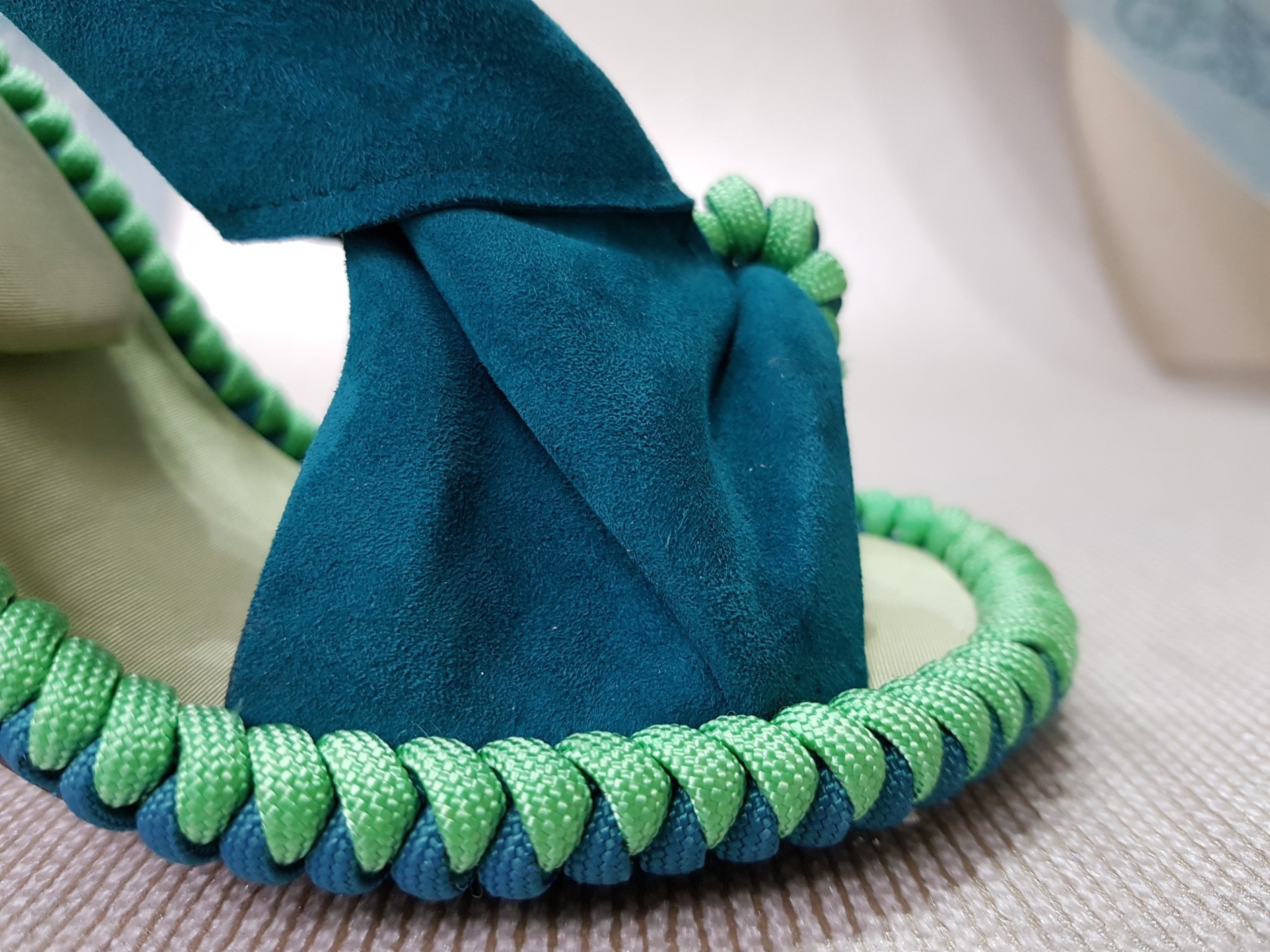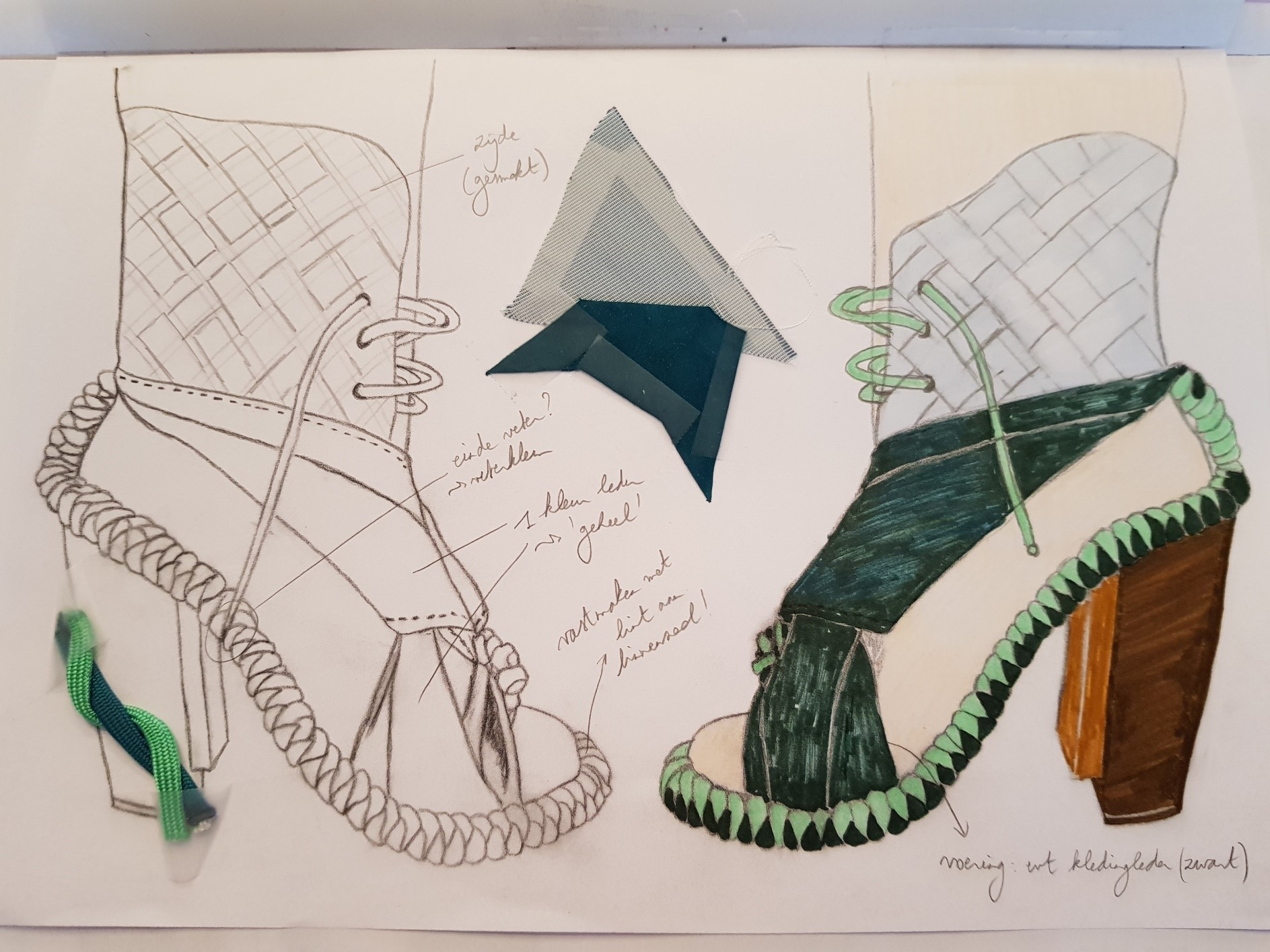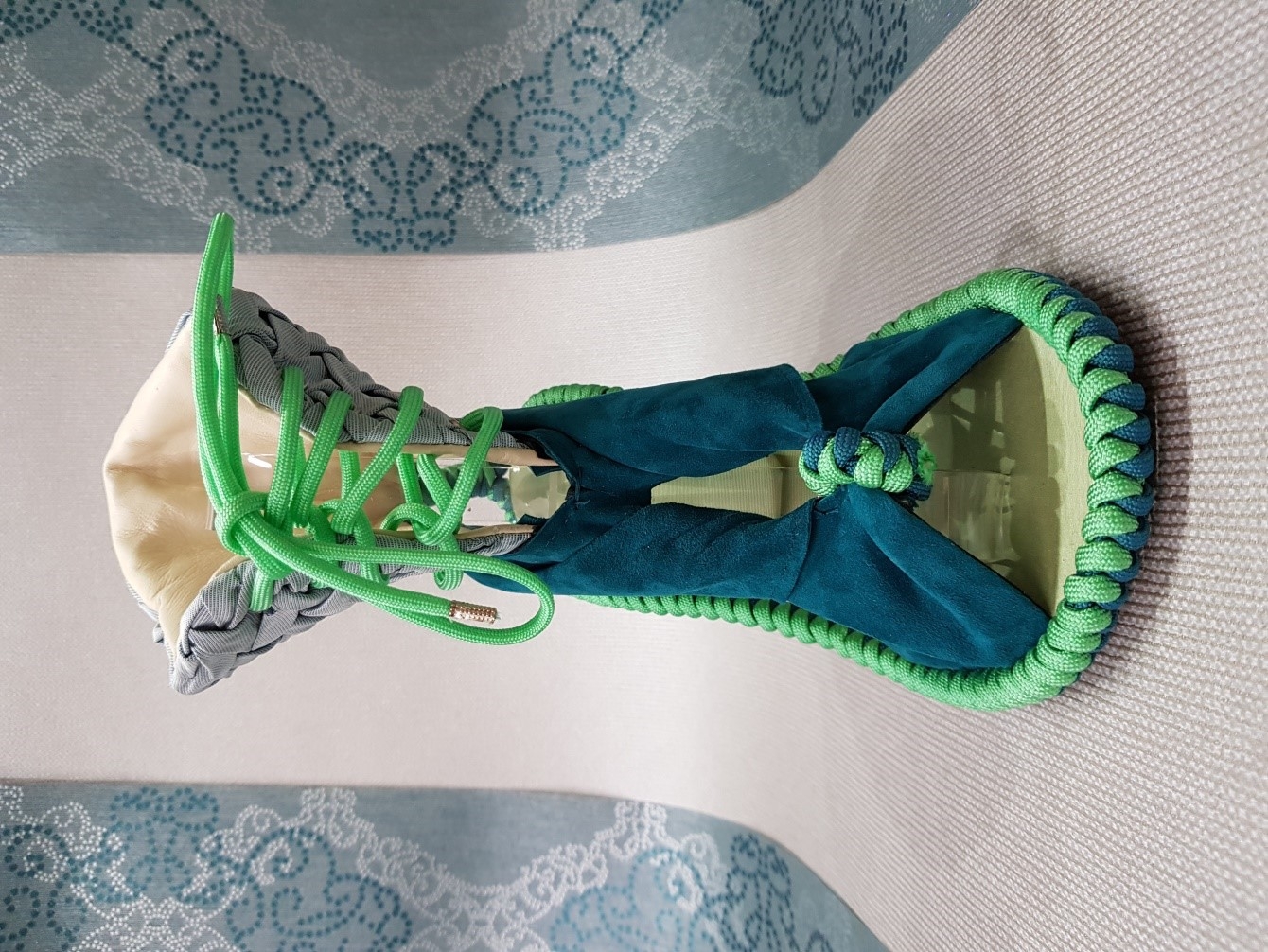 Inspired by the themes of Argentine tango and Victorian fashion. Tango is usually associated with passion and eroticism. Yet the tango has rather different characteristics: embrace, connection, intimacy. The shapes and lines refer to the rotational movements, flashing legs,… in tango. Victorian fashion is known for the elegant dresses and shoes in bright colors, made of expensive materials. The color palette, the smocking, the use of other fabrics such as silk, paracord, ... refer to this. The result is a shoe that is cool and sporty while also being elegant.