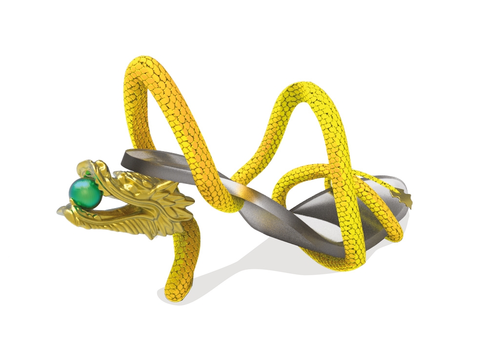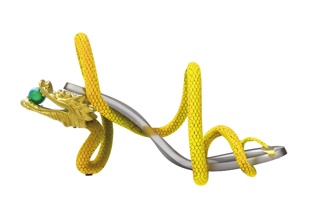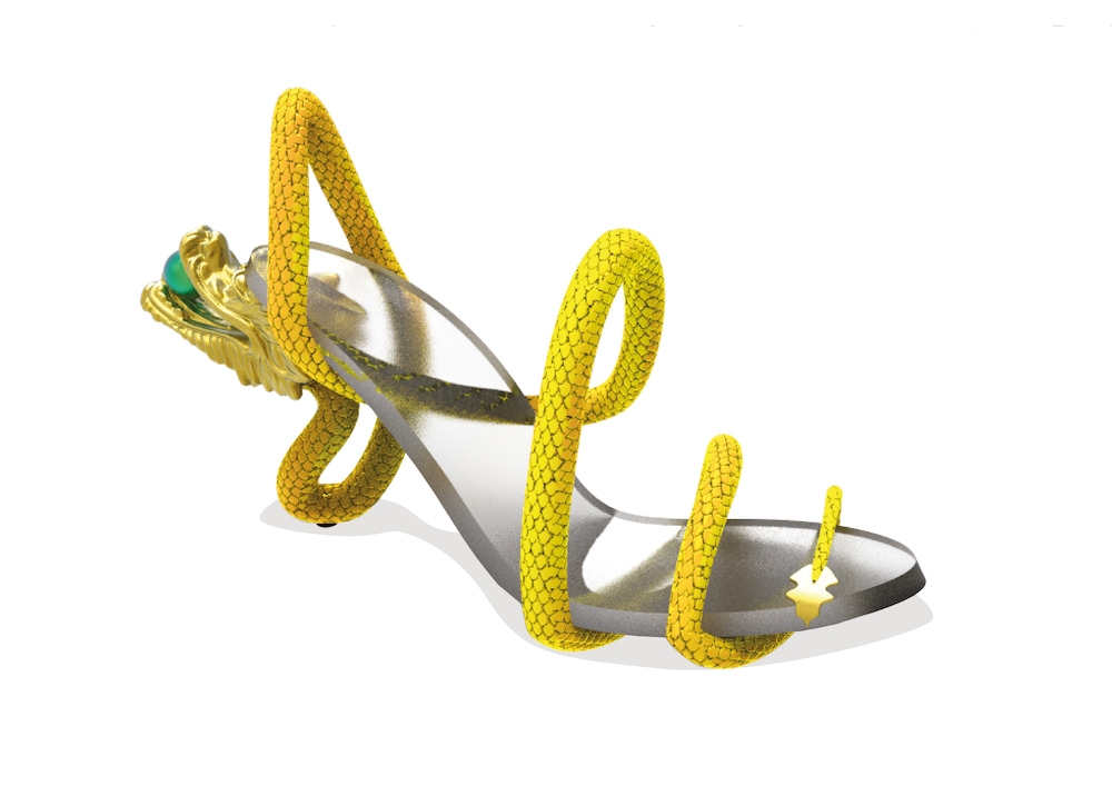 The dragon is a mythical creature in Chinese culture, symbolising power, strength and royalty. This design represents how women are similarly powerful and strong, often being overlooked as if they are mythical creatures. Similar to a dragon, women are confident and can hold their own in a world that is full of unknowns, this design aims to remind the user to take each step forward with the power and strength of royalty. With a concept using a clear base to allow for an illusion of the structure of the dragon as supporting the foot, it brings an unconventional thought to the form of heels.