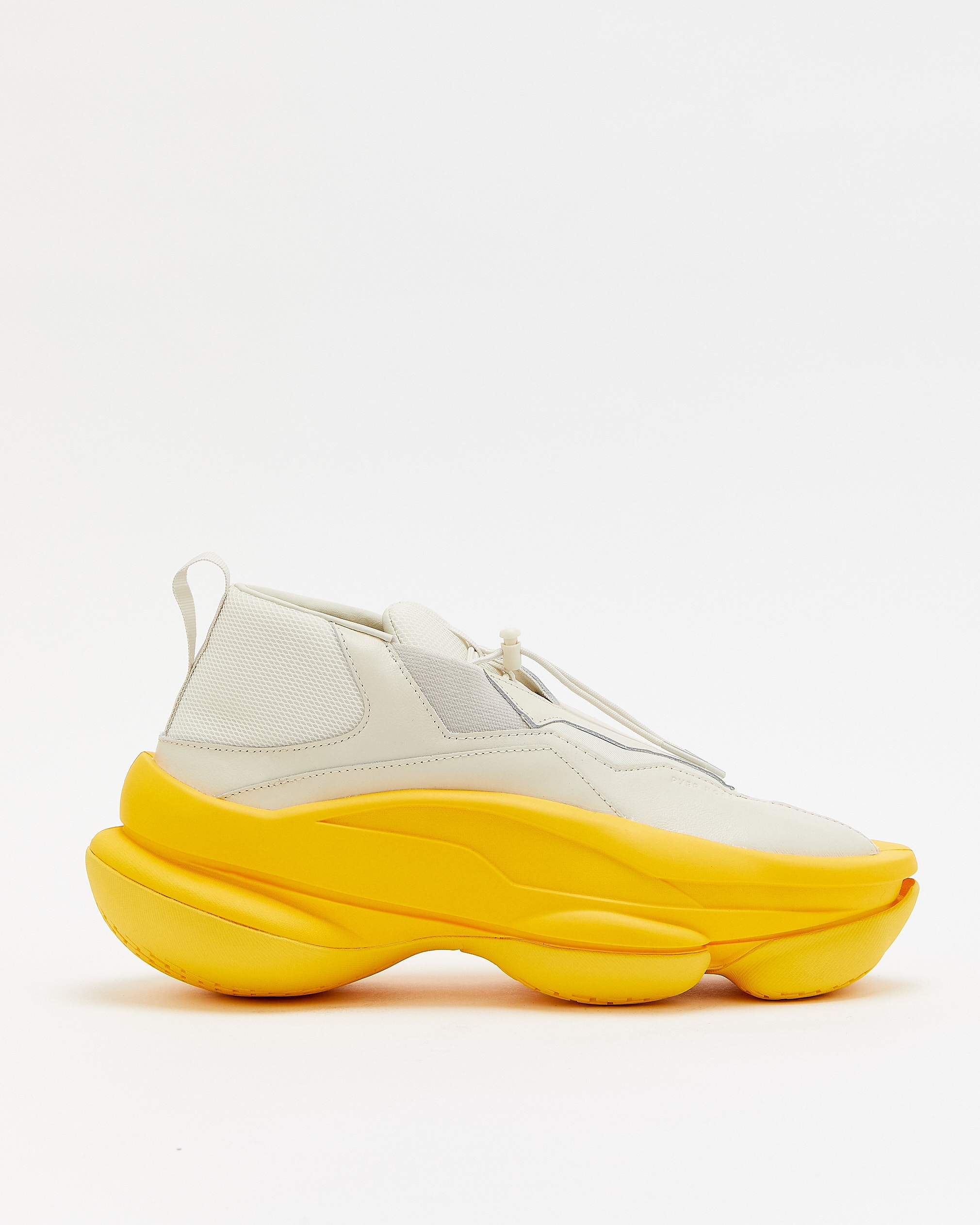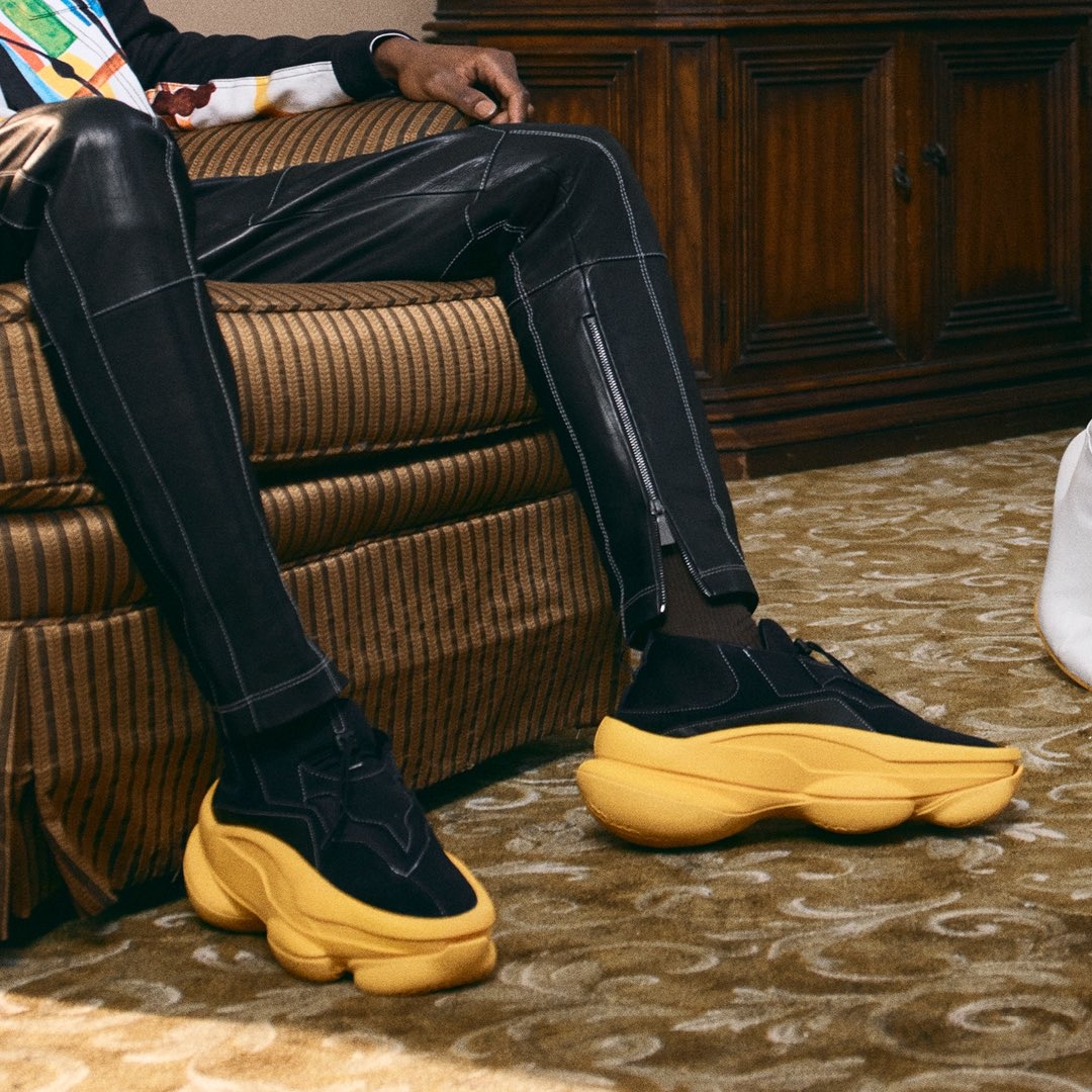 Minimal in its branding, the Sculpt opts to let its unique shape and bold colorblocking do the talking. Uppers boast a 5/8 basketball style cut with a somewhat sloped build, featuring neoprene, mesh and suede panels all done up in an ultra-soft tan. Below this sits a bulbous and bold yellow midsole and outsole combination. Creative Director, Kerby Jean-Raymond has described the brand as an art project or a social experiment. Pyer Moss is on a mission to stimulate discourse and provoke thought through it's compelling storytelling.