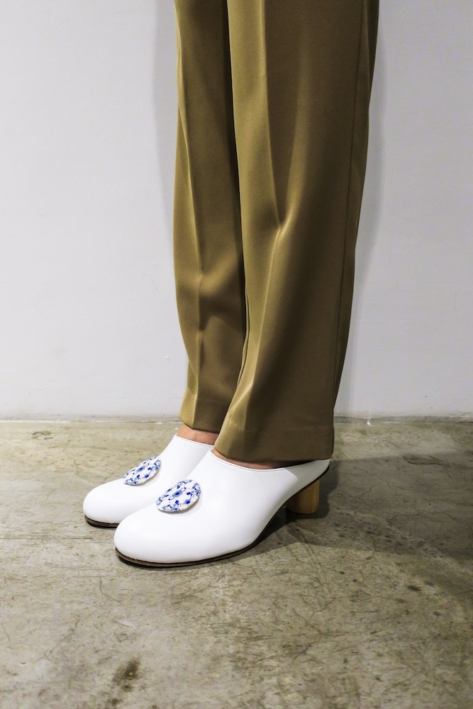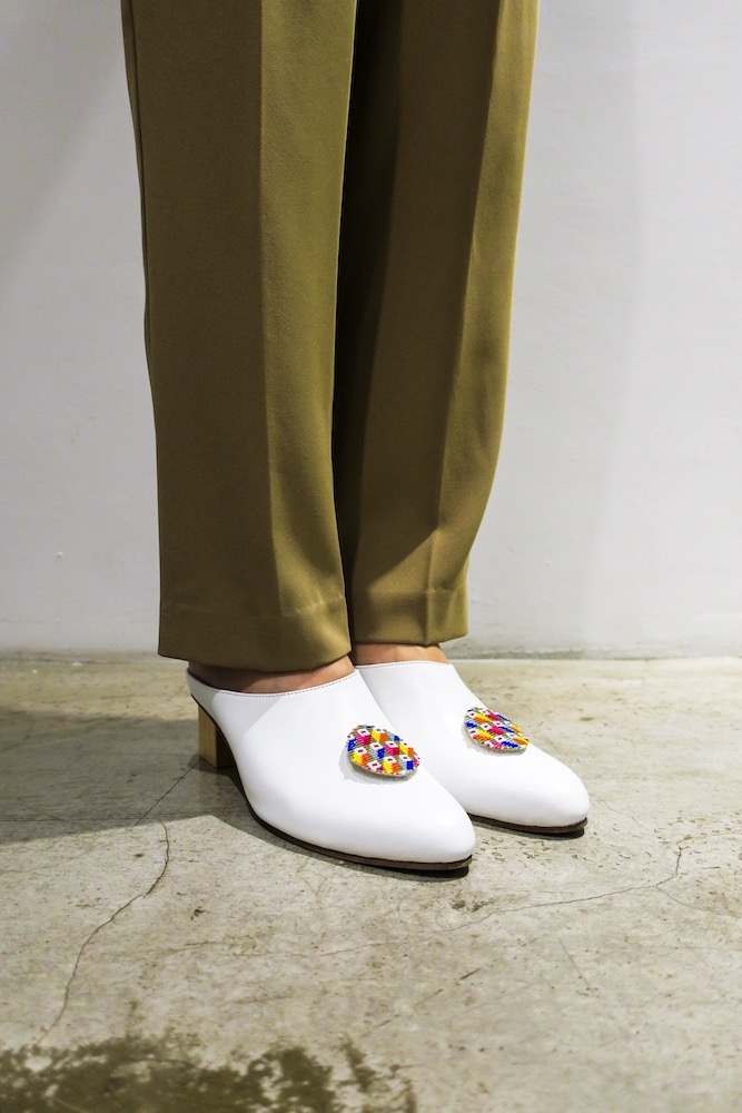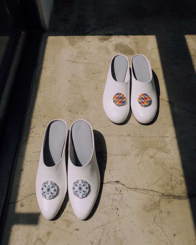 Created with both environmental and cultural sustainability at its focus, these mules are a culmination of the Peranakan traditional culture of beading and salvaged leather from tanneries. Taking inspiration from traditional Peranakan mules, native to the Malayan Straits, beading was used according to each shoes' purpose, often being very elaborate. However with traditional mules being less relevant, these mules are a minimalist interpretation. At the same time, the leather used is created by re-dying excess leathers, overran from past contracts, from tanneries in Thailand.