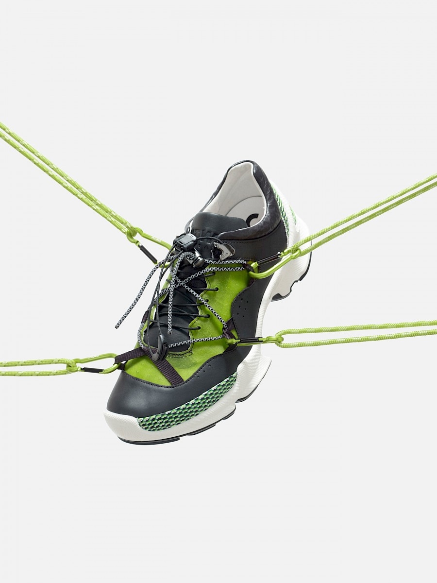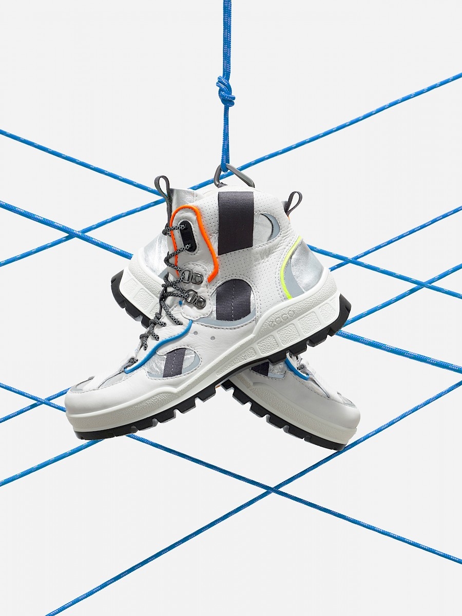 The Ecco Leather x STUDIO HAGEL collaboration explores the concept of functionality in a different light, which resulted in the collection named "UTW63716". Material development, art direction and design done by STUDIO HAGEL in collaboration with Ecco leather. A one-of-a-kind leather library was also developed and incorporated, such as ECCO Leather’s new Neo material, a newly researched and designed leather bonded with Dyneema®. The experimental collection incorporates ECCO’s signature direct injection, state-change Fluidform™ comfort technology.
