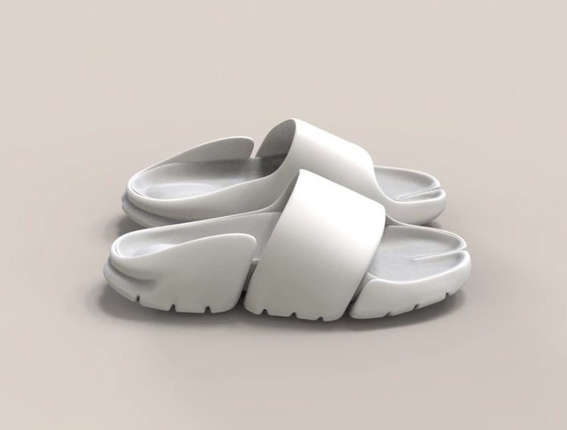 Exploring through Gravity Sketch, Olly Saunders idea of making a slide is a bit more adventurous than the average without losing the essence of what a slide sandal is. More flexible, balanced, sustainable, customizable and combinded with the simplicity aesthetic of flowing material formed around the foot. The concept features a sustainable 'Rise EVA' (Algae foam) outsole with deep tread cuts for flex and tabi toe for extra balance. The footbed is interchangable, allowing the consumer to replace the outsole in the future, or add custom fit if desired.
