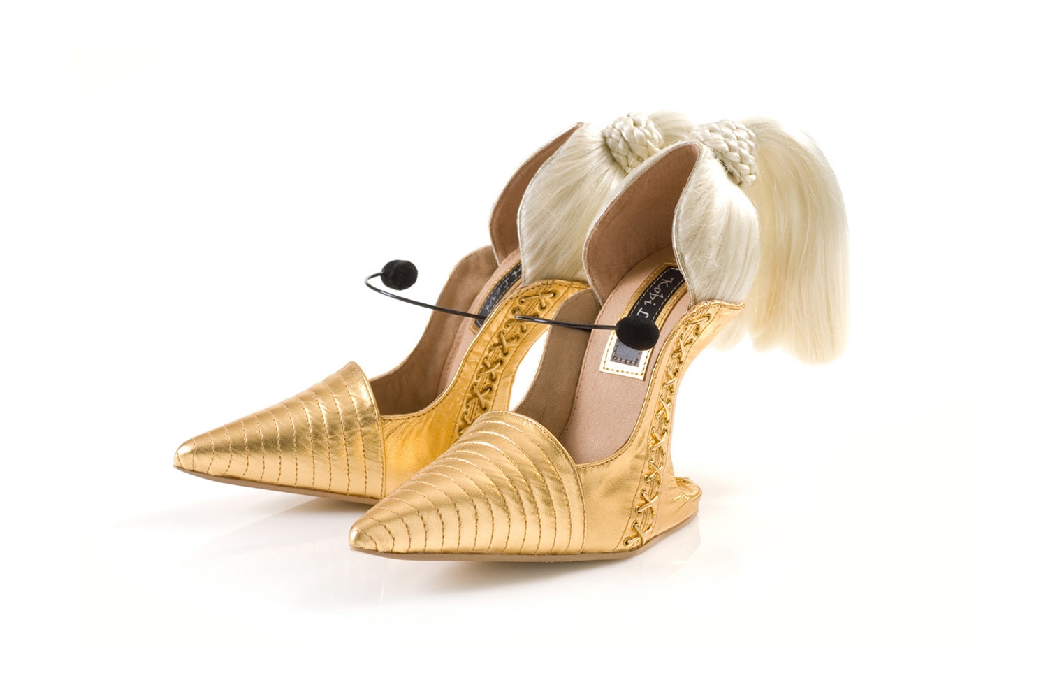 The inspiration for this design is Madonna’s iconic look from the early 90’s, wearing a cone bra corset designed by Jean-Paul Gaultier. This strong, sexy, belligerent feminine icon fits beautifully into a high heel design.For his own leisure Kobi designed unique, creative and innovative shoe styles, which challenge the standard definitions of design, art and fashion to create a niche of their own. In the studio he creates, develops and produces limited editions from his designs. All pairs are made by hand from high-quality materials.