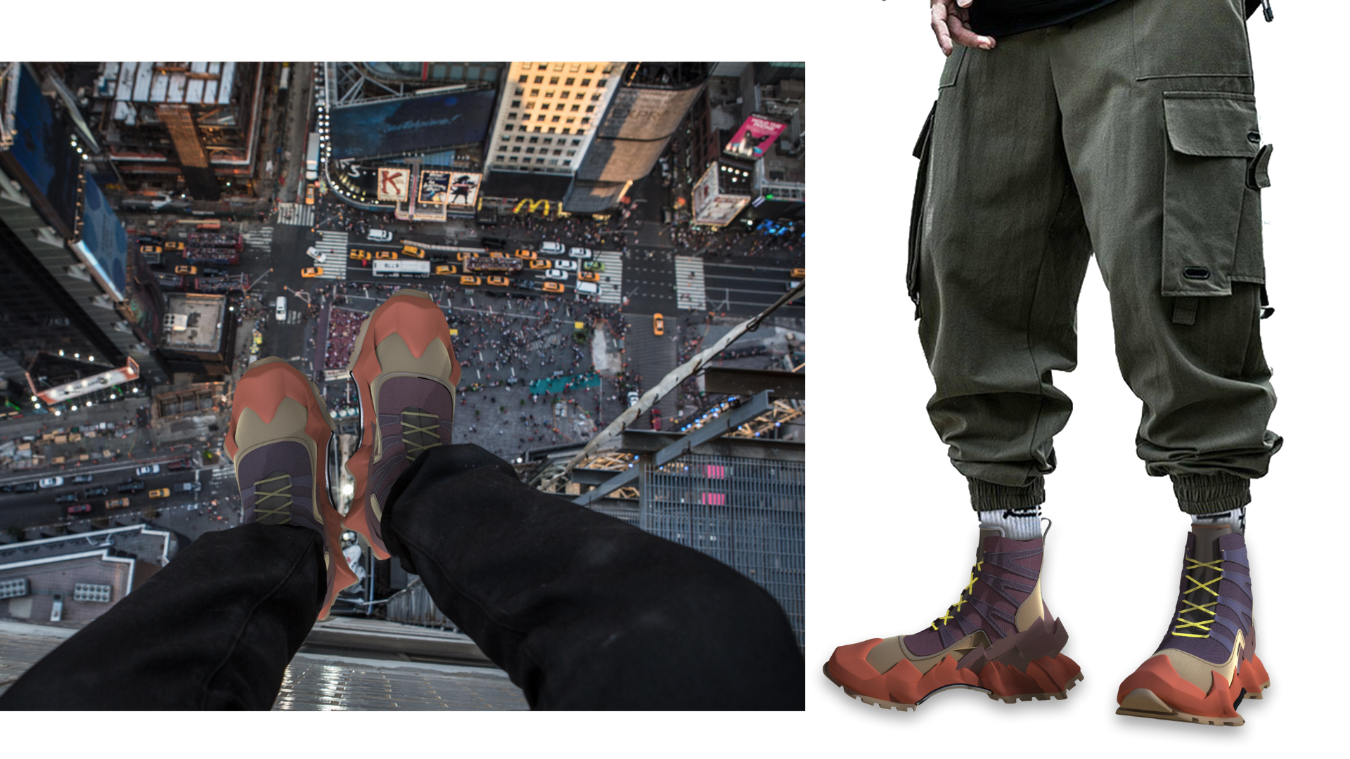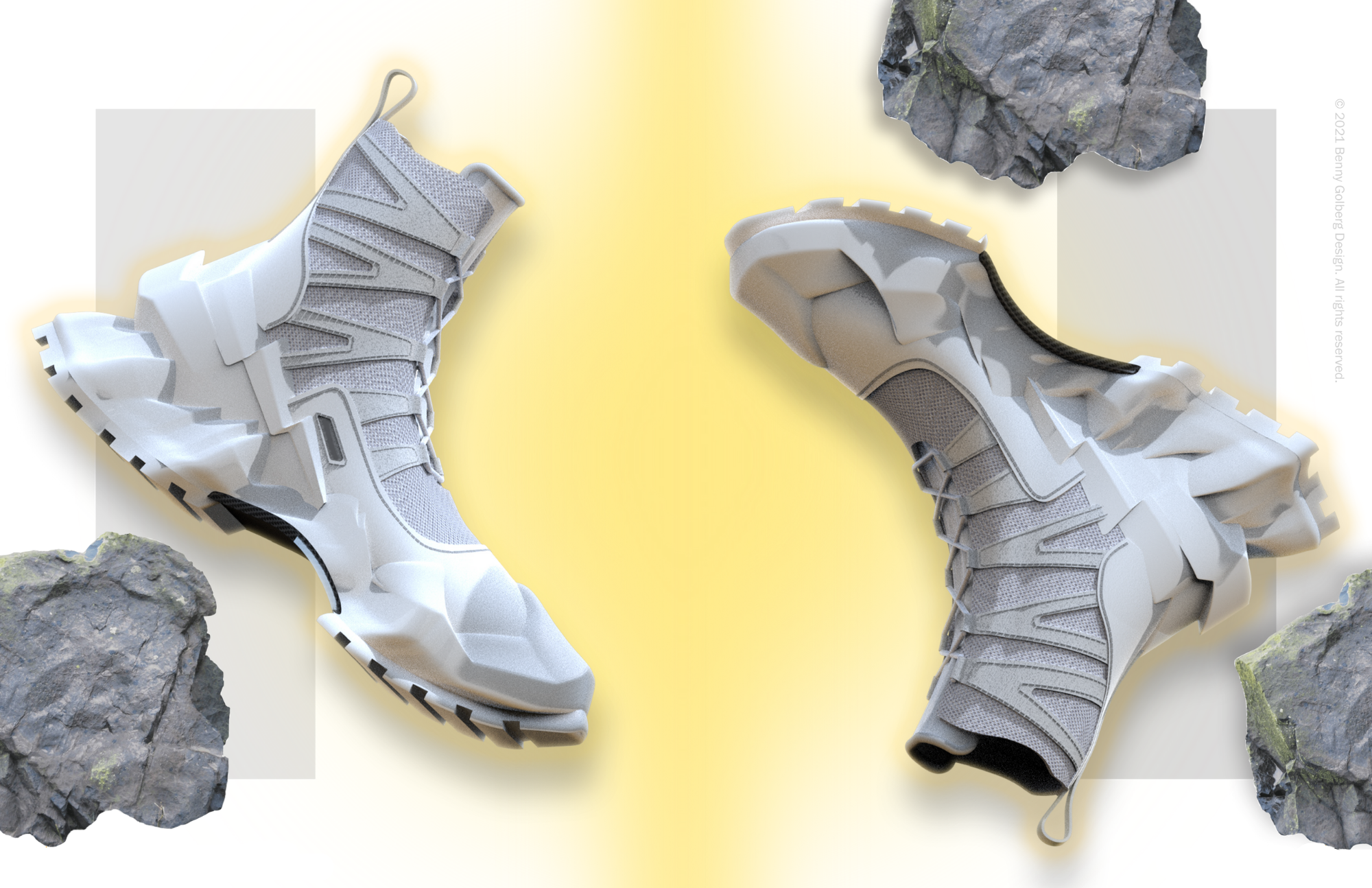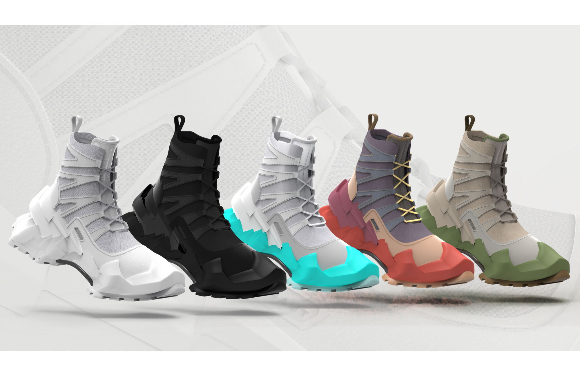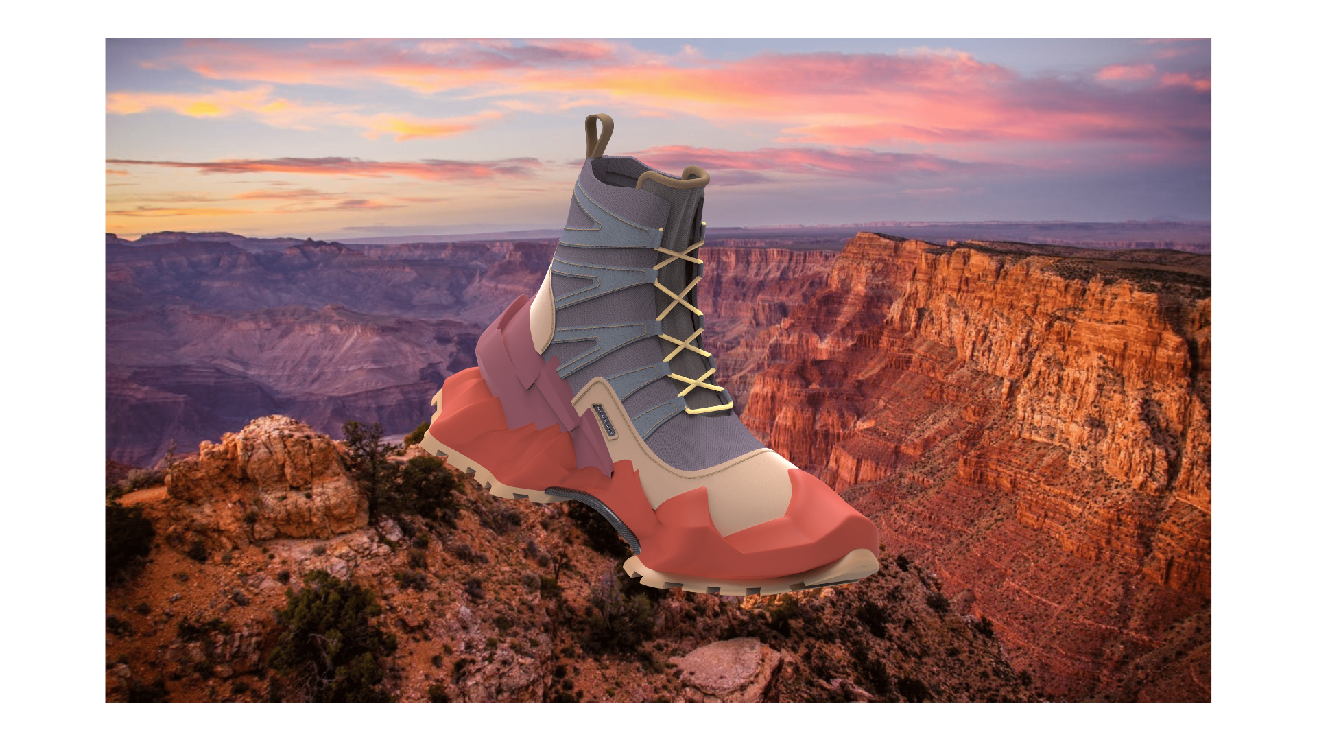 The boot features a mountain range-inspired midsole and heel cup to express the idea of bringing the mountains to the streets. The boot incorporates a mesh upper with suede paneling, rope laces, a heel pull tab, and a carbon fiber shank. The Street Hiker colorways are based upon National Parks, pushing the concept of bringing nature's beauty to the urban streets.