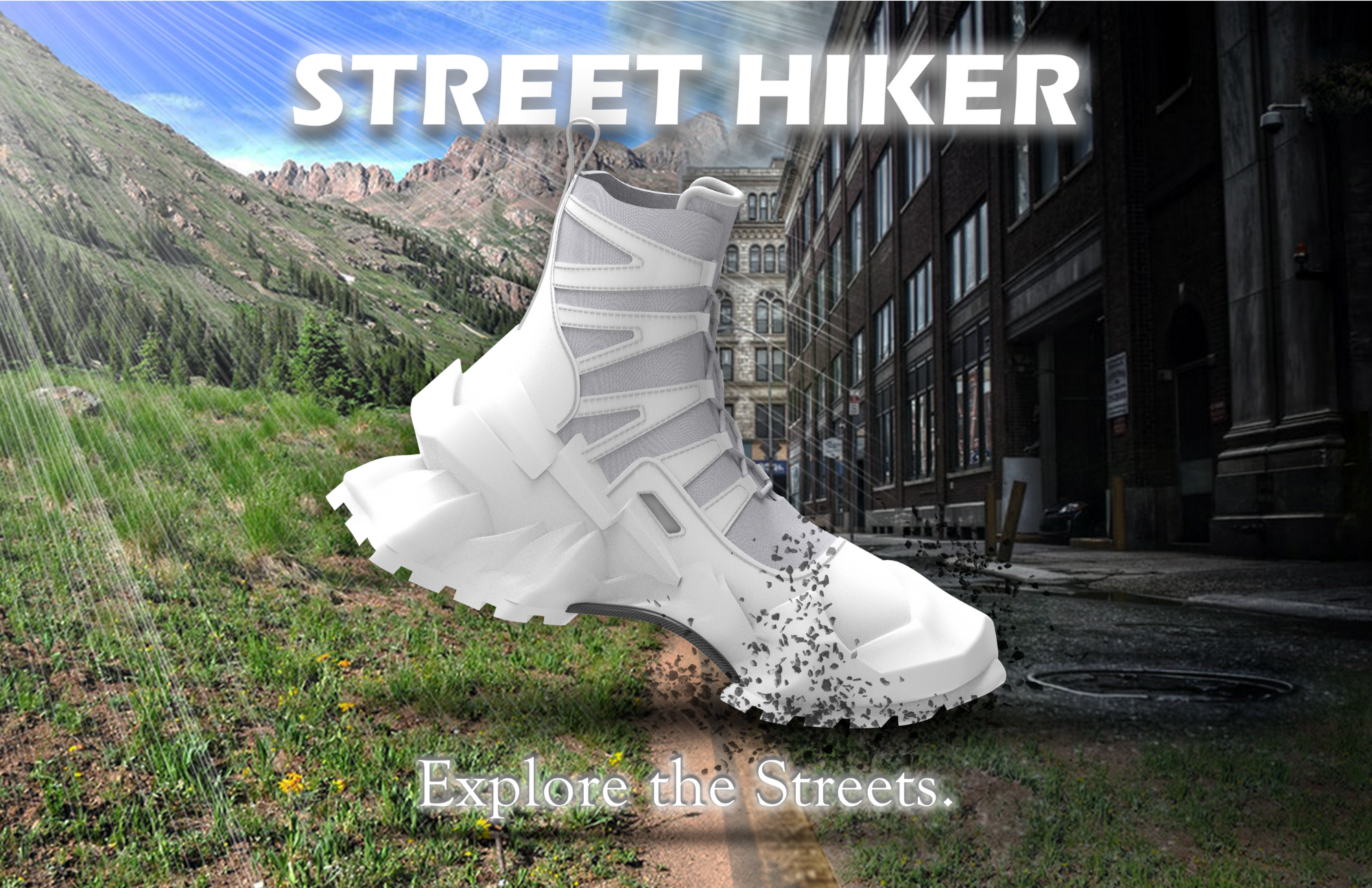The Street Hiker is a hiking boot designed to be worn by fashion and streetwear enthusiasts as they explore the urban world.