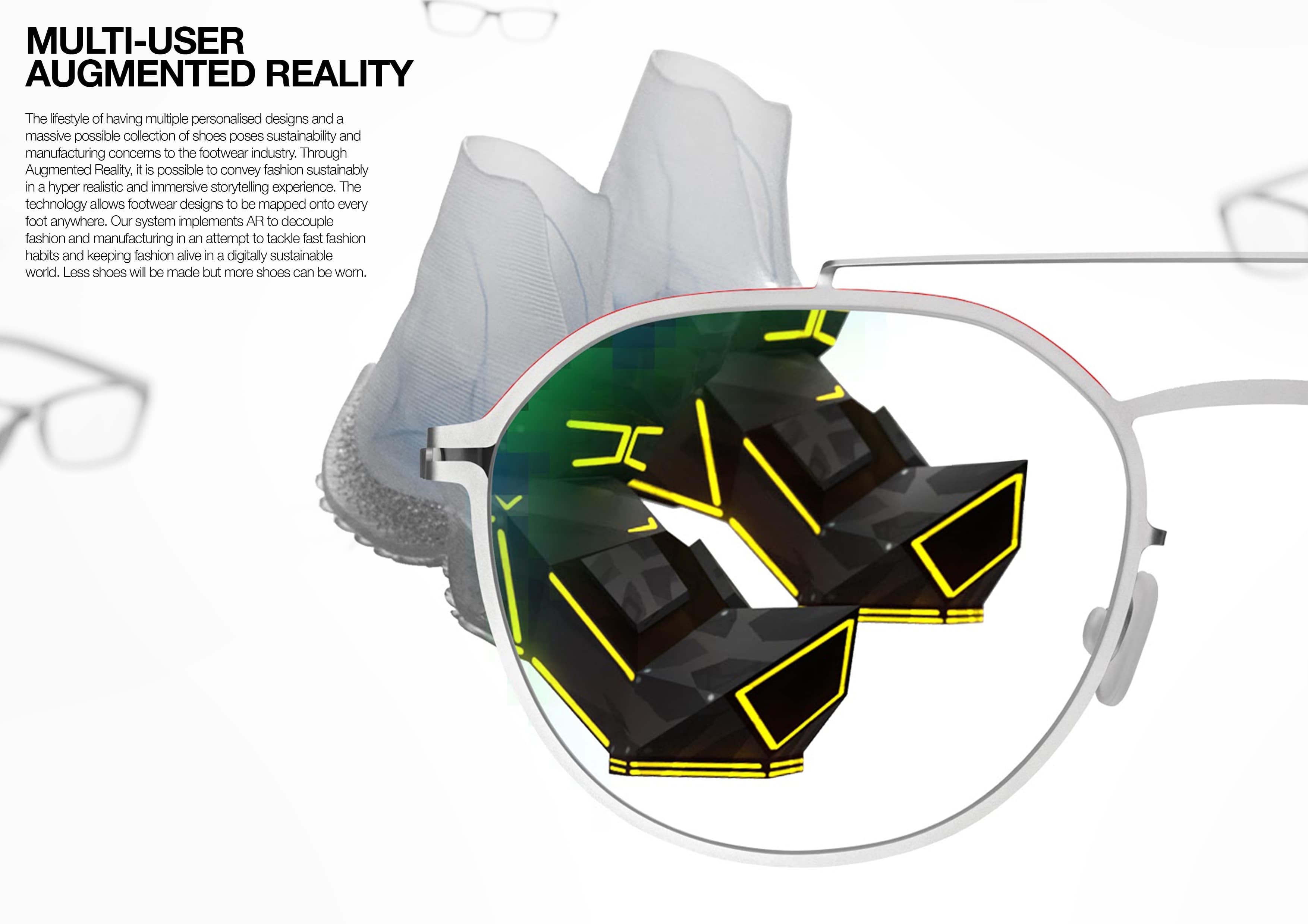 REALITY addresses footwear sustainability through AR digital skins and 3D printed biodegradable self-healing technology. Our concept bridges the gap between the physical and digital world, thus tackling overconsumption due to fast fashion.