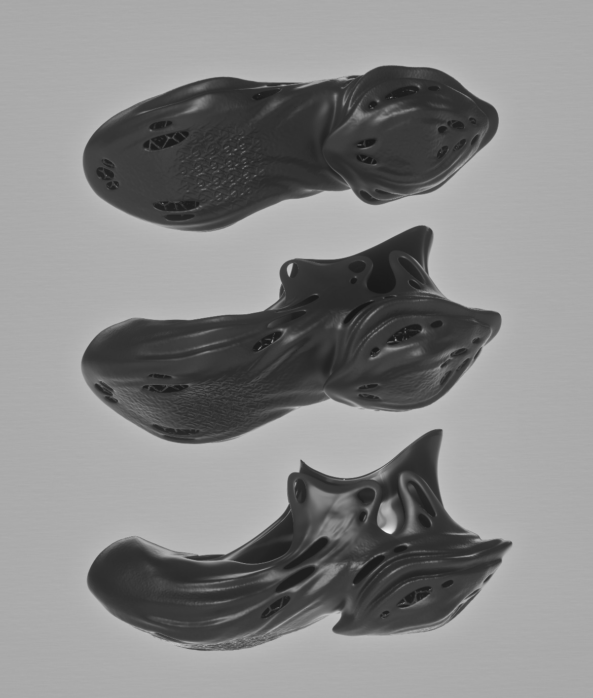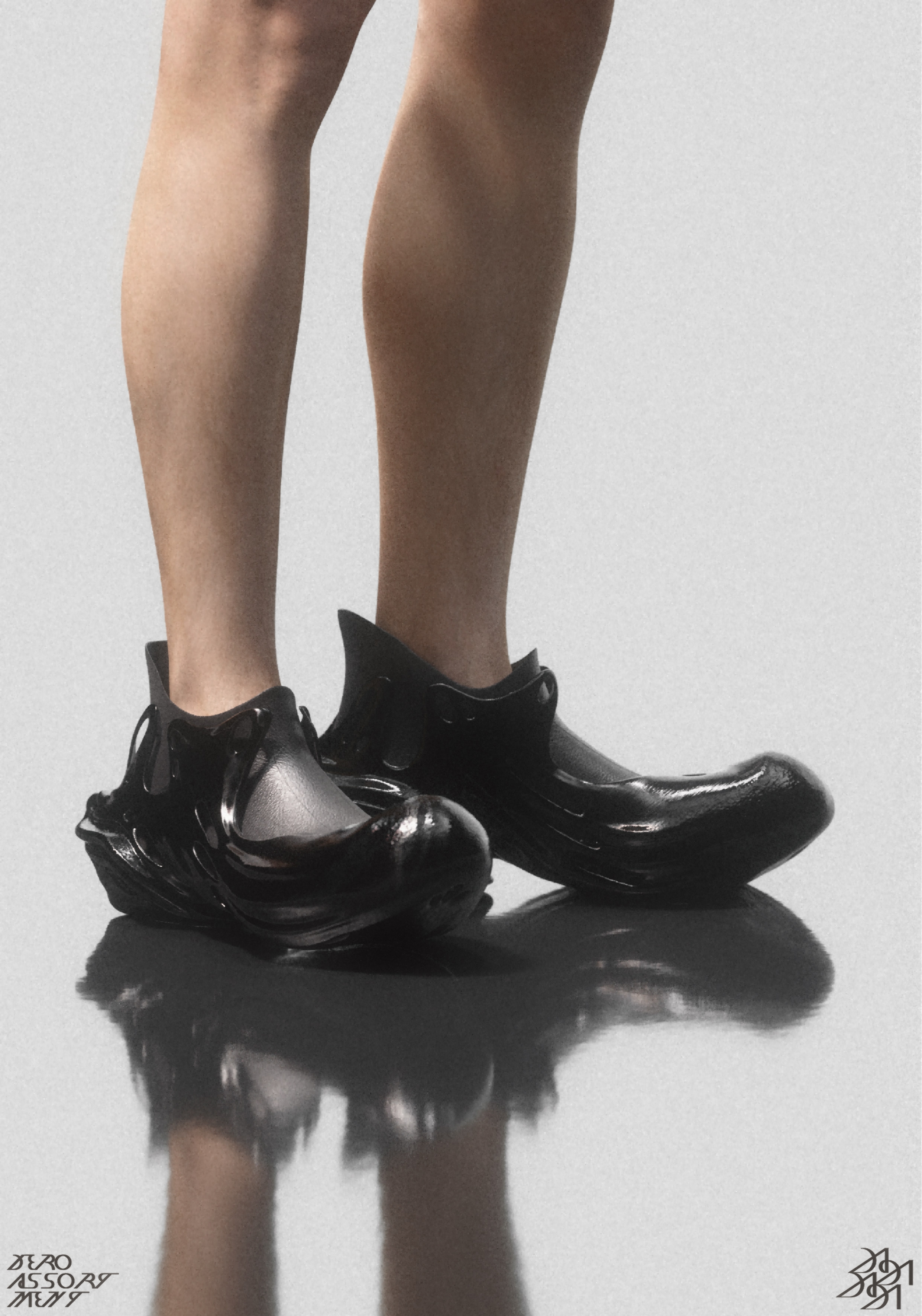The definition of the future may not only be encompassed by technology, our definition of the future is the future of footwear derived from the classical aesthetics of the Middle Ages and thus extended to the future of footwear, the overall shape of the shoe has a streamlined dynamic, spreading like water, spreading from the sole to the upper, evolving from 3d printing technology to traditional leather uppers, bringing a visual feeling of time iteration.