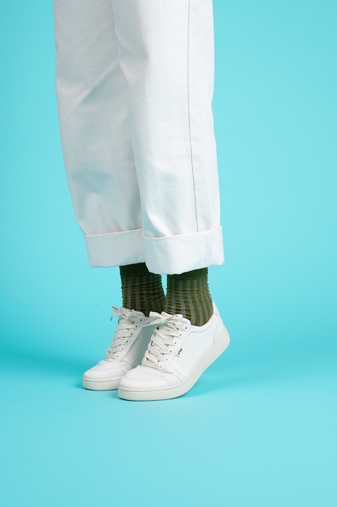 Each material, from the natural plant-based rubber sole to the embroidered cotton eyelets, has been carefully chosen for its unique properties and low environmental impact.