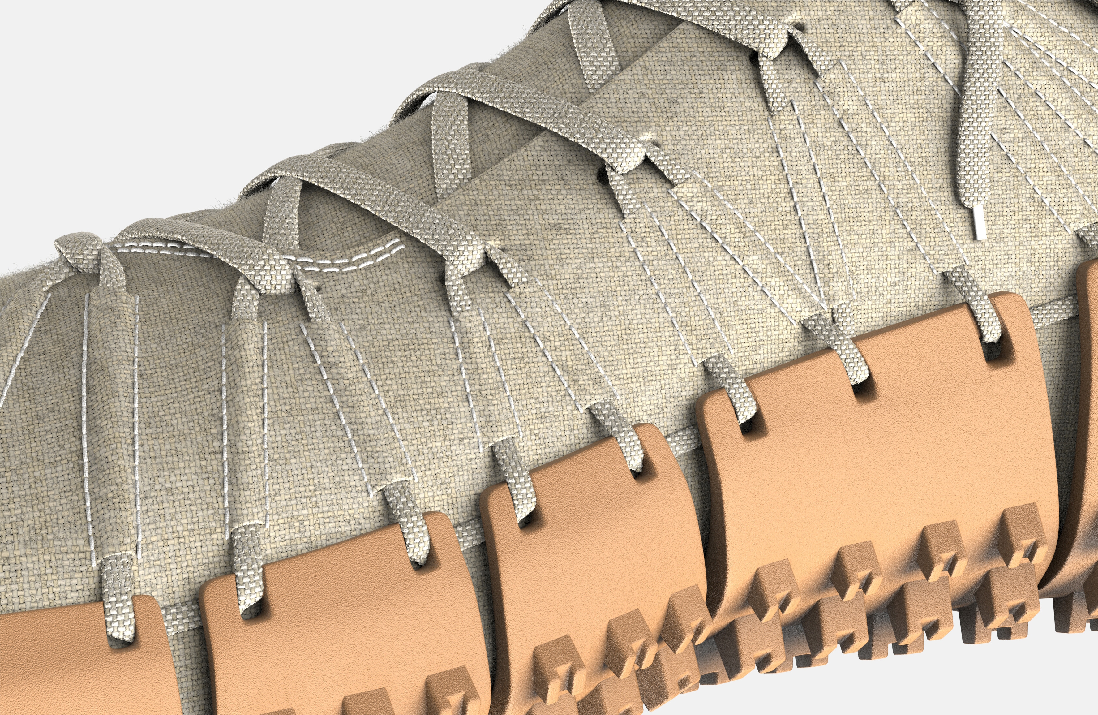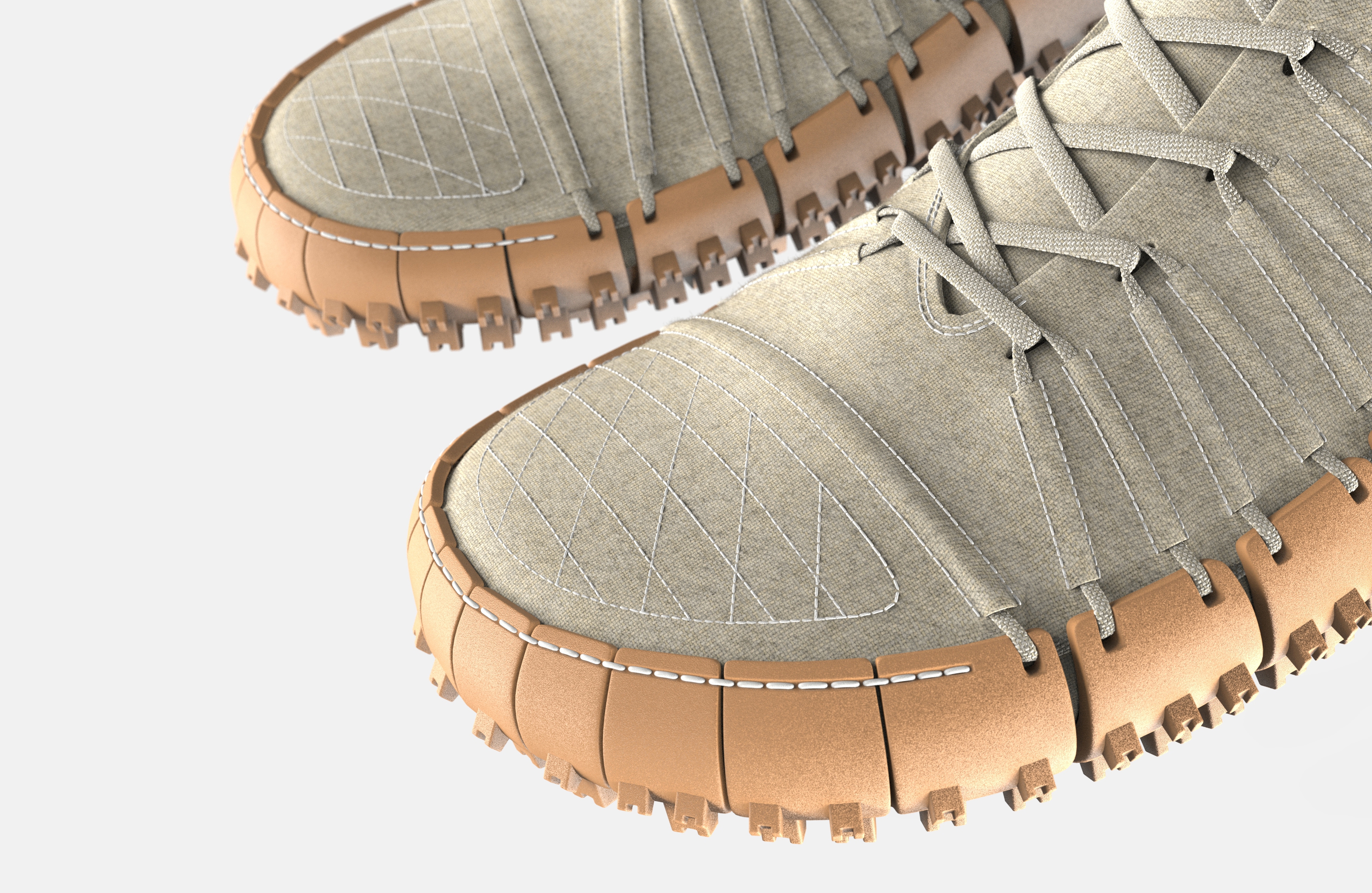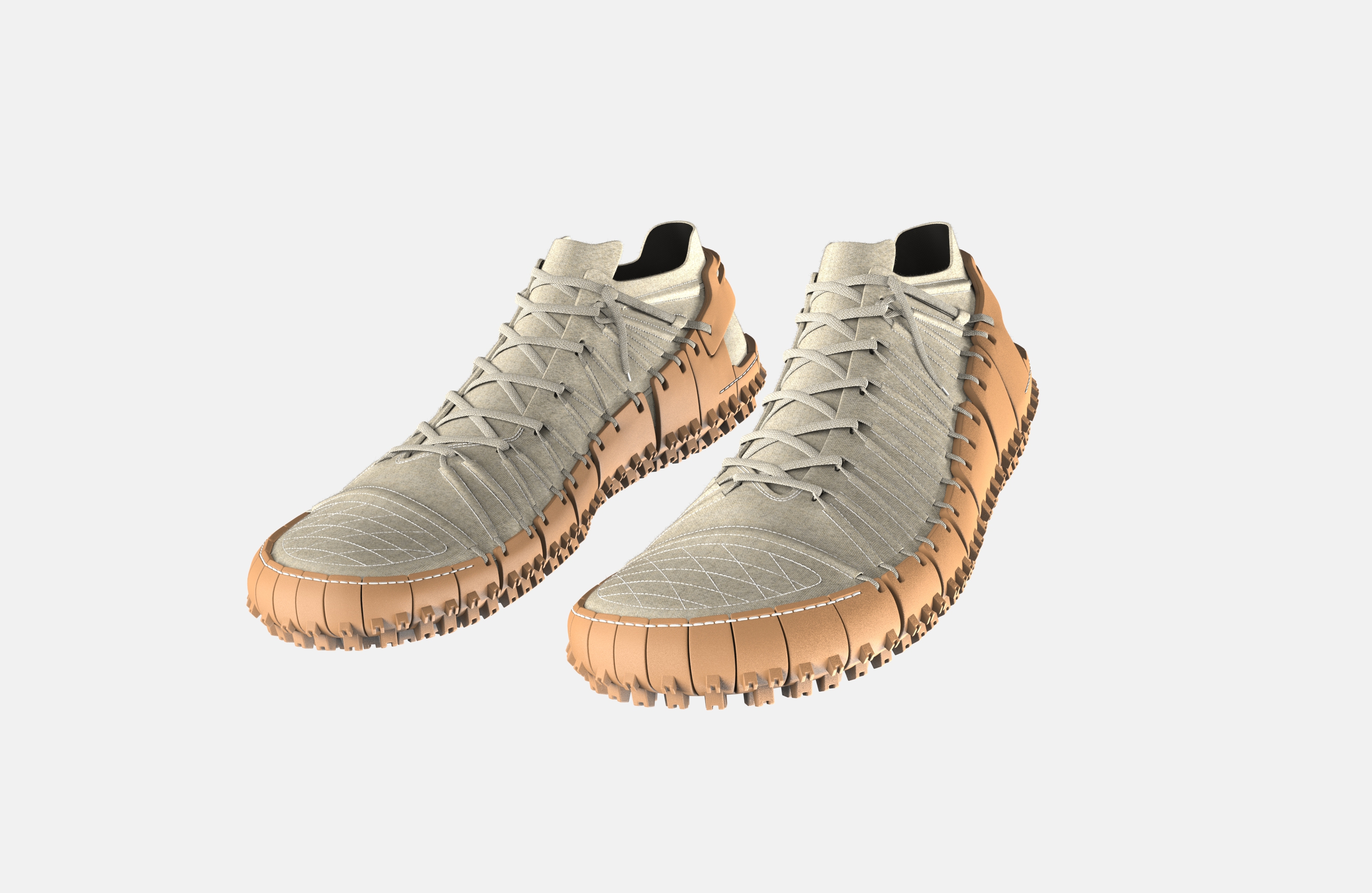 Gravel is a football boot, which was designed for the rough conditions of Ghanaian football pitches. It consists of a hemp-textile upper and a replaceable natural rubber outsole. A lacing system, along the lateral and medial sides as well as stitching in the toe and heel area connect the two. This enables the replacement of the rubber sole without special tools, which is exposed to lots of abrasion.