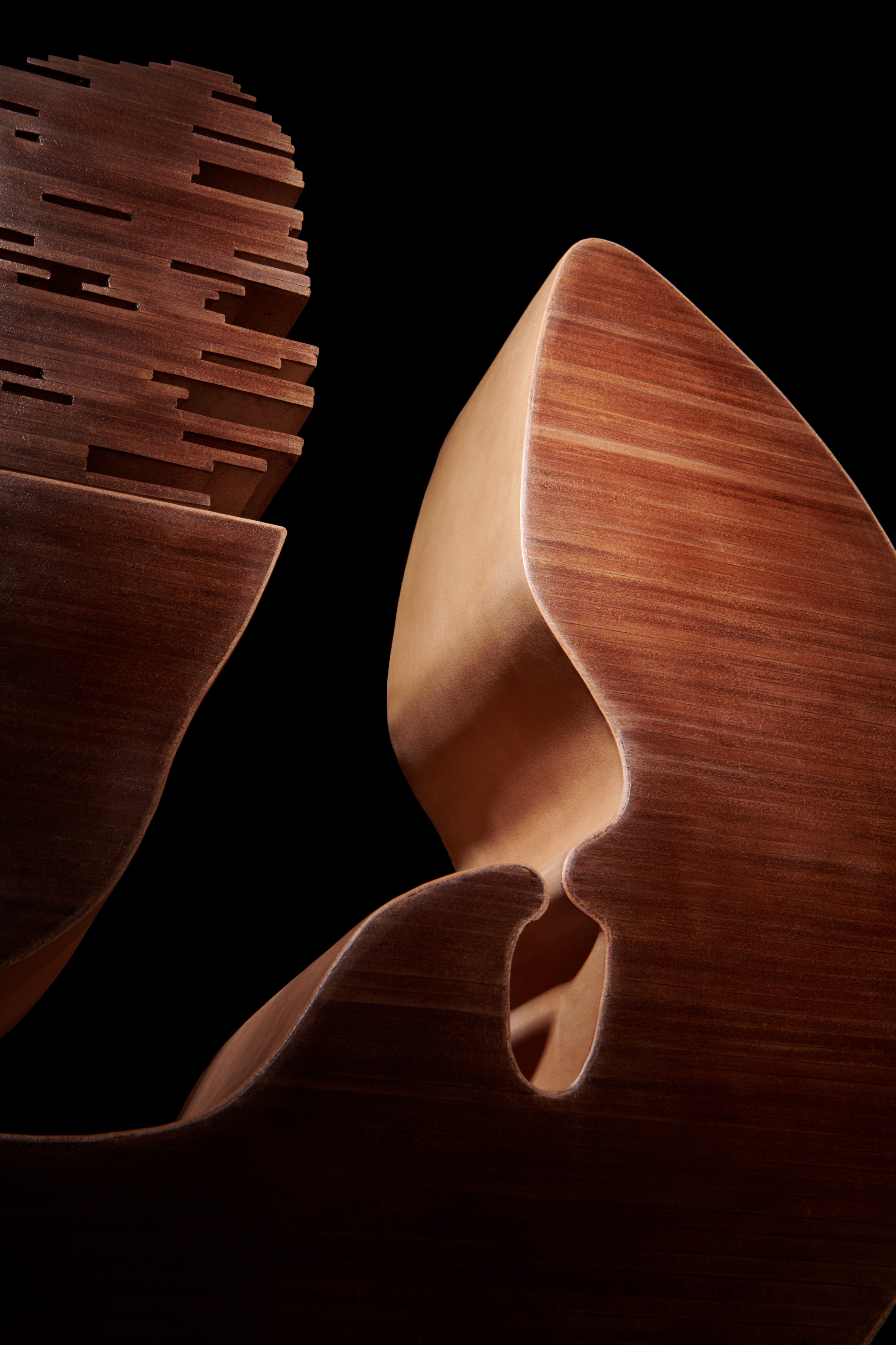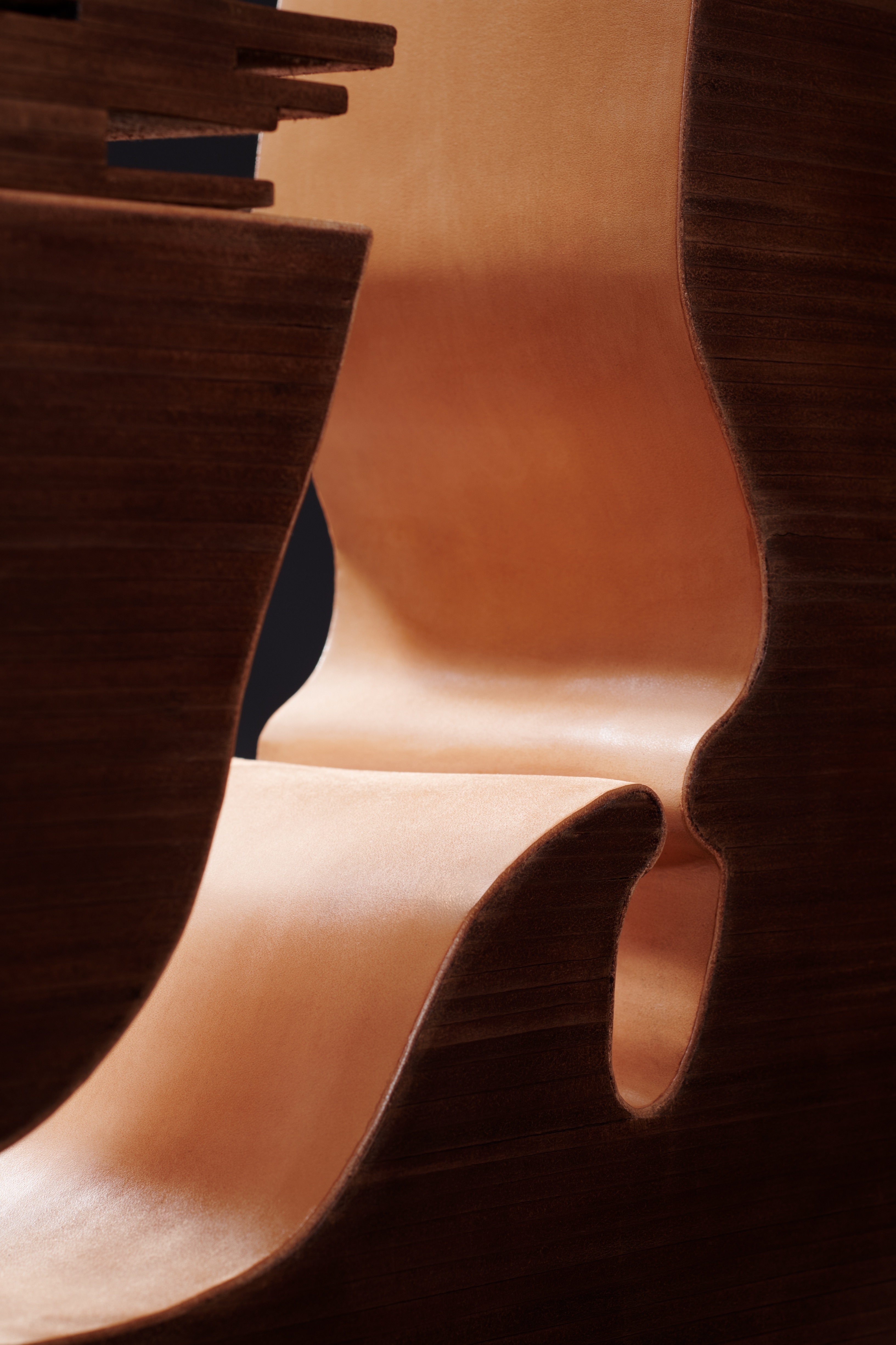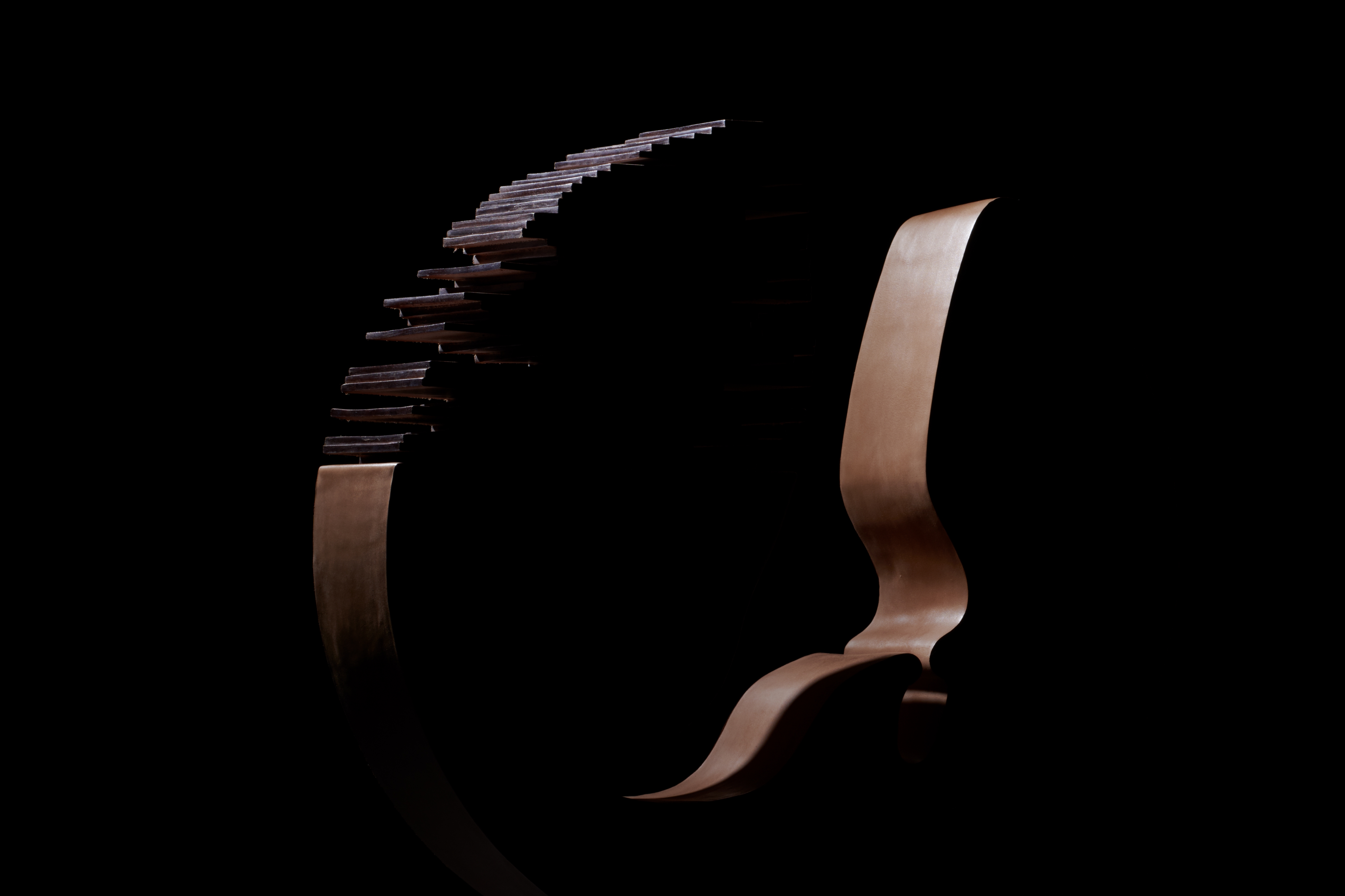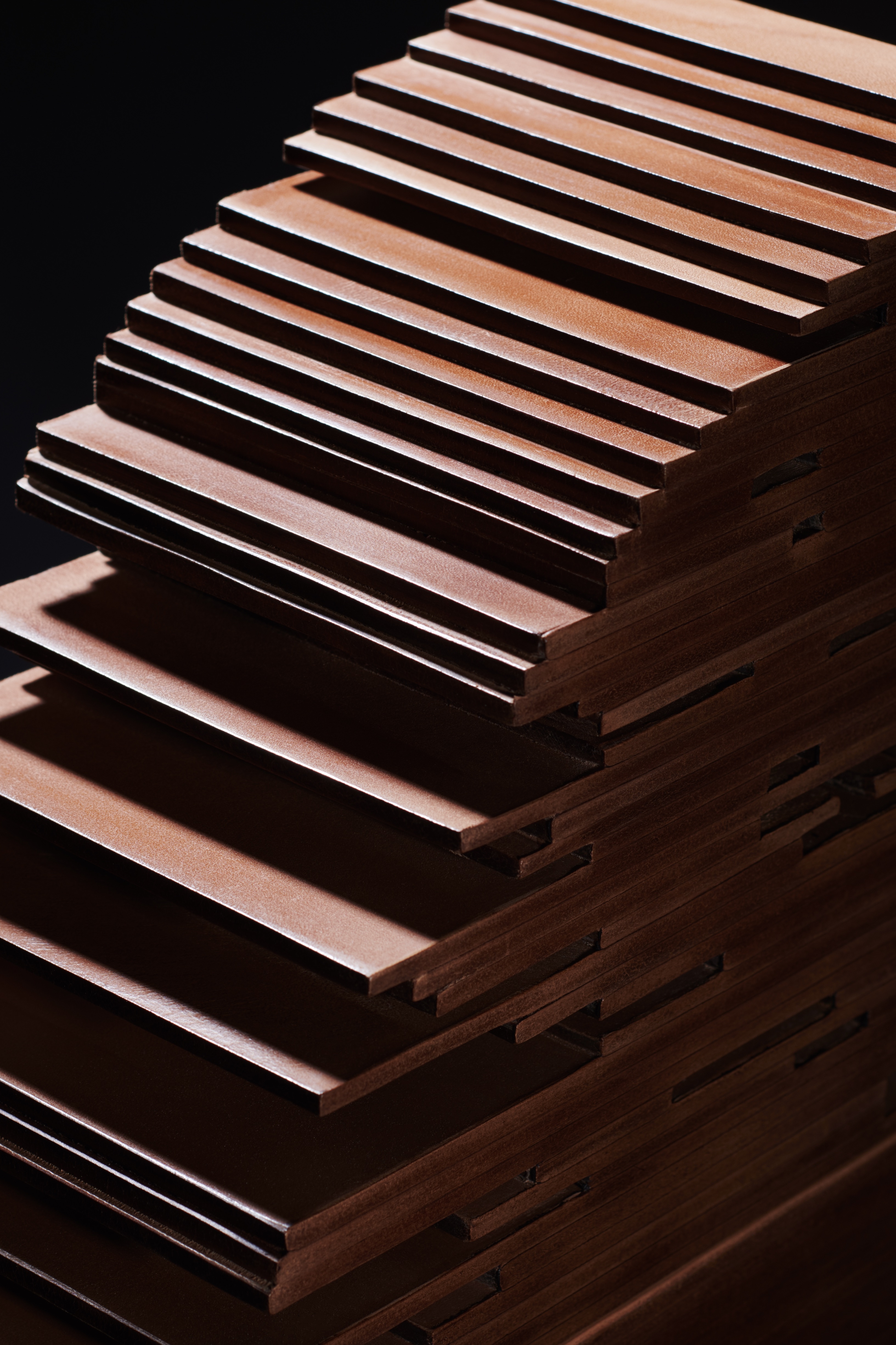 Master custom shoemaker Noriyuki Misawa pursues formative, yet functional artistly. To display the external space of the foot, its shape is defined by a “Foot’s nest.” As if slipping a foot into a high heel, the space nestles your foot. The material is a leather used for heels, and like insects making nests, stacking the several-fold leather layers to create the space brings a sense of dignity. Everything is fabricated by Misawa’s hands. Under the COVID-19 pandemic situation, people are forced to change their lifestyles. “Foot’s nest” represents a new interpretation of the Shoe.