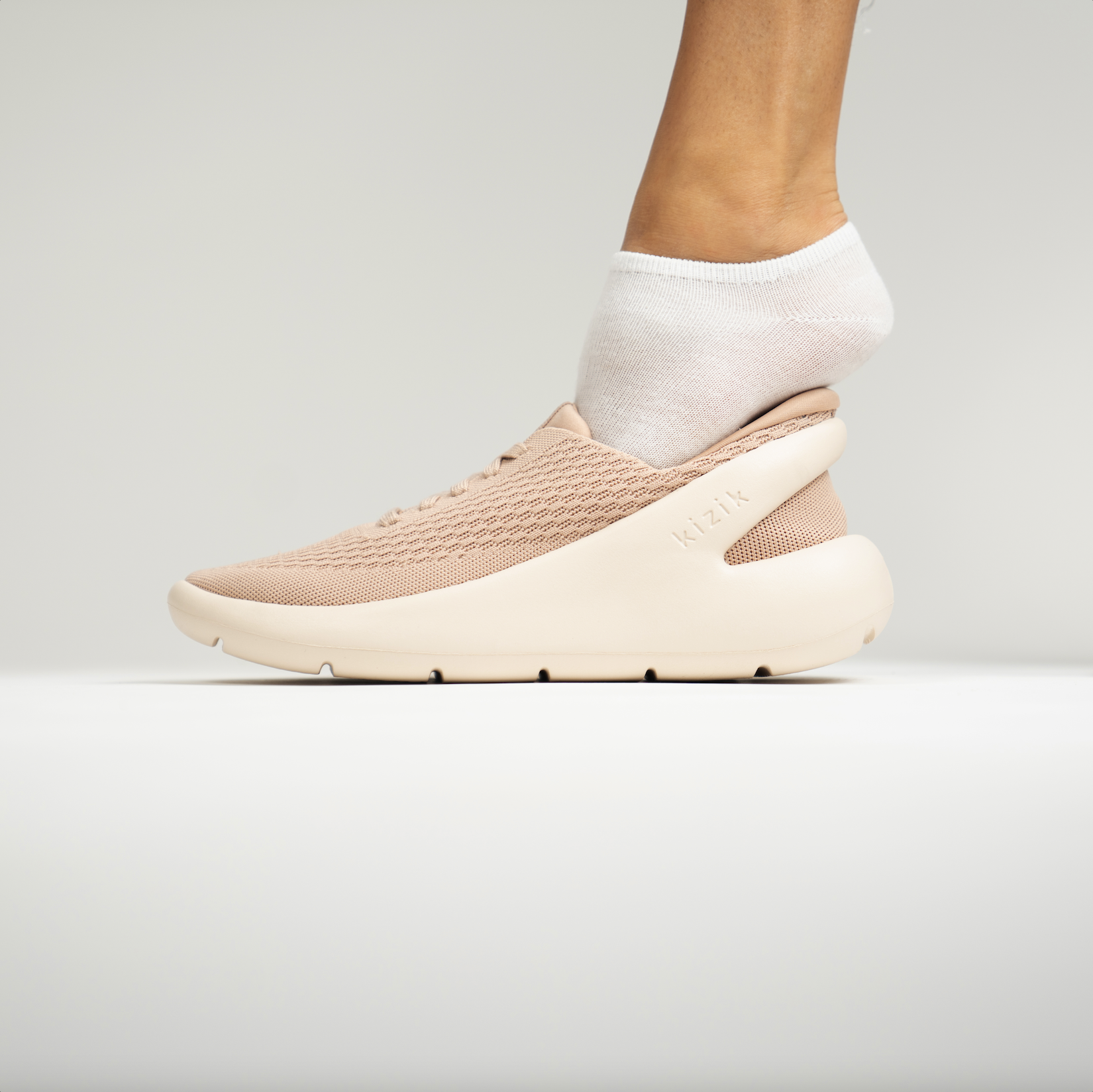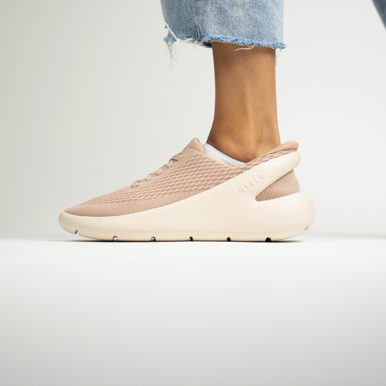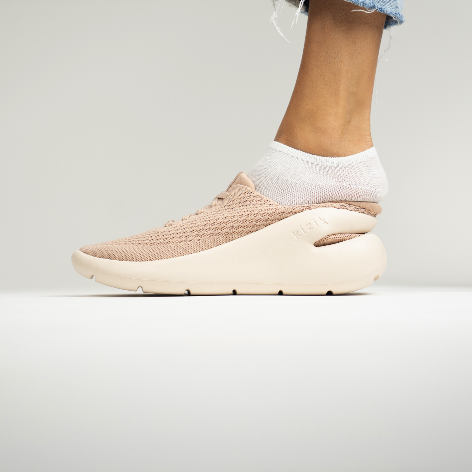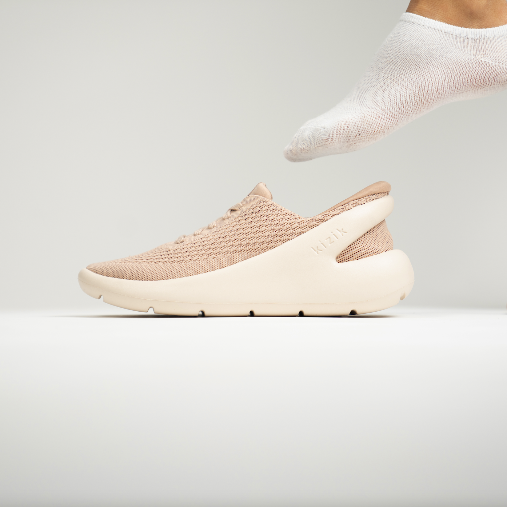 "The Roamer" is the first shoe to integrate the outsole and hands-free tech seamlessly in a way that is both functionally original and aesthetically beautiful. The shoe is also incredibly versatile and comfortable. The patented outsole solution known as "Unified" offers the consumer something super convenient and aesthetically bold. The way it works is the phylon arm that extends around the heel flexes down when the user steps on it allowing the foot to enter, once the foot has entered the arm springs back securing the heel and unlike a slipper, gives the user a tight and fully secure fit.