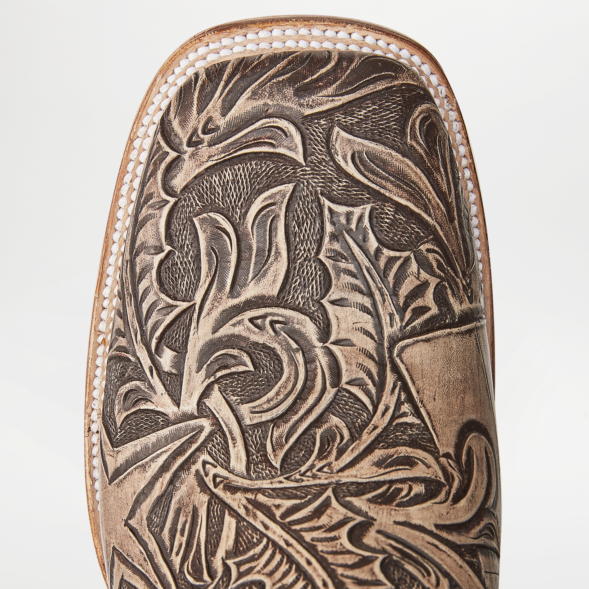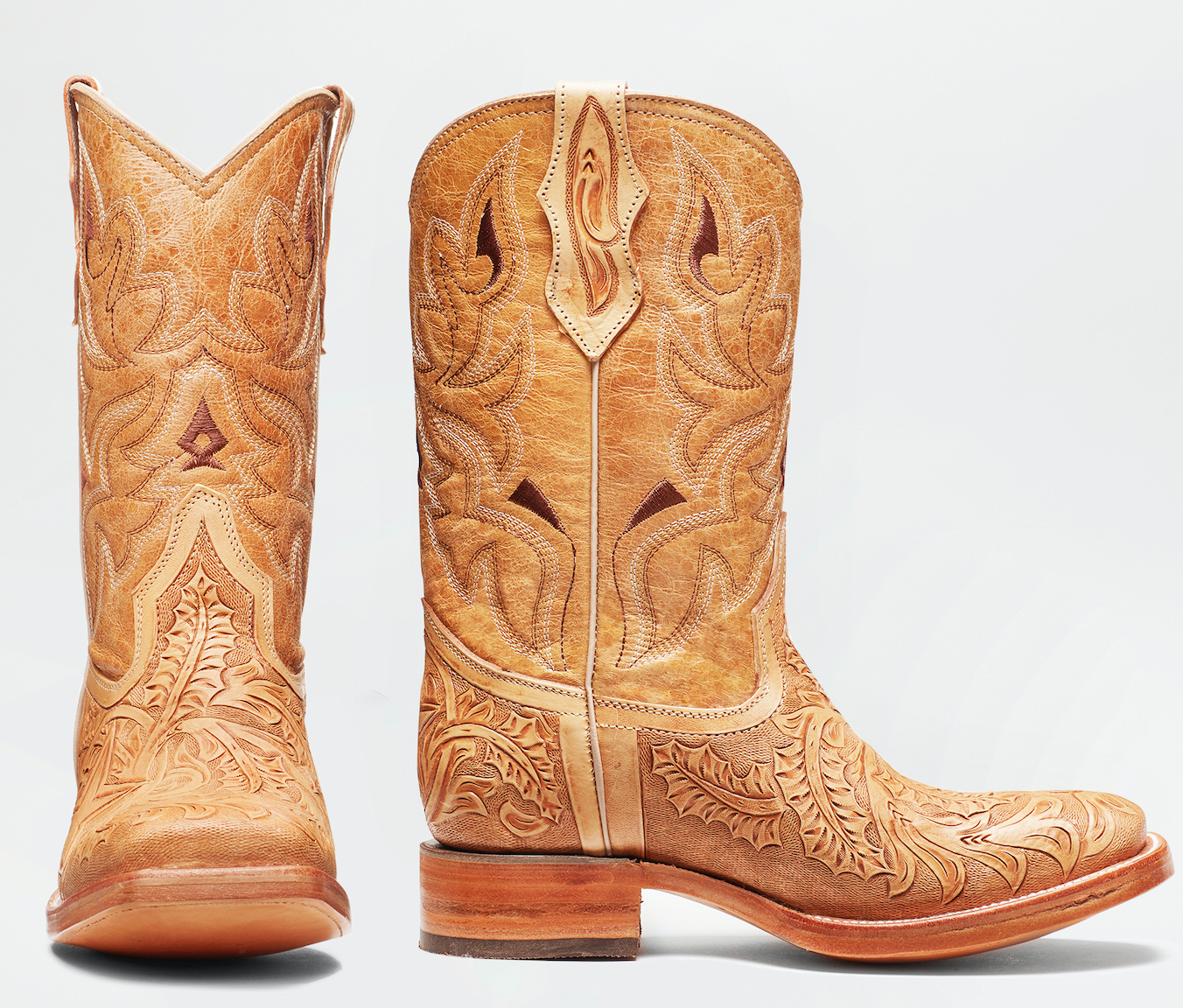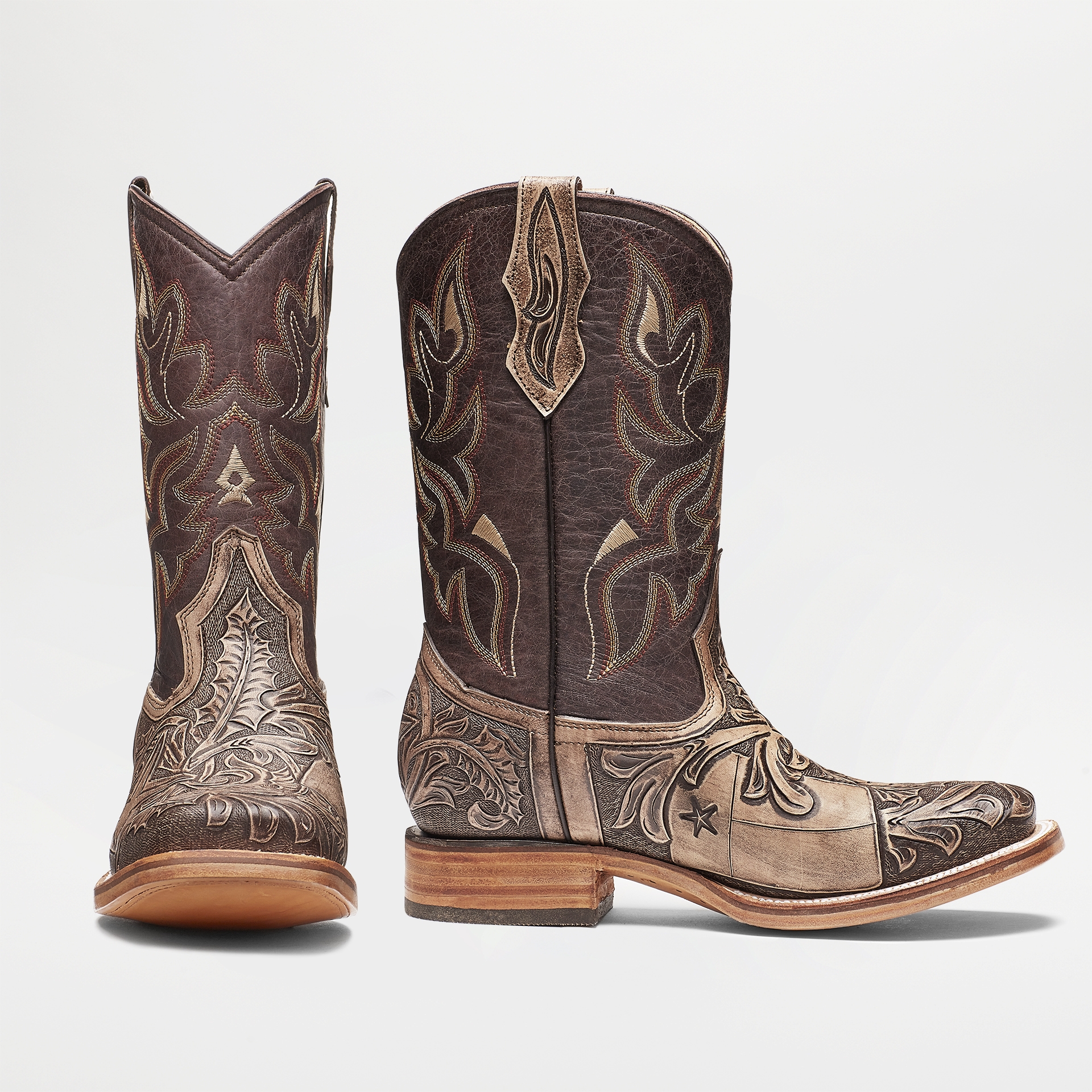 The Lone Star Boot is a Hand tooled pice, 100% hand made by Mexican artisan, all the leather is made with vegetal tenary. The Hand tooled is made with vaqueta leather. The sole is made by hand, our youngest member of the team has 45 years, old school boots makers. The process is Goodyear welt, 100% leather sole and heels, all hand made. The design was born in San Antonio Tx, in my visit to the Western Museum, I discovered the beautiful connection from Mexico and Texas, and this is what my boot is about: tradition, history, hard work, migration, mix of our cultures, and most important, PEOPLE.