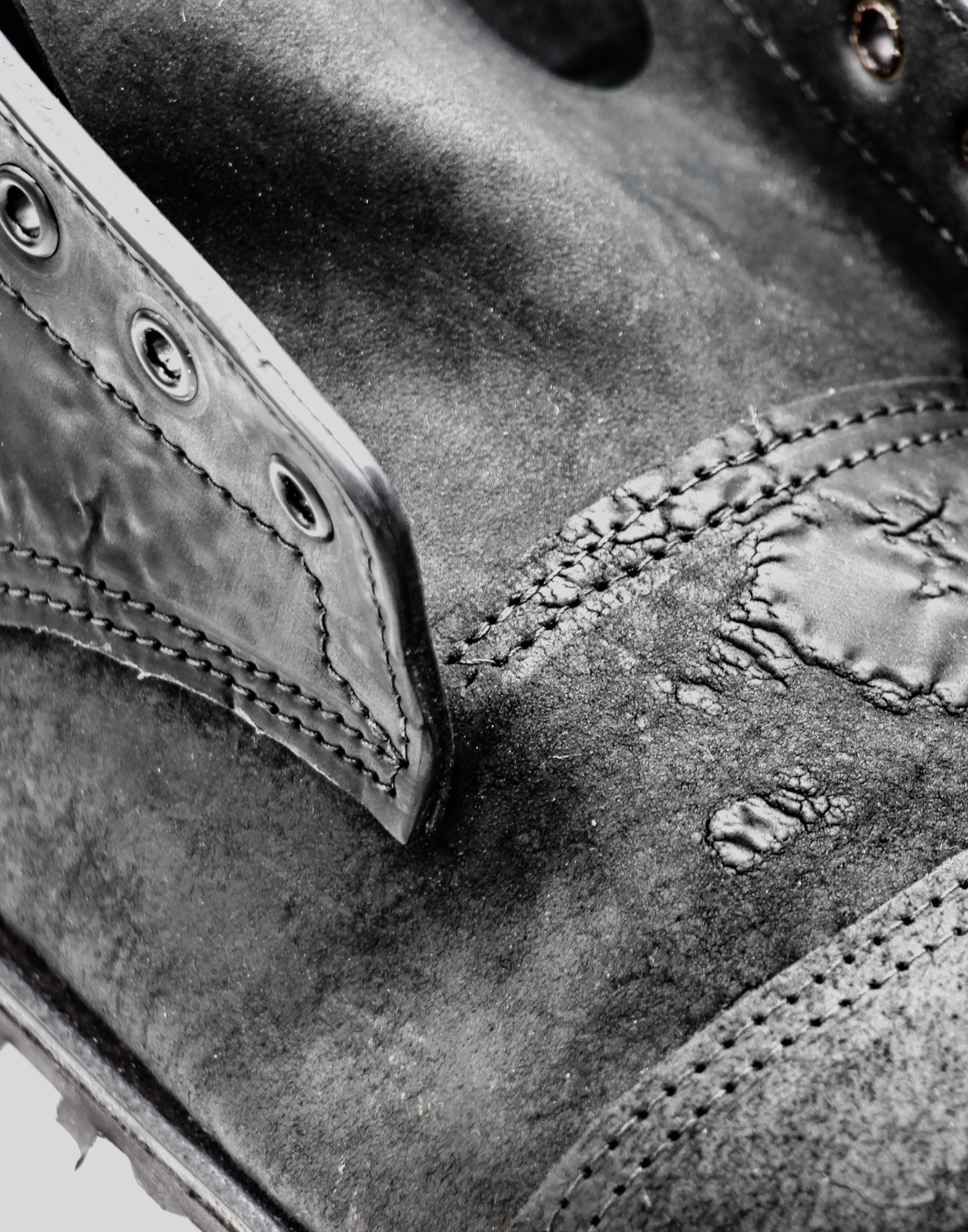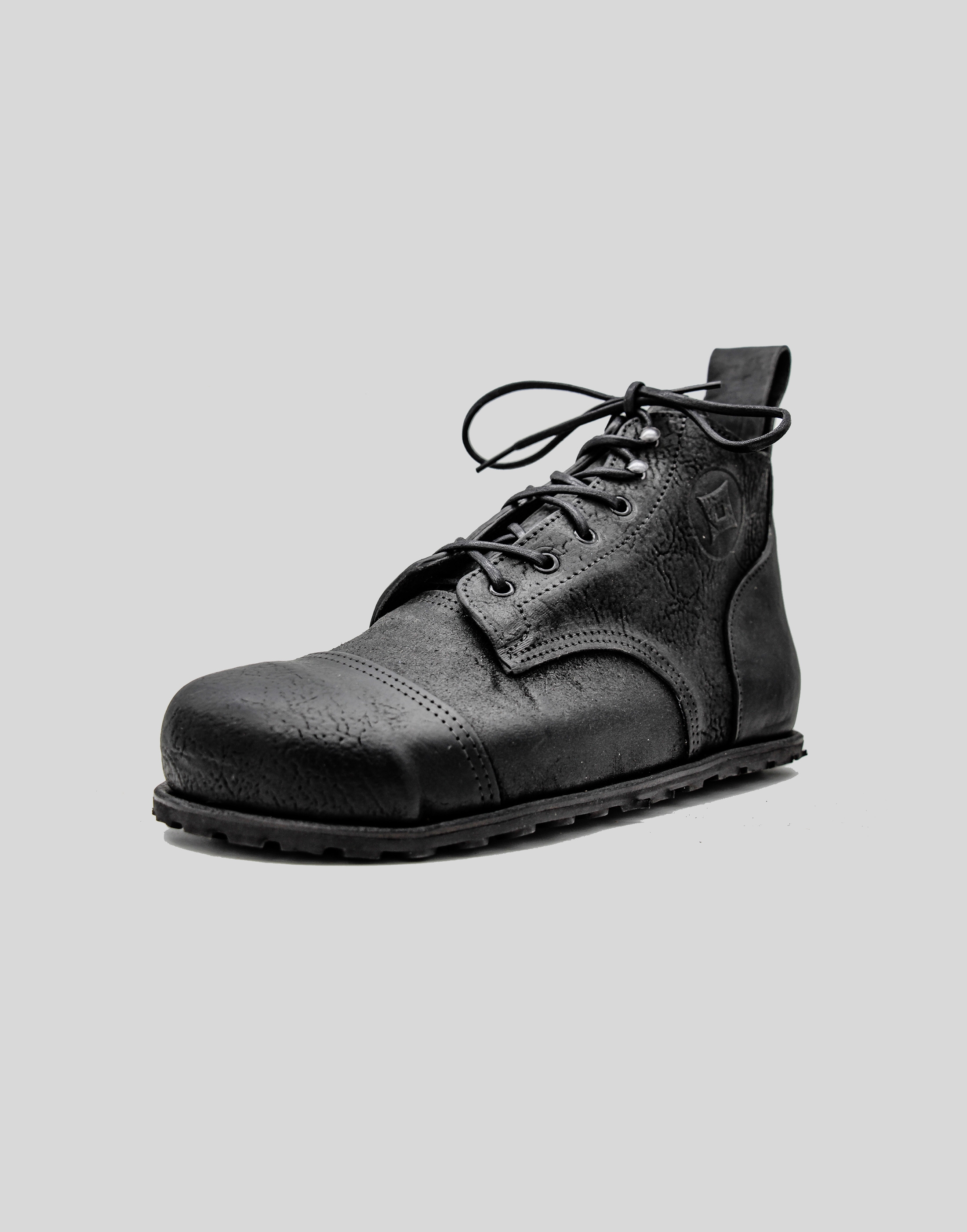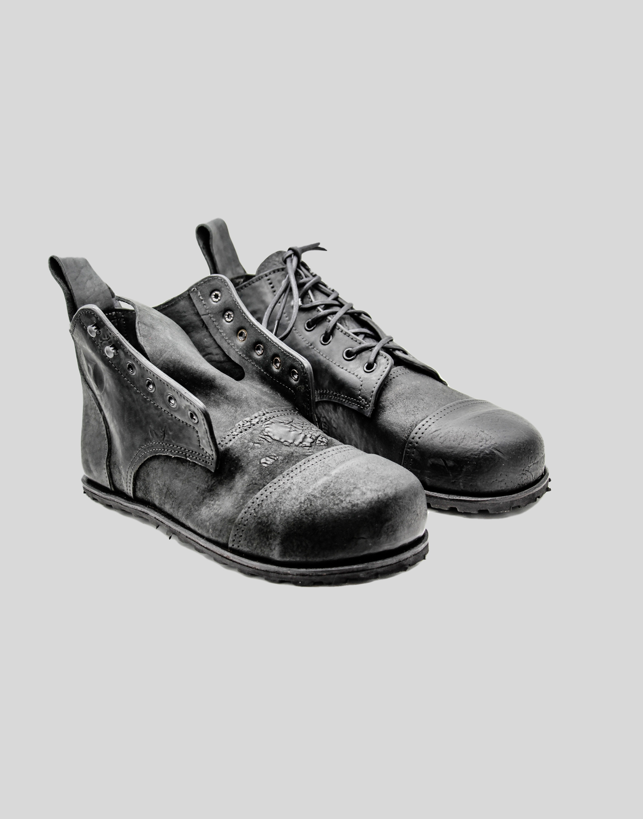 Inspired by all those heavy workers around the world that are 10 to 14 hours on their feet, lifting heavy weights, building, engineering, metal working, wood working; feeling barefooted whilst wearing an armour.