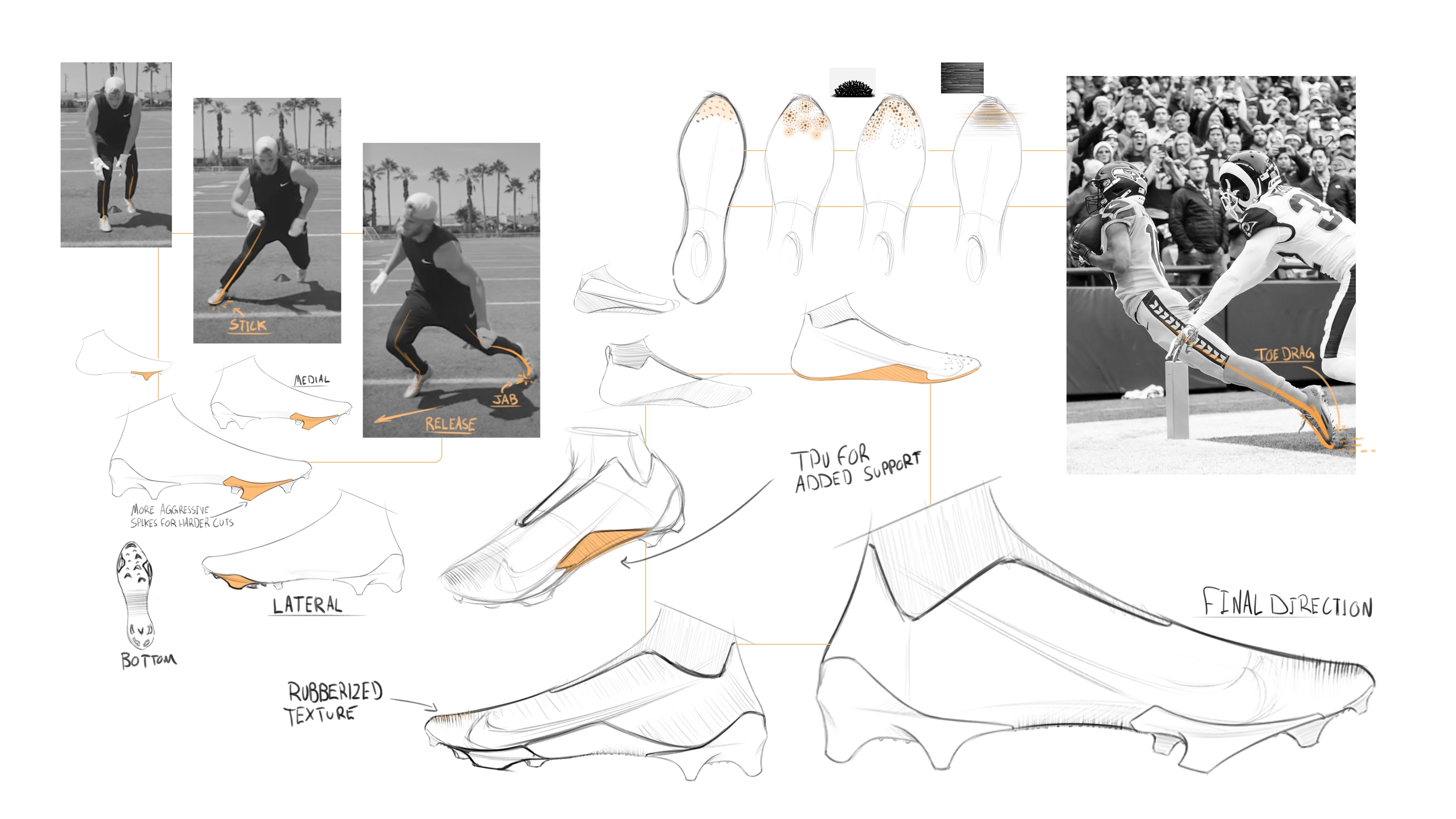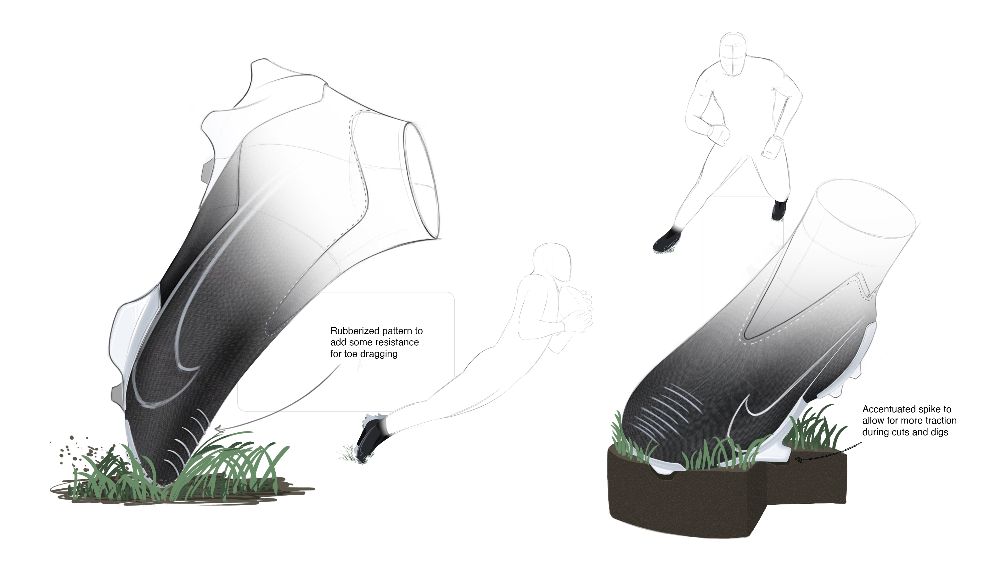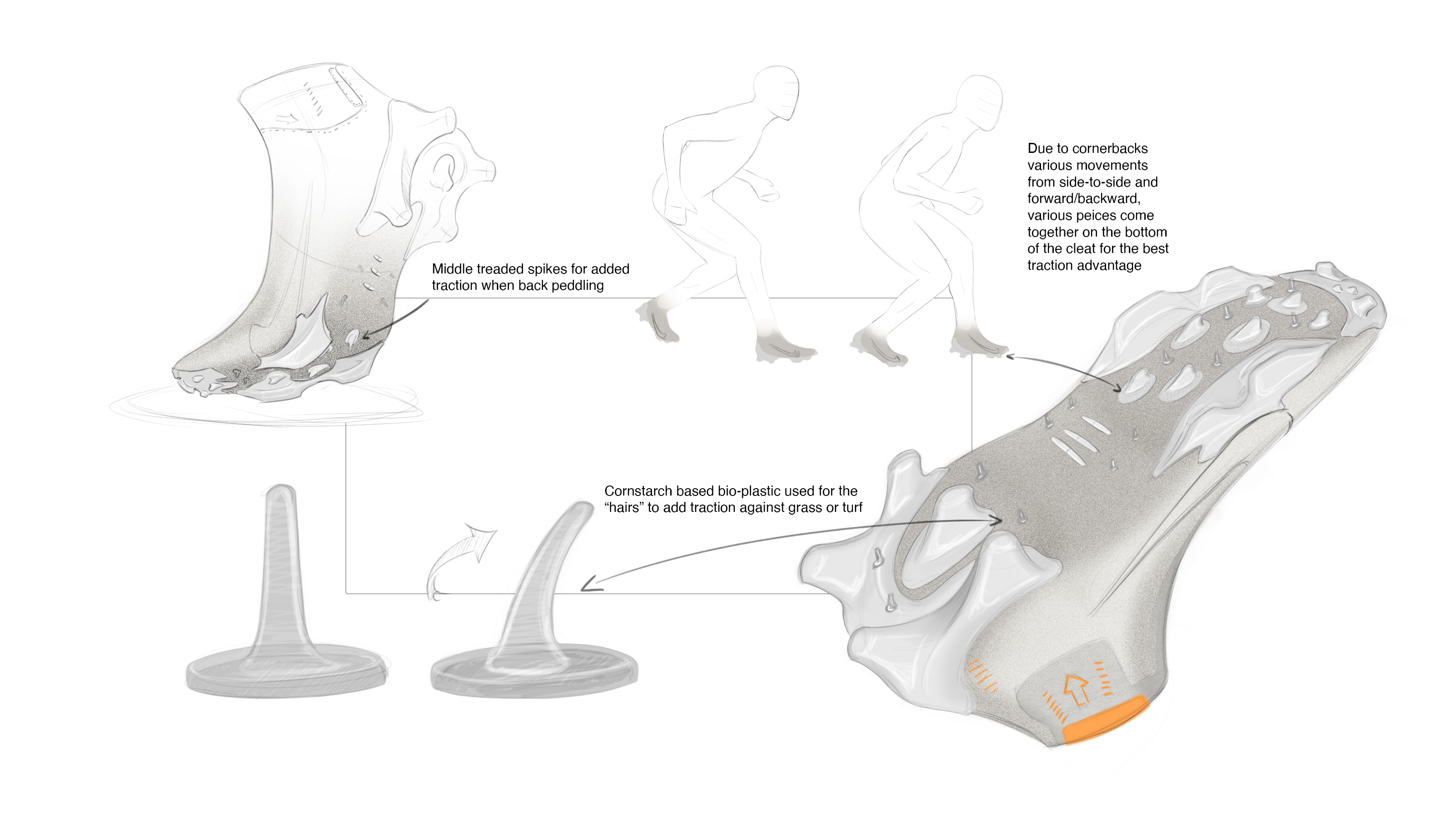 Also as football is evolving as a sport, I wanted to make cleats for the wide receiver and corner back positions specifically.