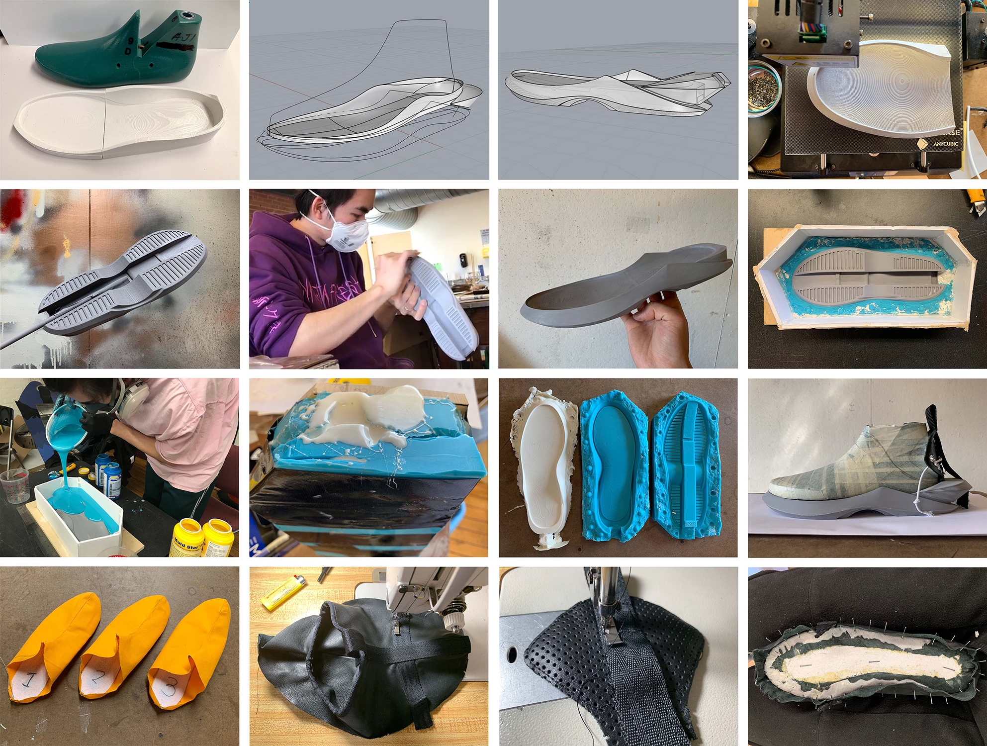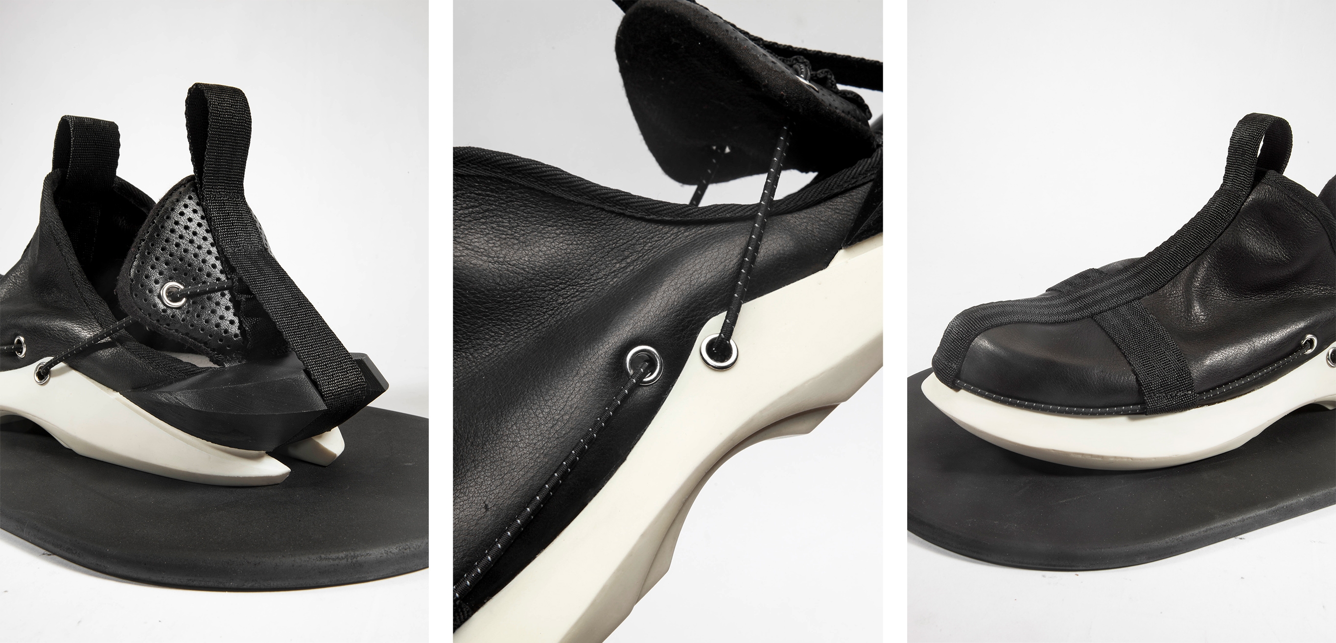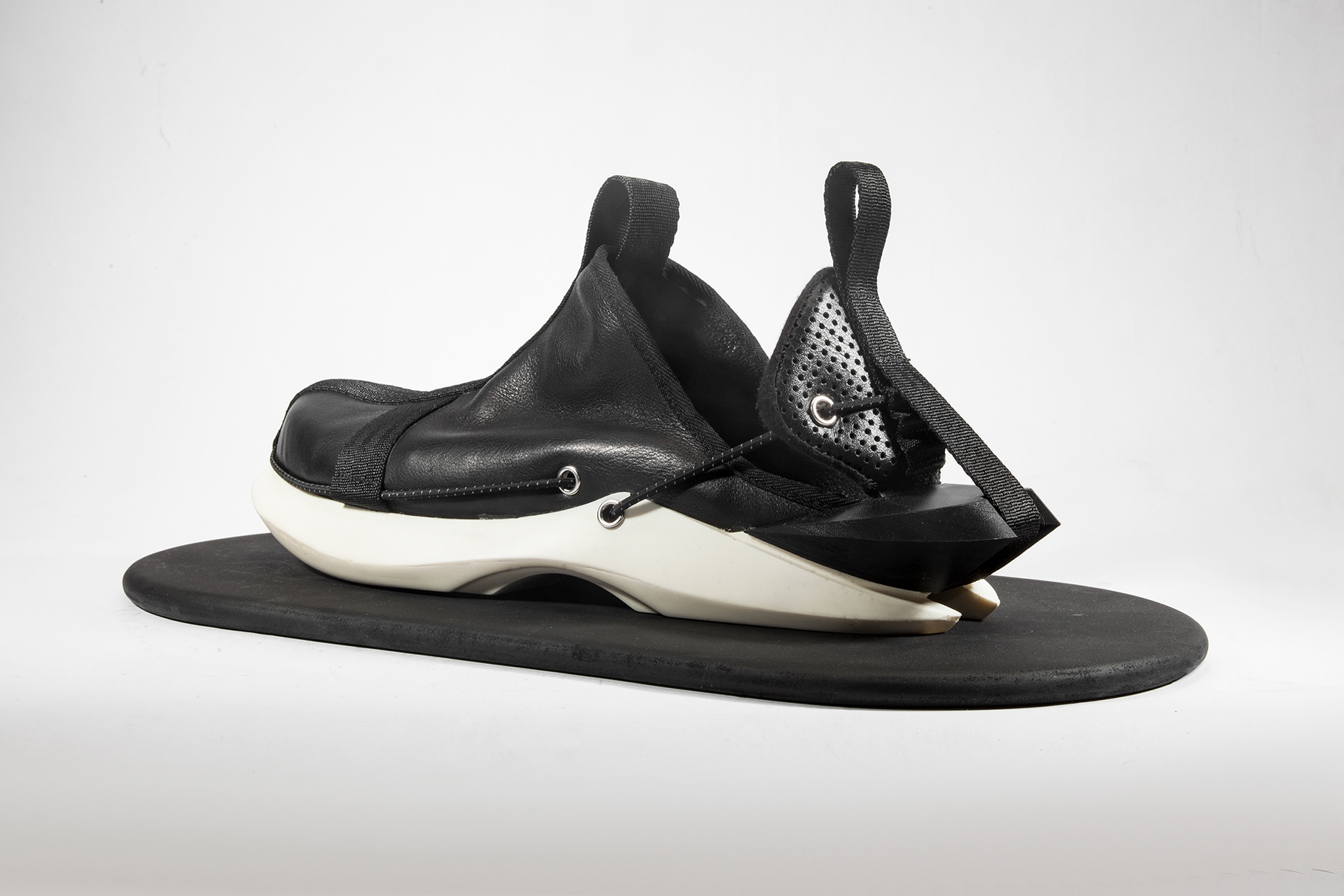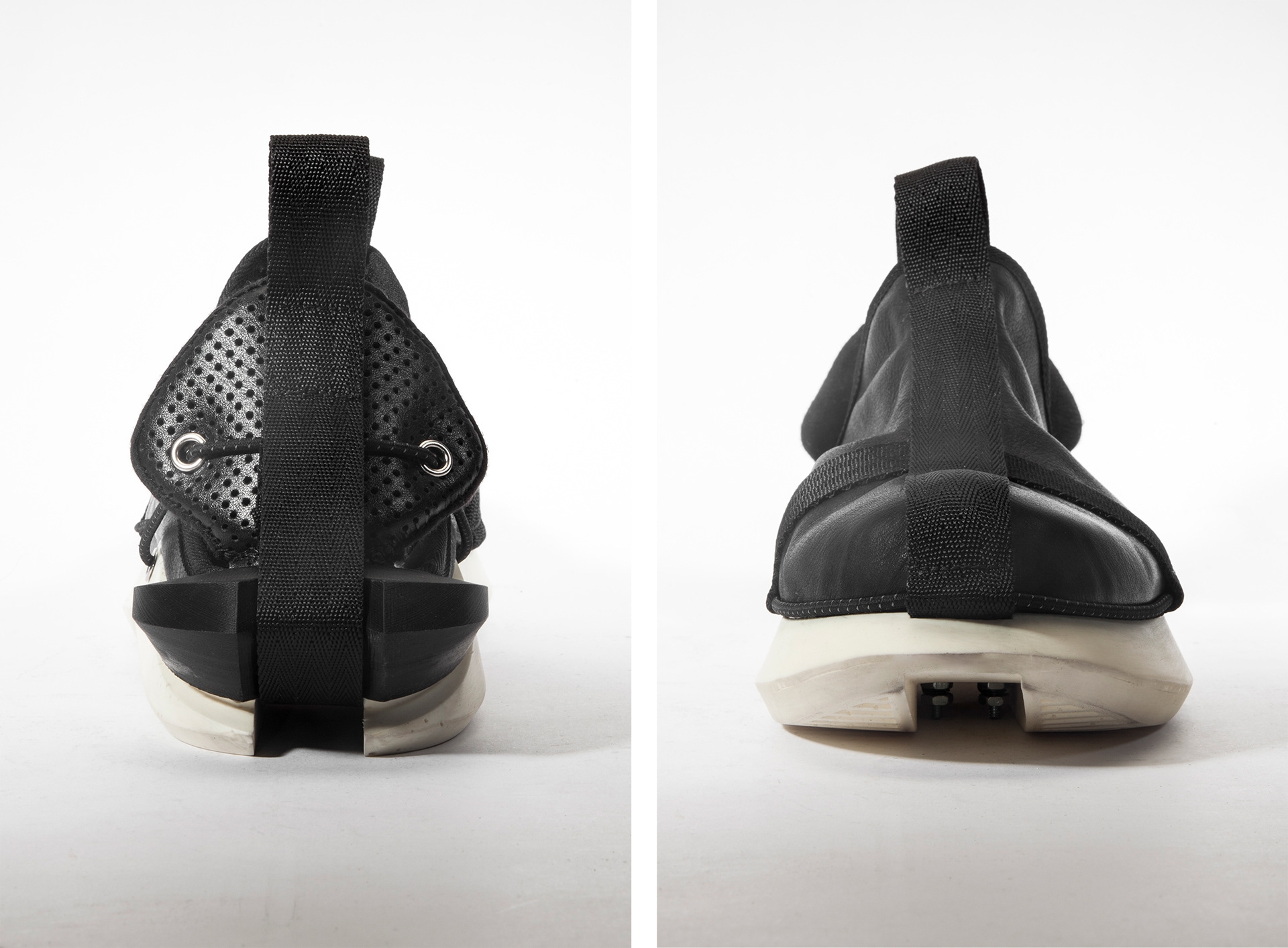 A charging mat activates DOOR, pulling down the heel counter with heated SMA springs to ensure ease of foot entry and exit, whereas stepping out of the mat cools down the SMA springs to allow counterforce to perform closure.