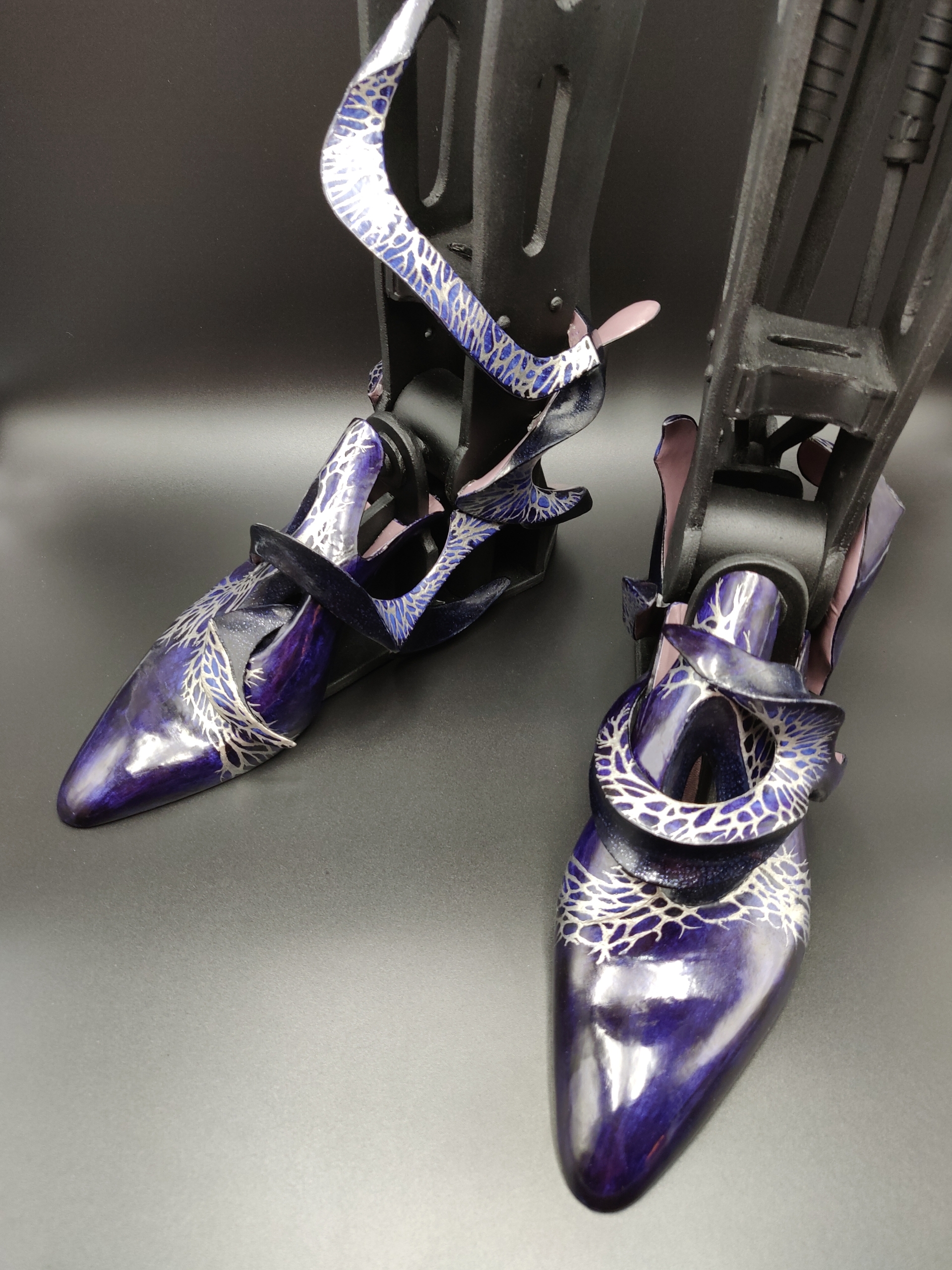 This footwear was designed for Ai-Da, the world's first ultra-realistic artist robot, as a part of a Collaborative project “Biomimicry” with Digital Couturier Auroboros in 2021.