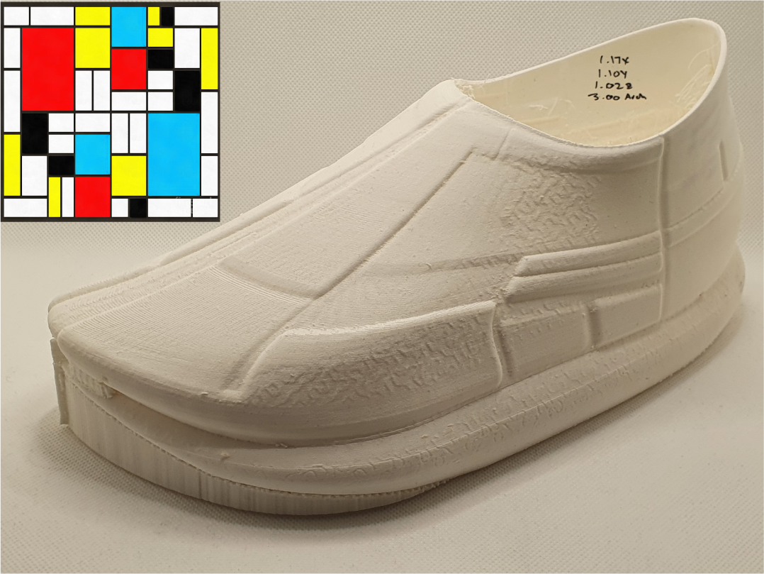 3D printed monomaterial footwear automatically generated from a user’s 3D foot scan, providing optimal fit, and reducing CO2 emissions to 23.8%.