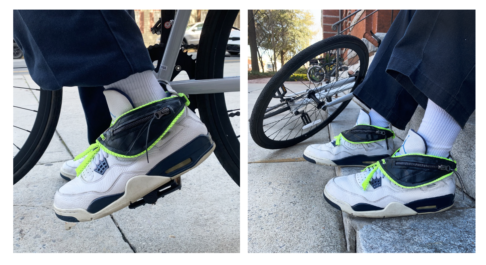 We were asked to create a bag for cyclists, using recycled air tube tires and the bag must be at least 80% made out of tires.