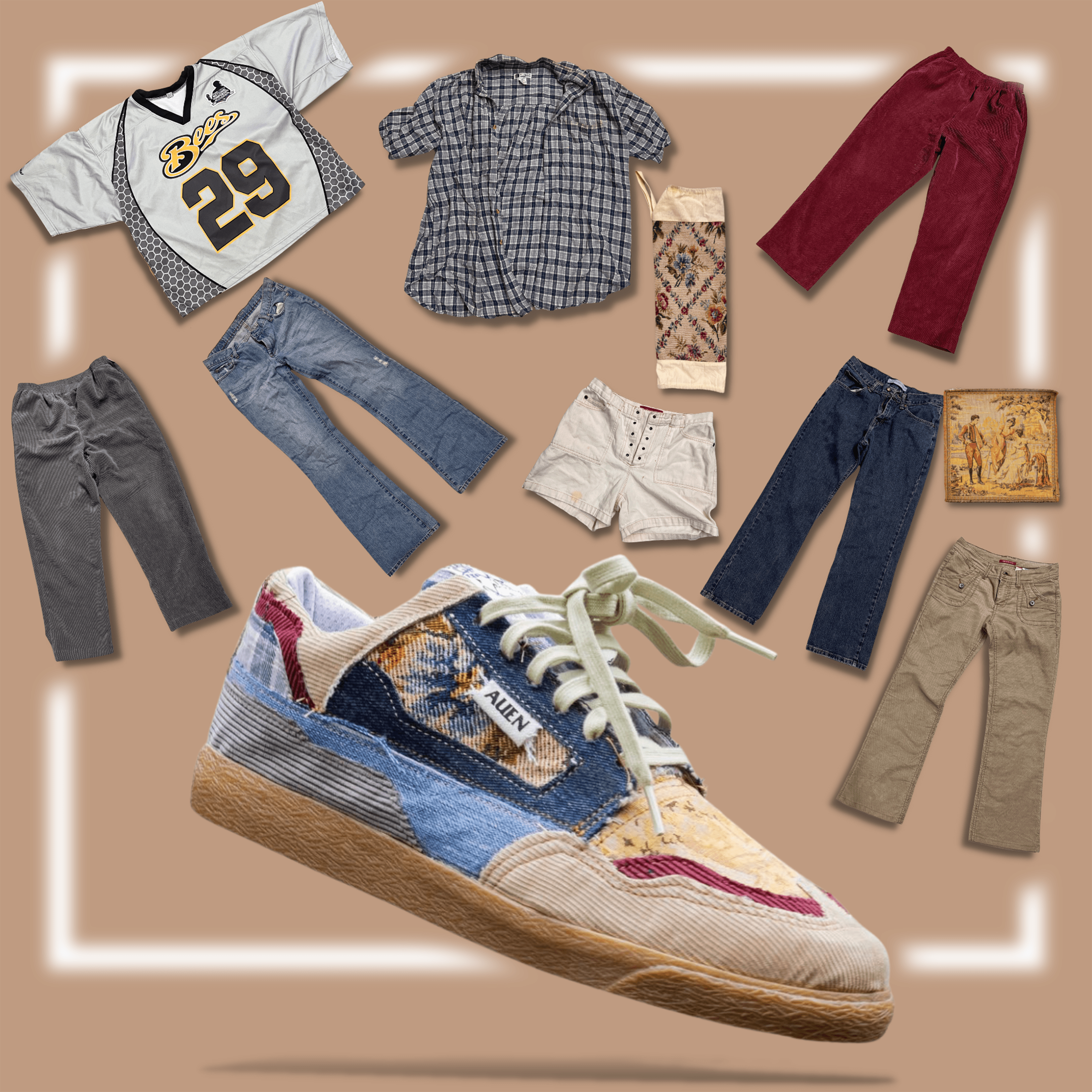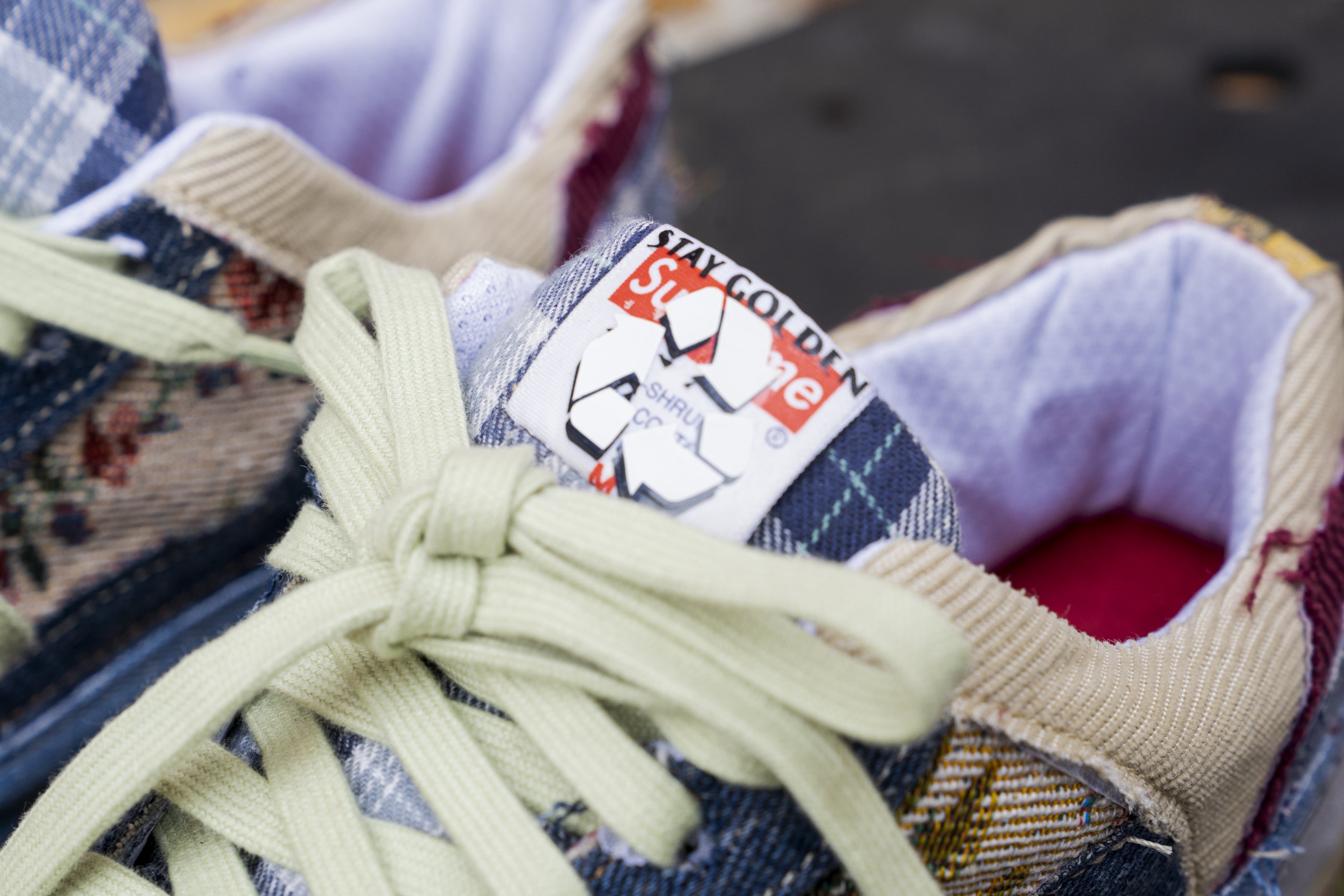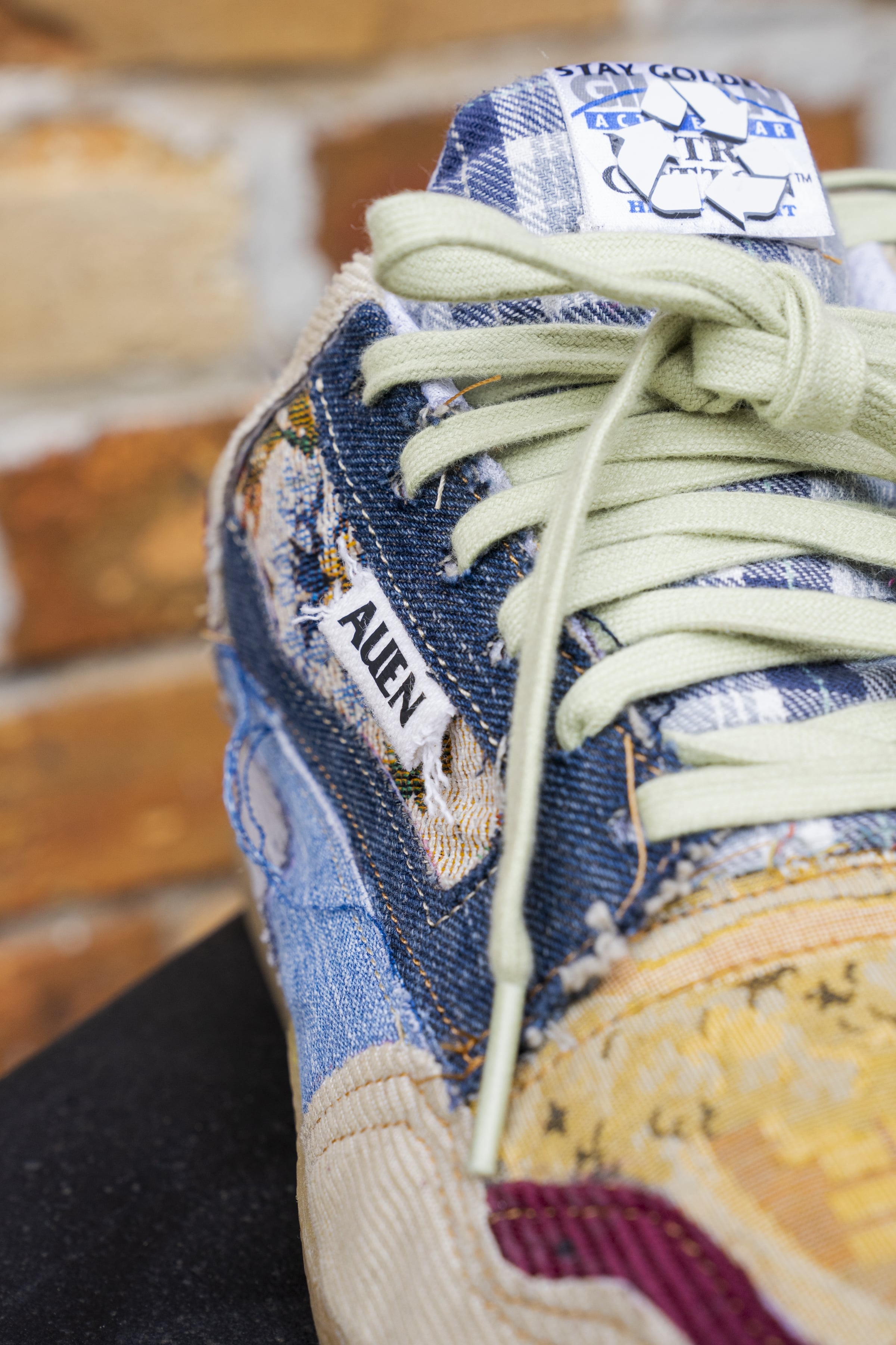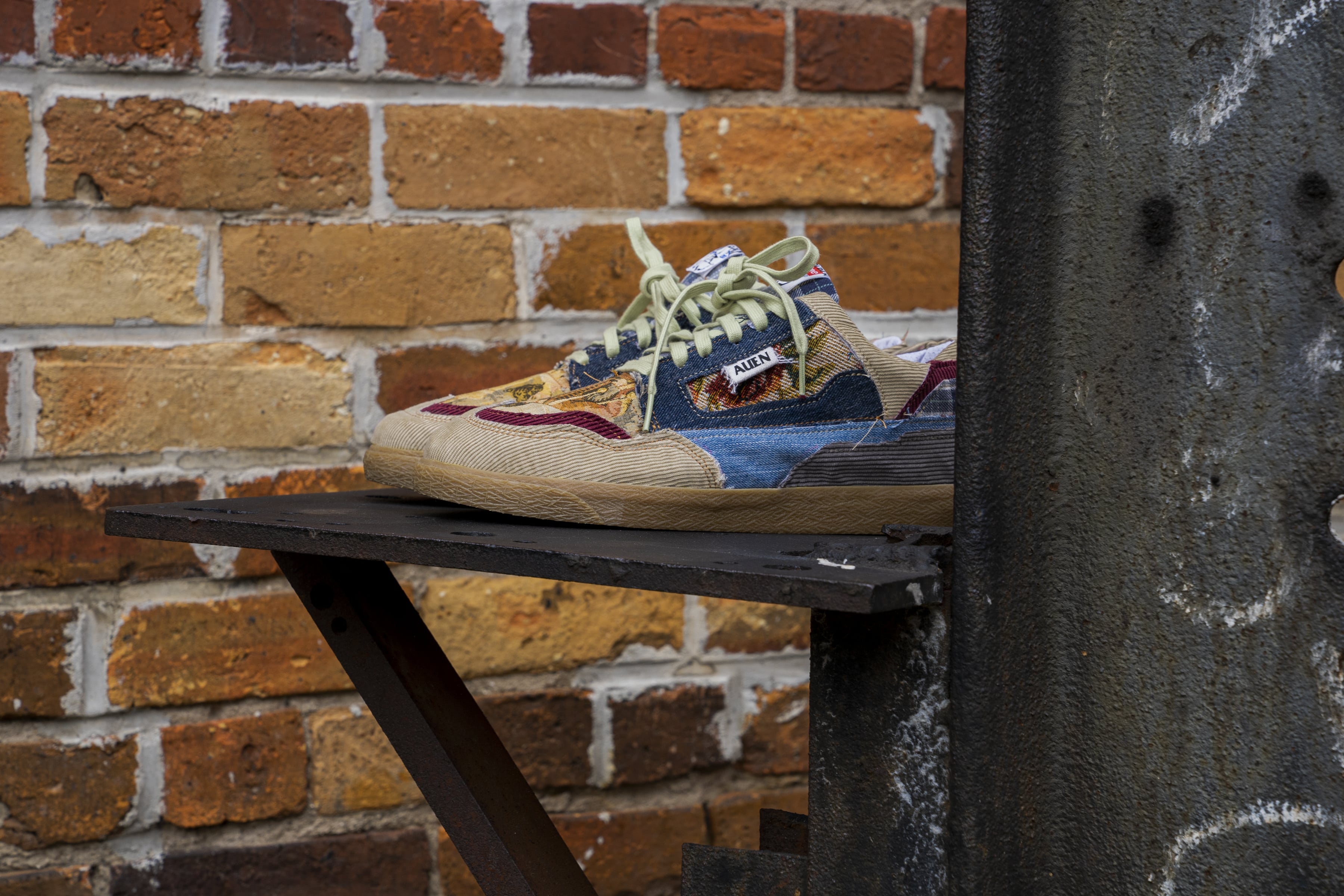 This shoe is a small step in the right direction of sustainability. The uppers are made up of materials I dug out at the Goodwill Bins. My goal while constructing the standard 79 was to take unsought-after items from goodwill and turn them into something beautiful.