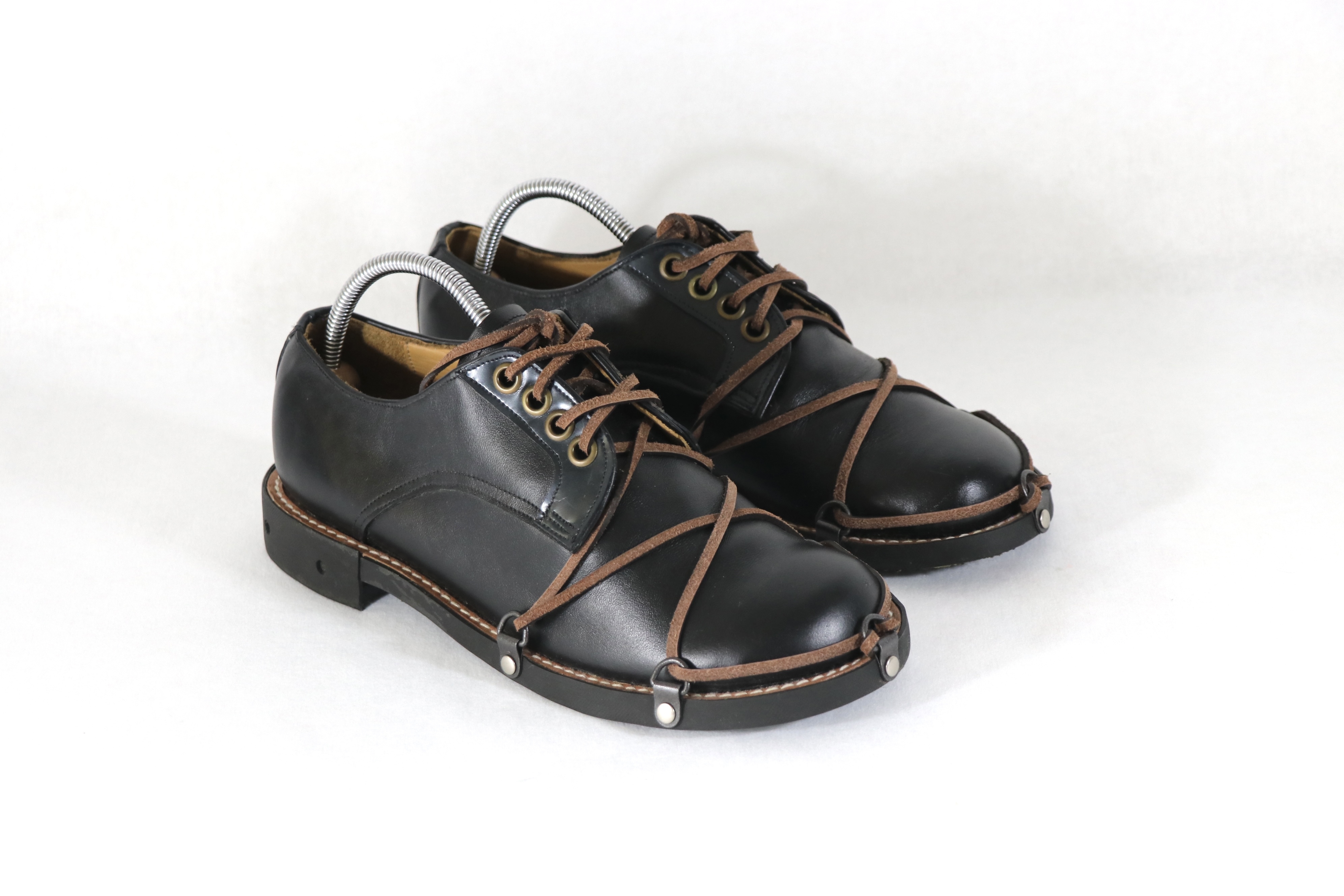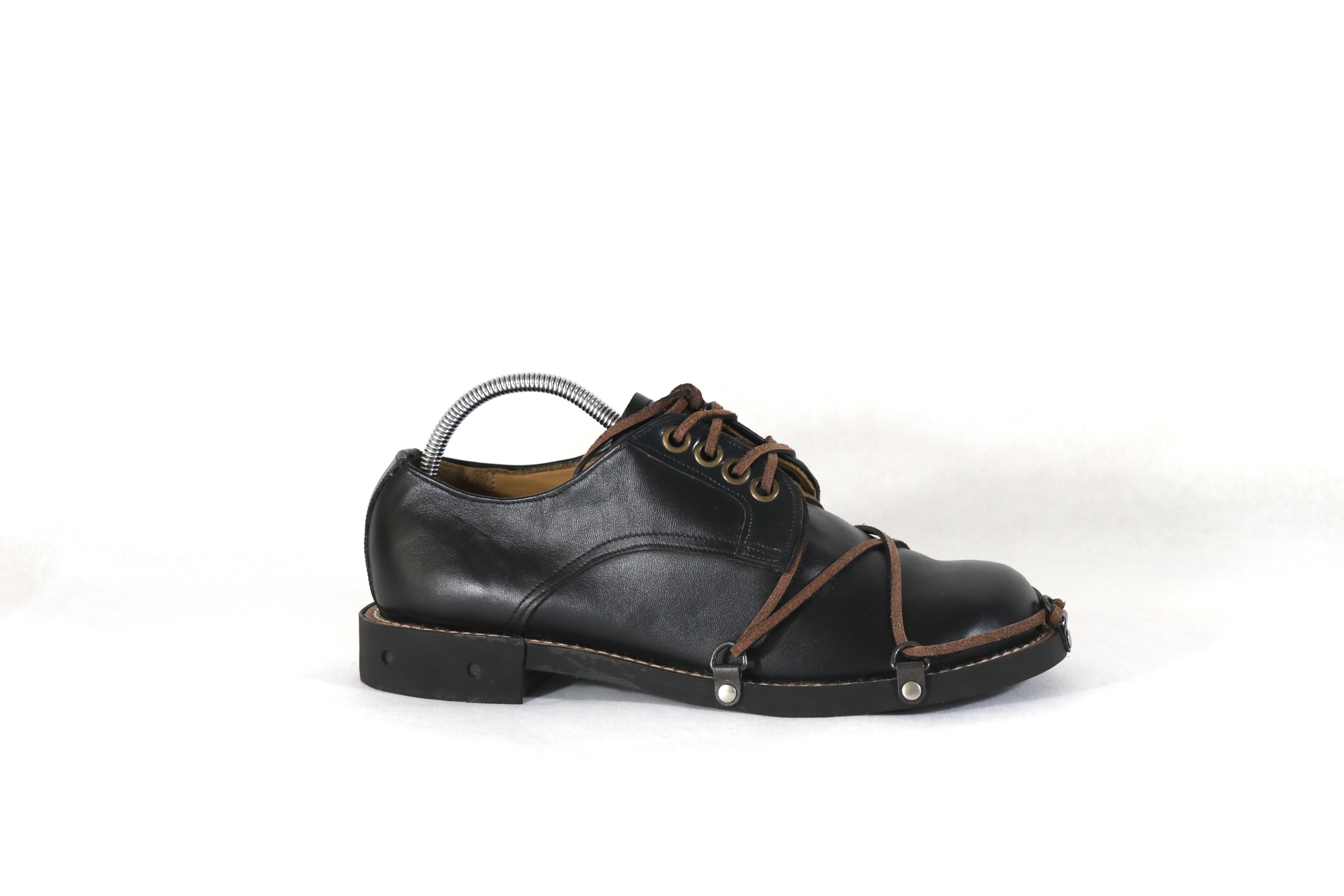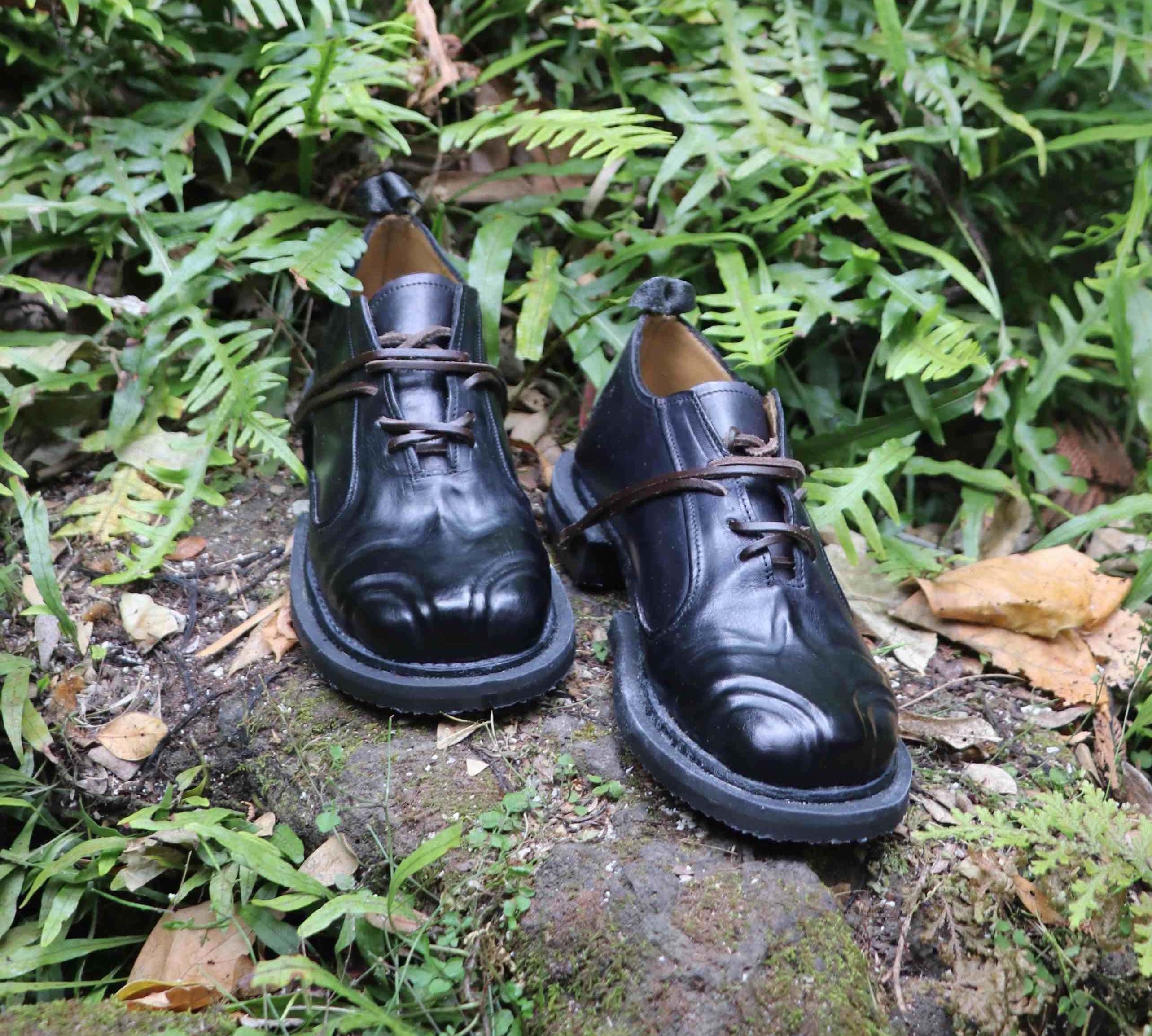 My collection is a personal exploration of the history of footwear in Aōtearoa, both Pākehā and Māori - rediscovering my own Whakapapa and Hū and reflecting on details such as Hobnails and Crampons used for versatile climates in Aōtearoa. Sharing a similar utilitarian function-inspired aesthetic to Dirk Bikkembergs' early high-end shoe designs heavily impacted my own design process - but by using only natural Veg-tan and local repairable materials in personalised traditional silhouettes added to giving my own personal take on modern footwear.