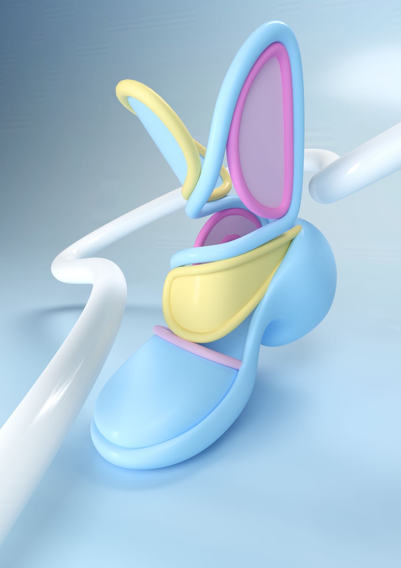 Gaint-baby refers to adults who are mentally stuck in the child stage. The project uses shoes as a medium to amplify the cuteness of childishness and help adults enjoy the positive aspects of children's culture. Breaking the black and white of the adult world, bright colours and decorative lines are the unique design language of the theme.