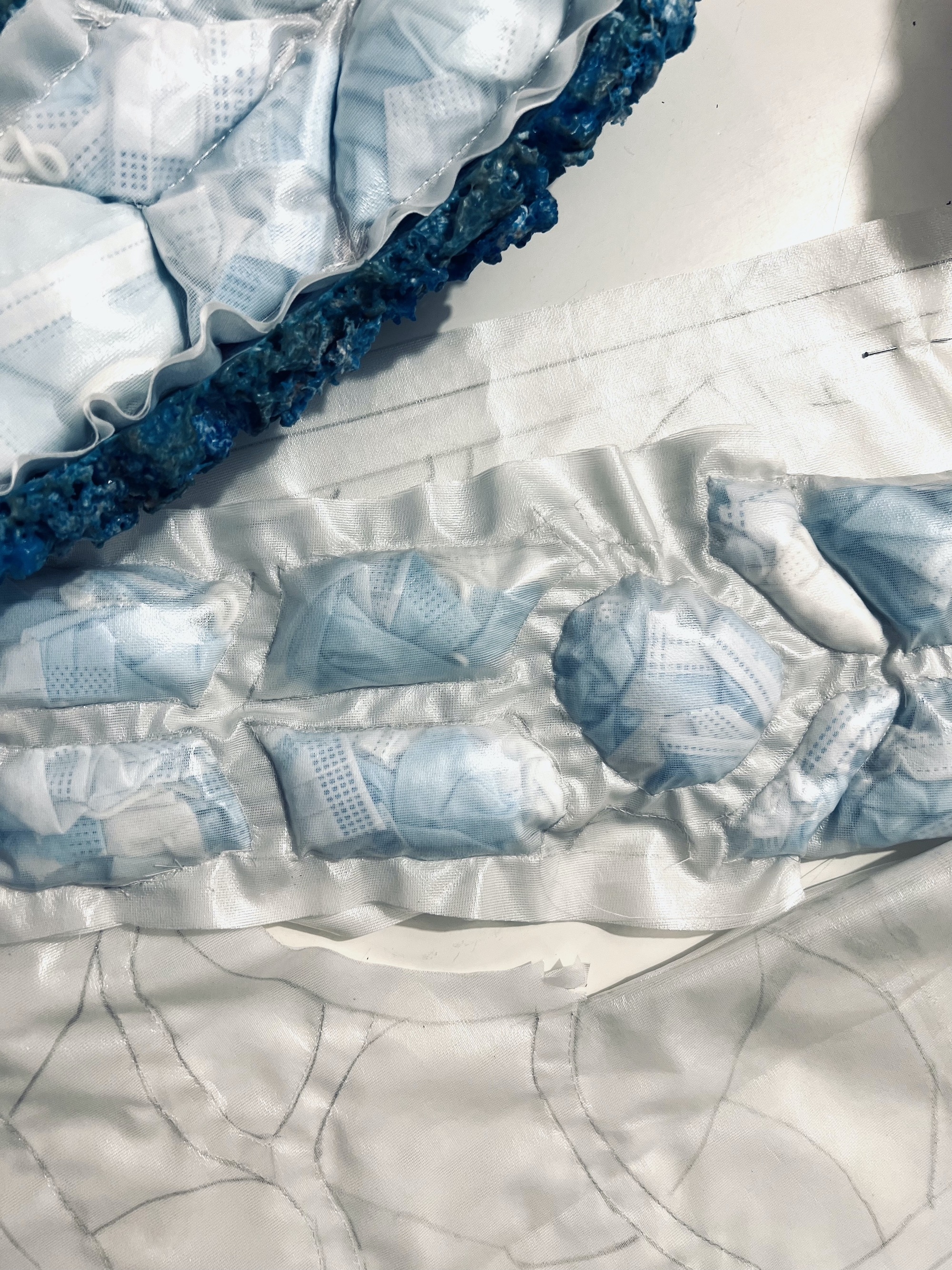Boot-19 is an experimental design project by using single-use facemask production waste as main materials developing a wearable boot.