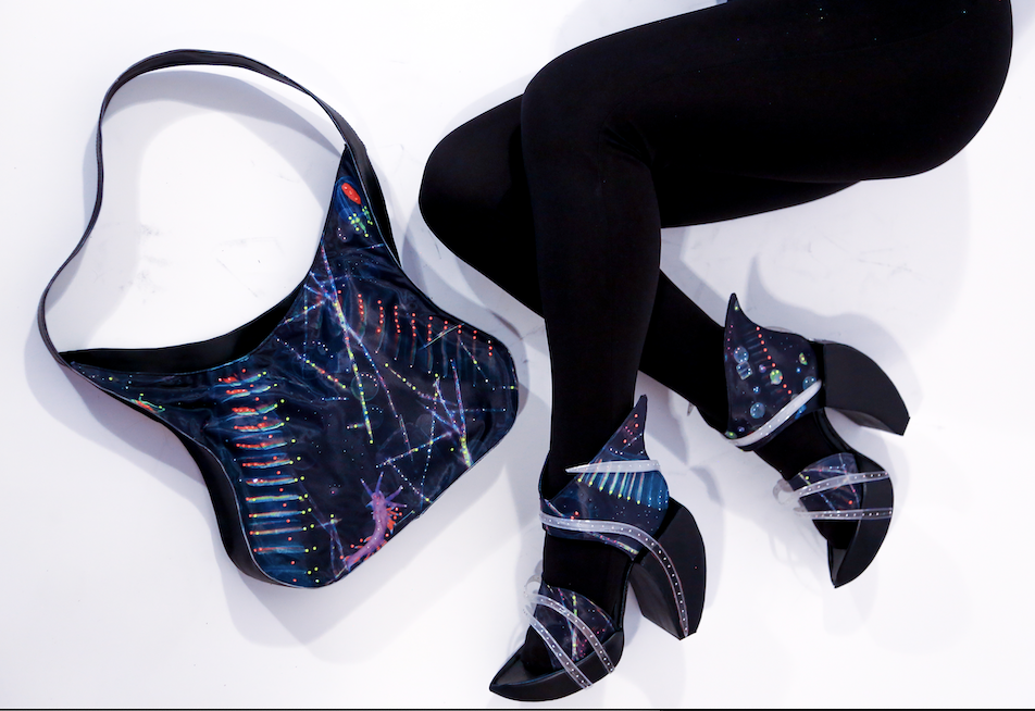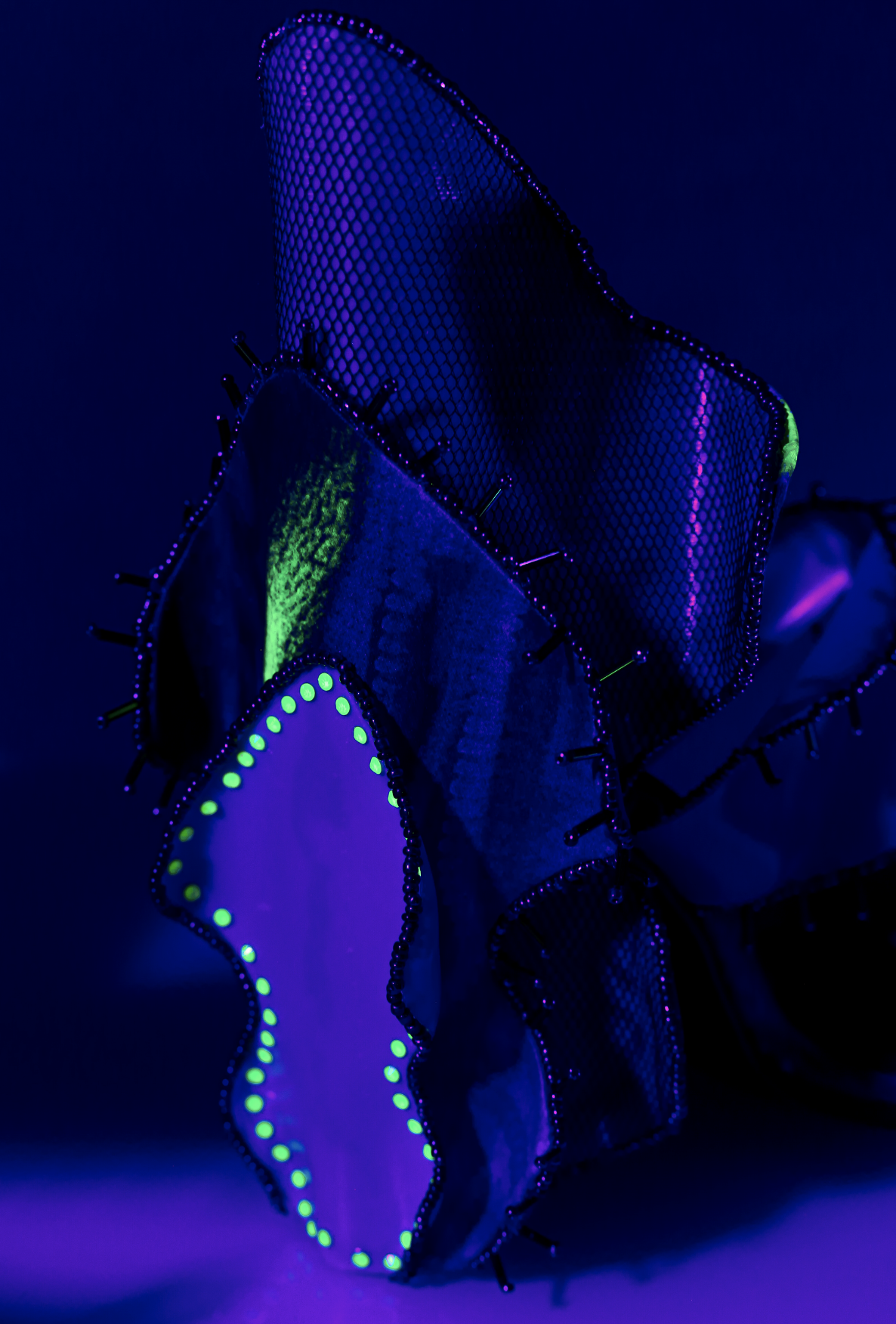 Growing up near the bioluminescent bay of Puerto Rico I created childhood memories astonished by the starry nights and glowing creatures. These products celebrate the life of curious bioluminescent creatures from the Mariana Trench, the deepest part of the ocean. Due to pollution, it was essential for the main material to be a sustainable 3D printing filament. All products were rendered with Gravity Sketch. To create the illusion of bioluminescence, the printed fabrics and SWAROVSKI crystals used are black light reactive.