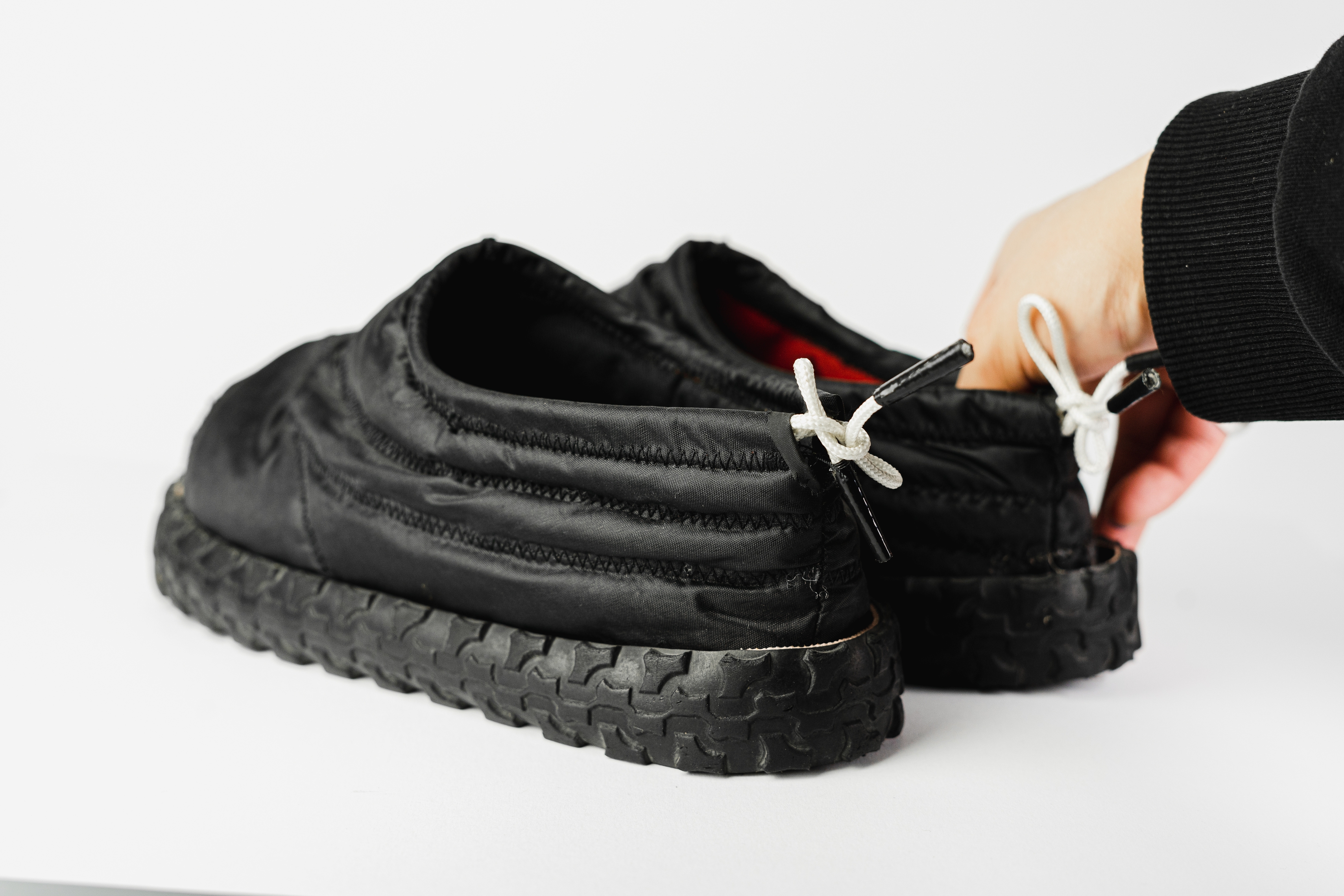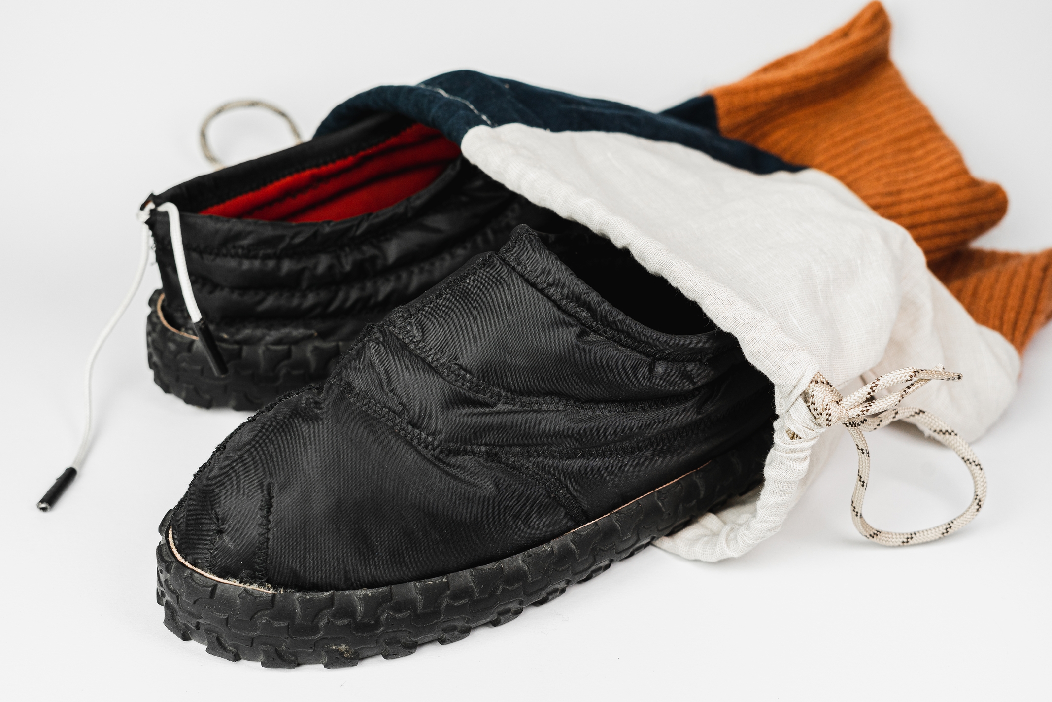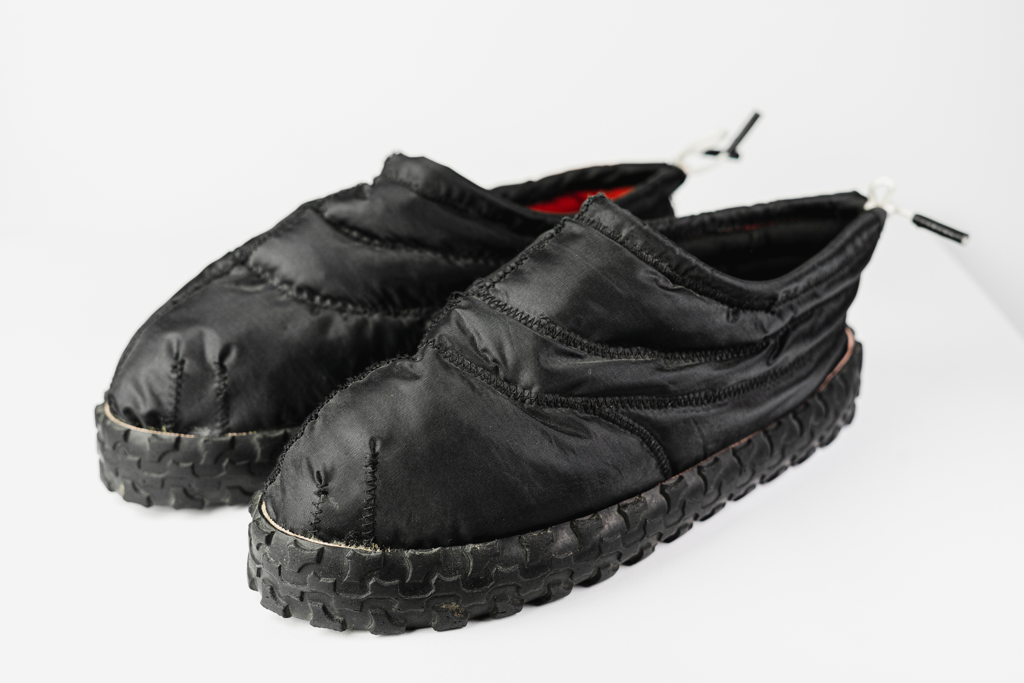 The focus is the LESS-waste design/pattern drafting. This will likely increase the efficiency, respect, and value of the materials. LESS is a pair of mules made of repurposed personal unwanted (functional) clothes also other materials found on the street to achieve a simpler unisex upper pattern of footwear, which is inspired by the ancient mocassin, and supported by the Japanese Boro and Wabi-Sabi philosophies for its beauty in imperfection. LESS revalues.