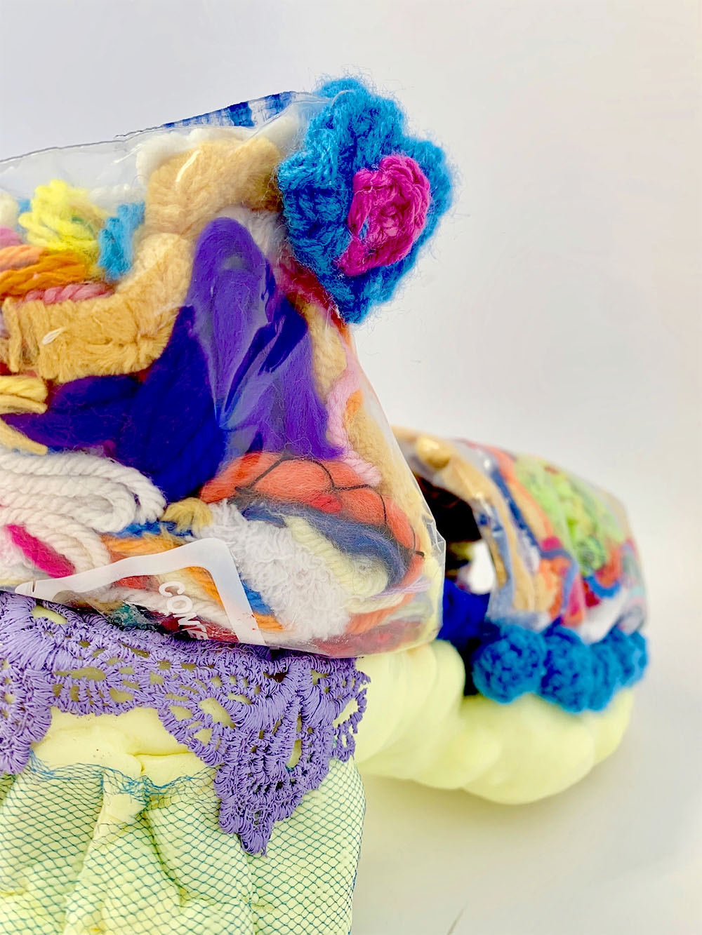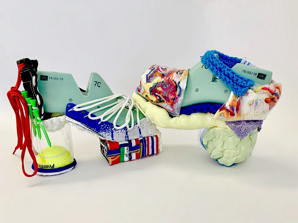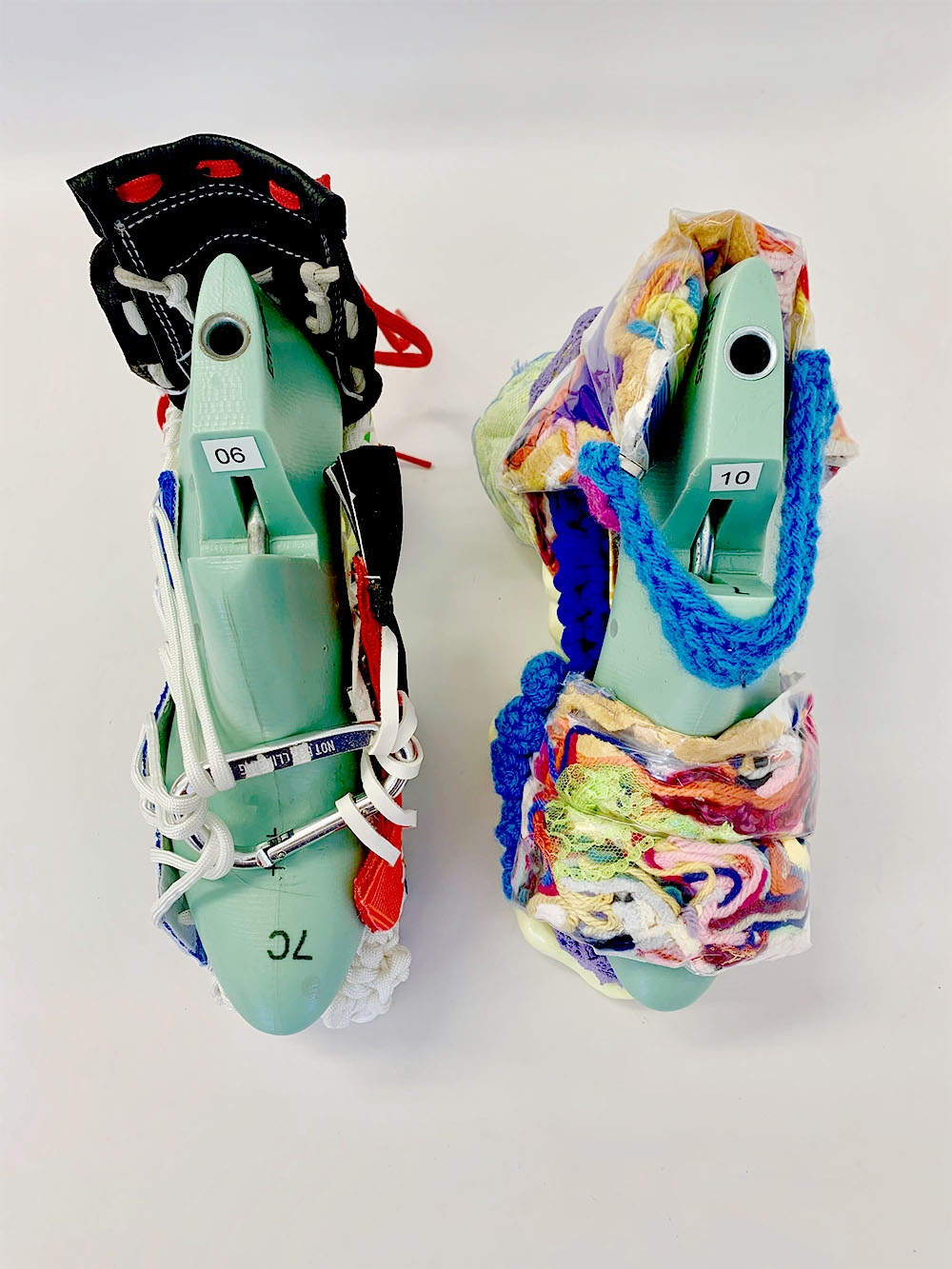 Exploratory Footwear Forms seeks to transform the purpose of used and pre-loved materials to become more functional in a second life. As a critique of consumer and waste culture, this work serves as a catalyst for sparking larger conversations about strengthening the value that we have for the materials and objects around us. Unconventional materials for footwear are leveraged to highlight innovative applications in footwear and the need to merge creativity and sustainability within the accessory industry.