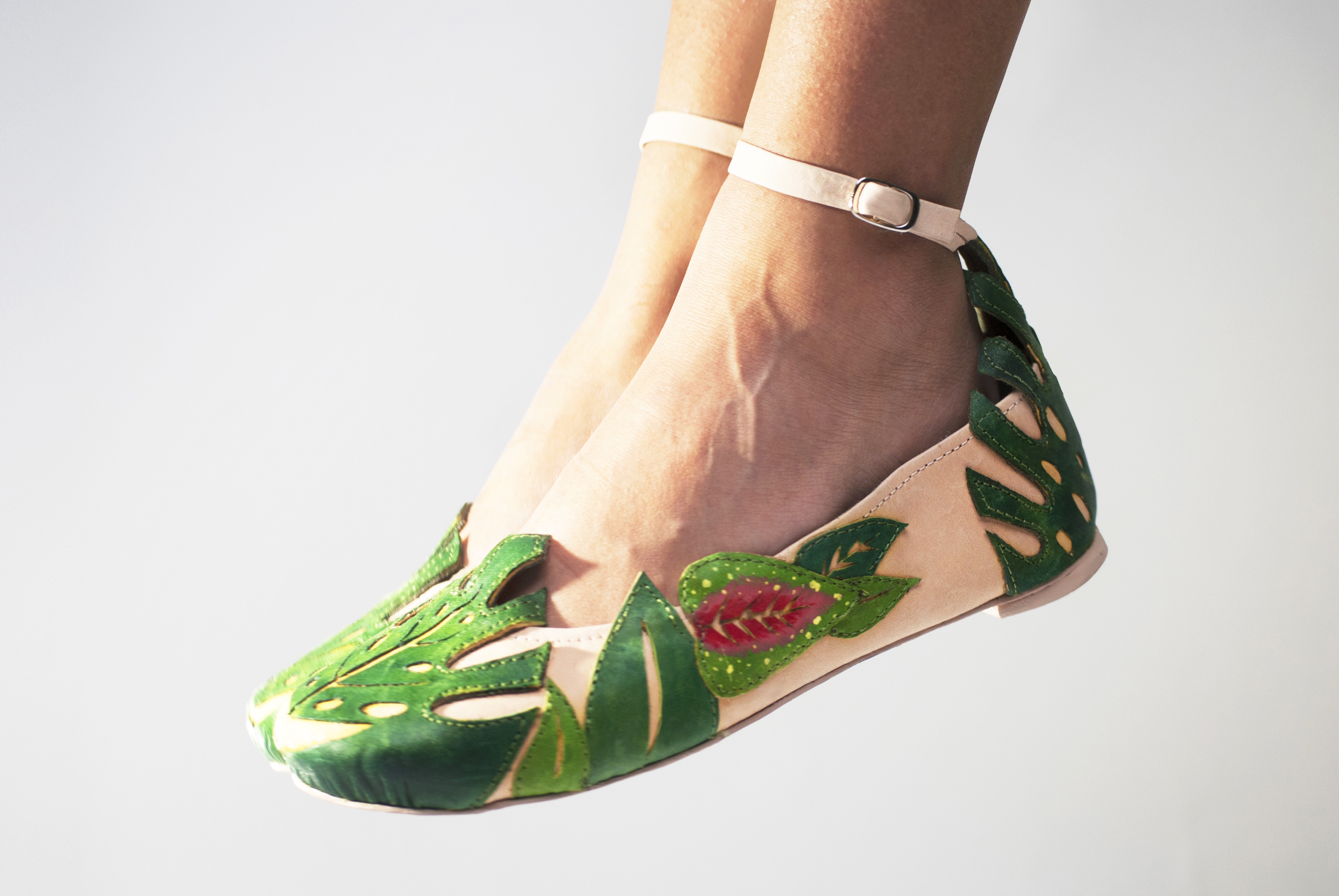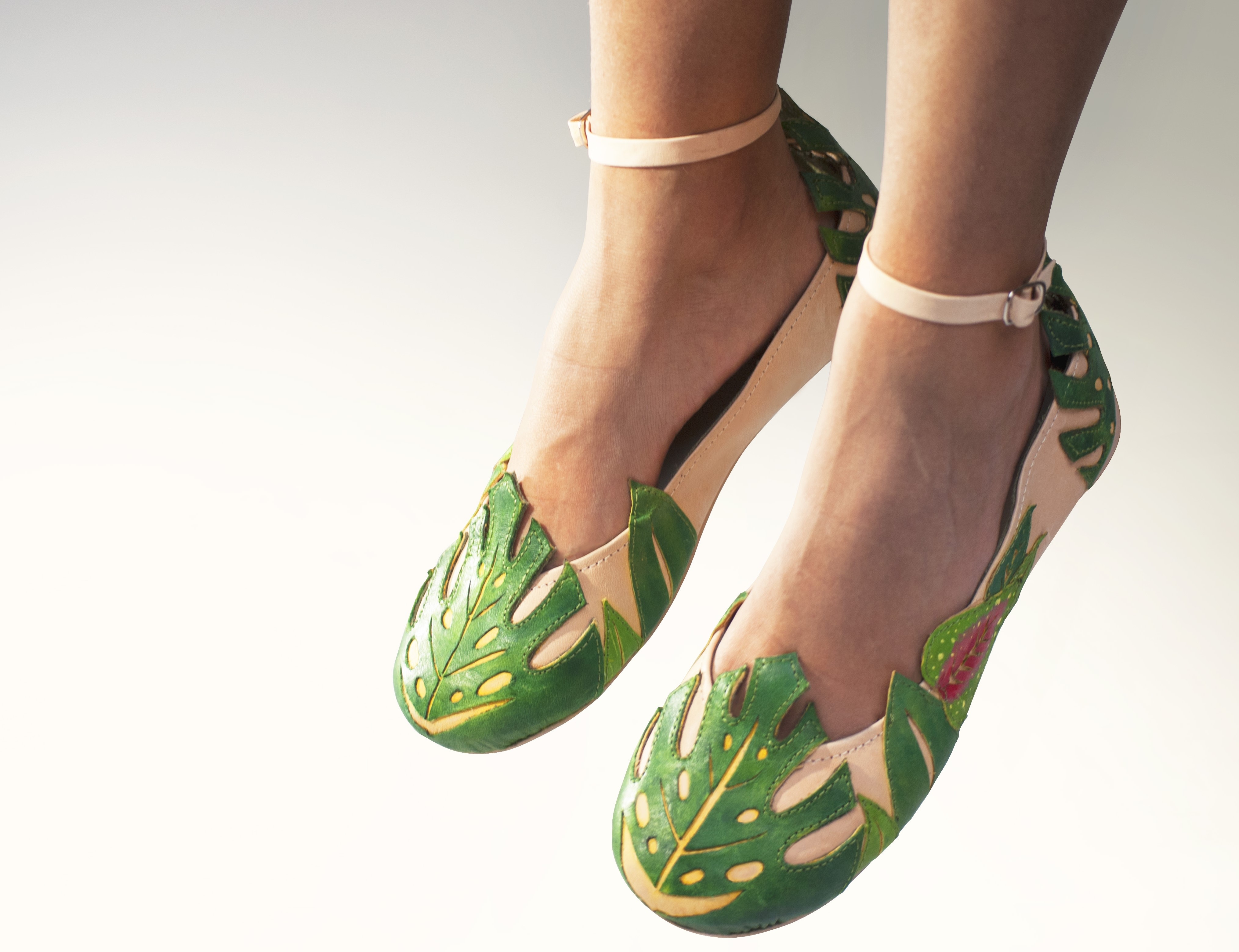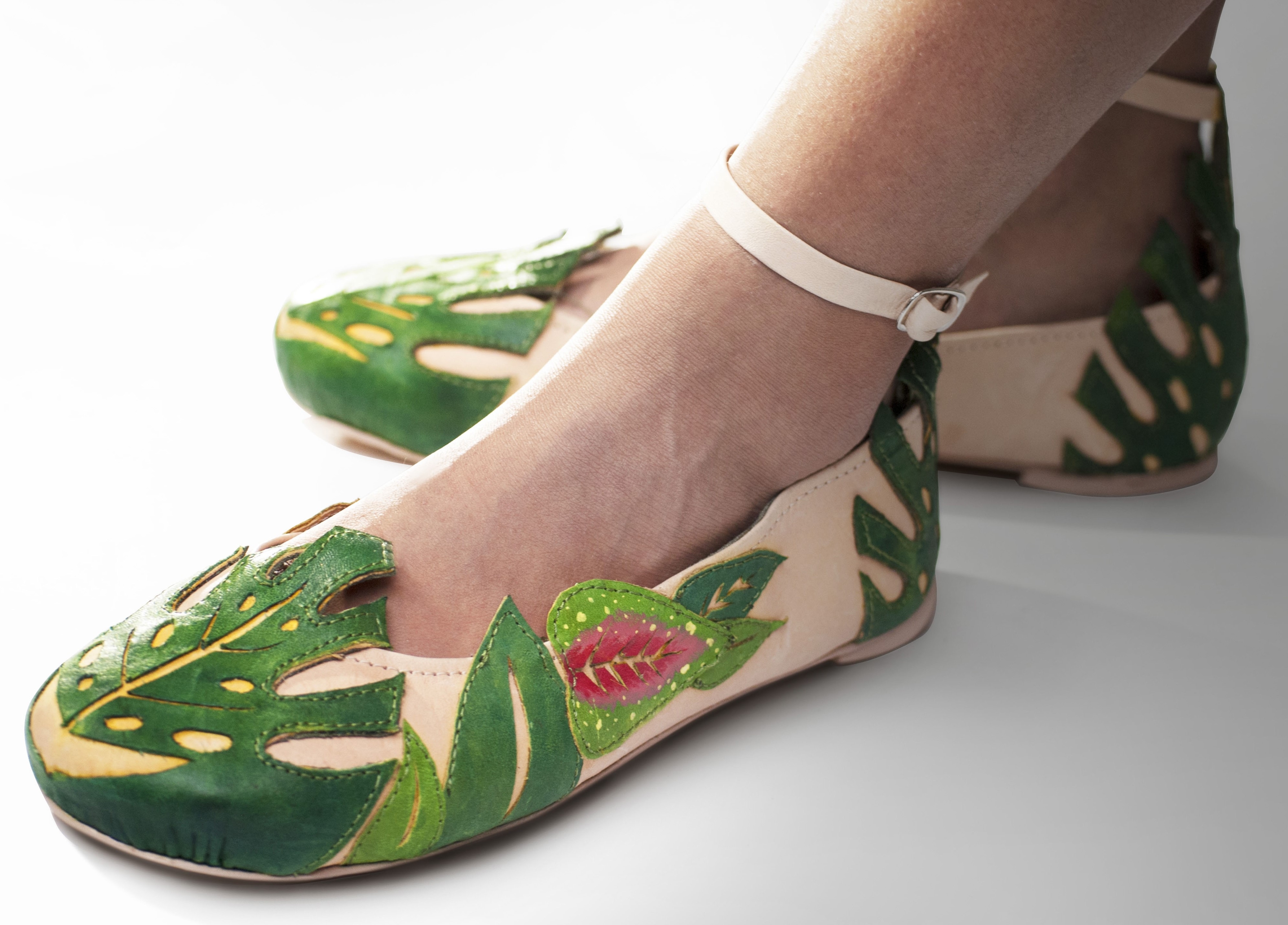 Xalapa, the city where I grew up, hosts one of the most diverse ecosystems in Mexico. The cloud forest. When I was a child one of my favorite pastimes was to visit the forest as well as the adjacent botanical garden. These flats are a walk through the garden. Literally. They are fun and playful. The plants that adorn and decorate the shoe are some of the ones that could be found in this forest and garden.