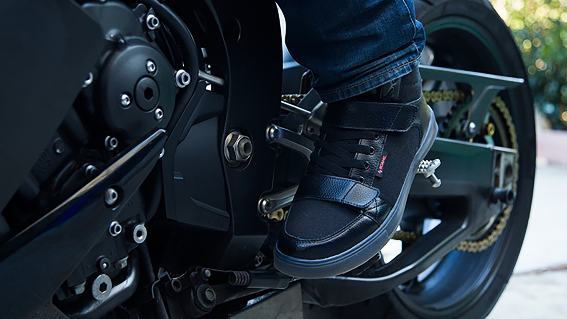 Create a motorcycle shoe that looks like a regular lifestyle shoe, but has hidden protection and integrates Roame's patented wireless turn/brake signal technology.