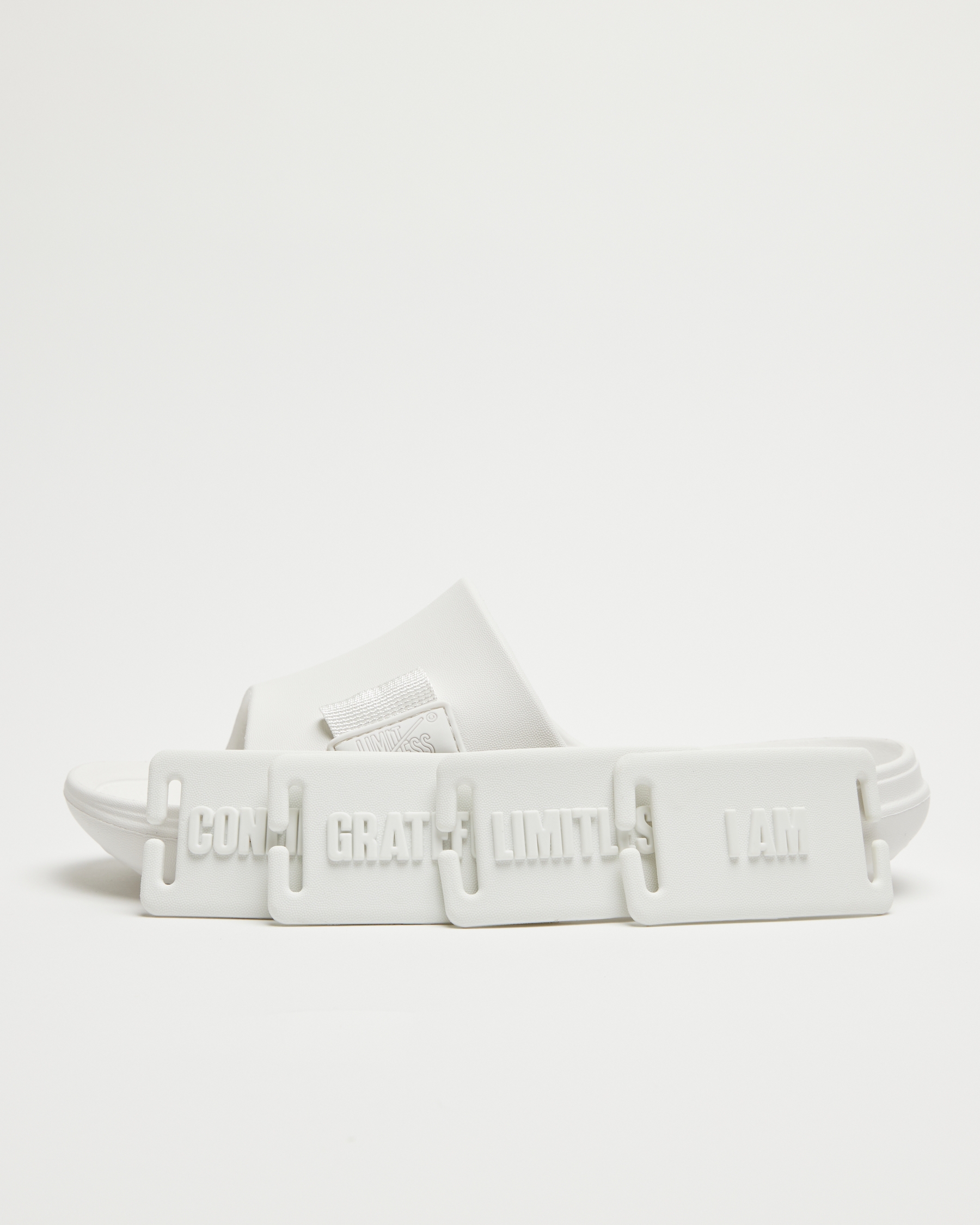 Limitless Slides support body & spirit with each step. Expertly designed & made of responsive DoughFoam, the slides pair comfort & performance with positive affirmations. Patented, interchangeable TIBAHs create custom phrases to manifest confidence. Pair “I AM” + “LIMITLESS” to tout infinite potential. A lifelong athlete, founder Coach Lisa is professionally & personally devoted to helping others be their best. Her @challengeusoftball & CUDIT athlete & coaching programs boost physical & mental wellbeing on & off the field. Limitless Slides bring Coach Lisa’s passion & positivity to us all.