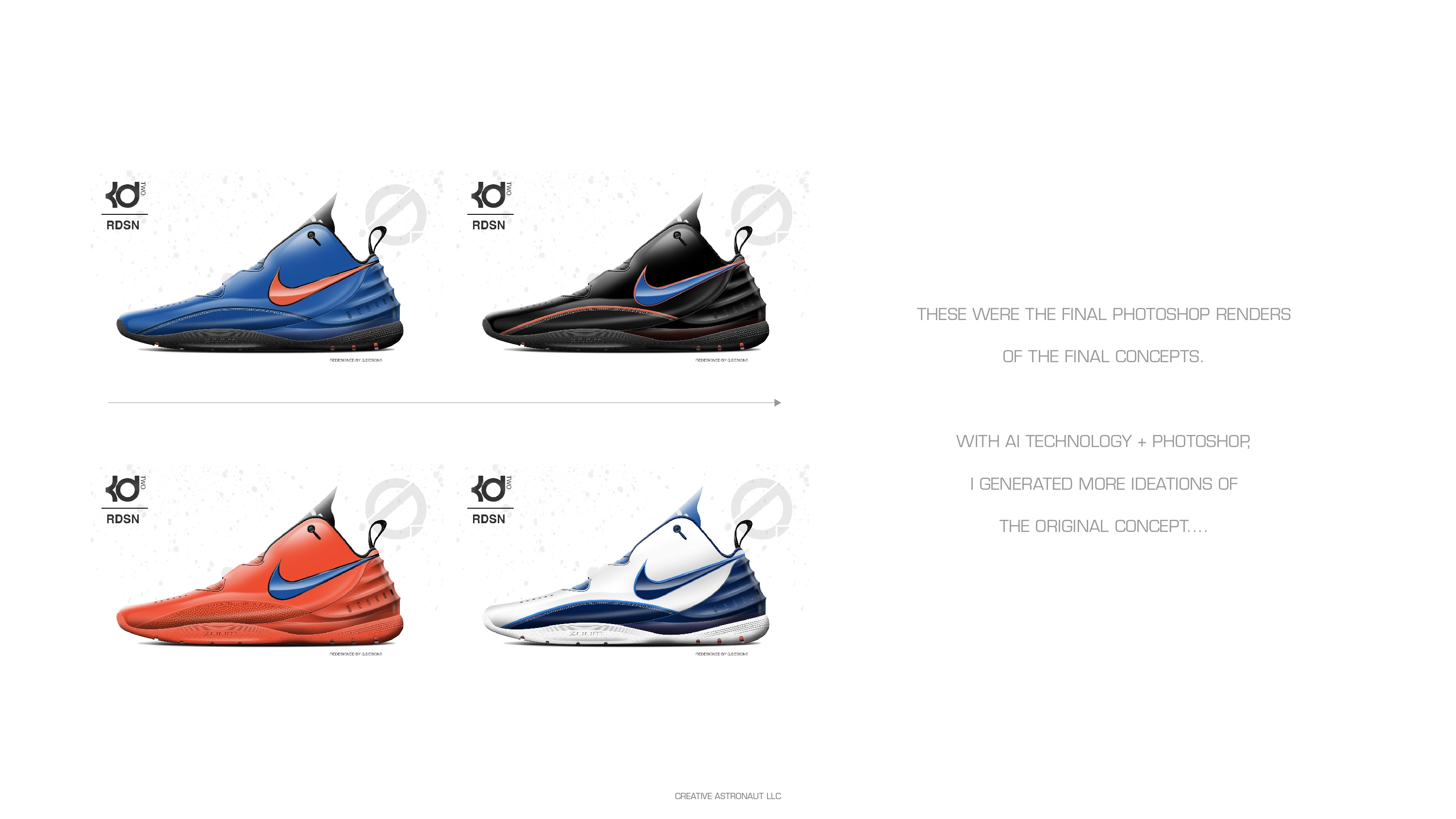This project was created by myself to explore iconic signature shoes and recreate/update them. In this particular series, I focused on the NIKE KD 2. There were two components that I kept as design elements: the clean upper and the ribbed exterior heel counter but accentuate it more. One silhouette I've always loved was the NIKE Zoom Ultraflight, so I bridged that iconic TPU Support Shell and applied it to the heel to give more aggressive sculpting. I aimed to make the side profile as clean as possible to mimic KD's smooth playing style as the original model did - but just updated. The in
