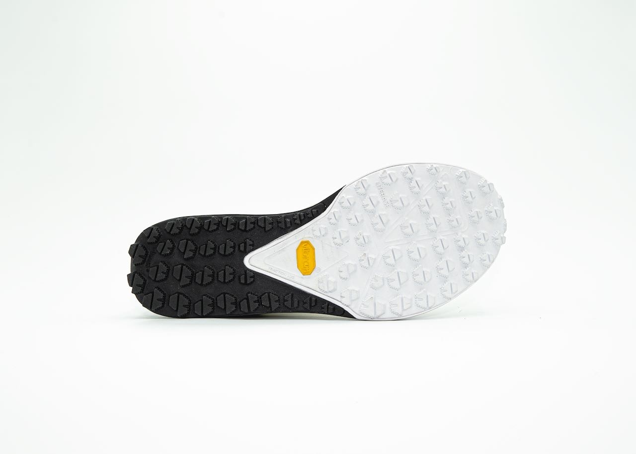 Super lightweight trail racing shoe designed for mountain racing. All non-necessary details have been eliminated. Carbon fiber midsole plate provides kinetic energy as well as rock protection. Vibram outsole provides lightweight technology to ensure maximum grip.