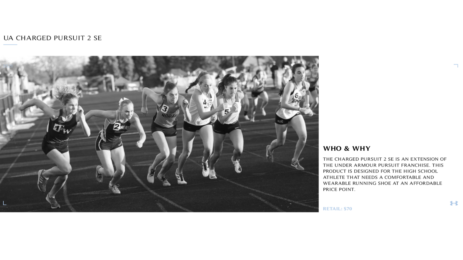 The Charged Pursuit 2 SE is an Under Armour Pursuit franchise extension. This product is designed for the high school athlete who needs a comfortable and wearable running shoe at an affordable price point.