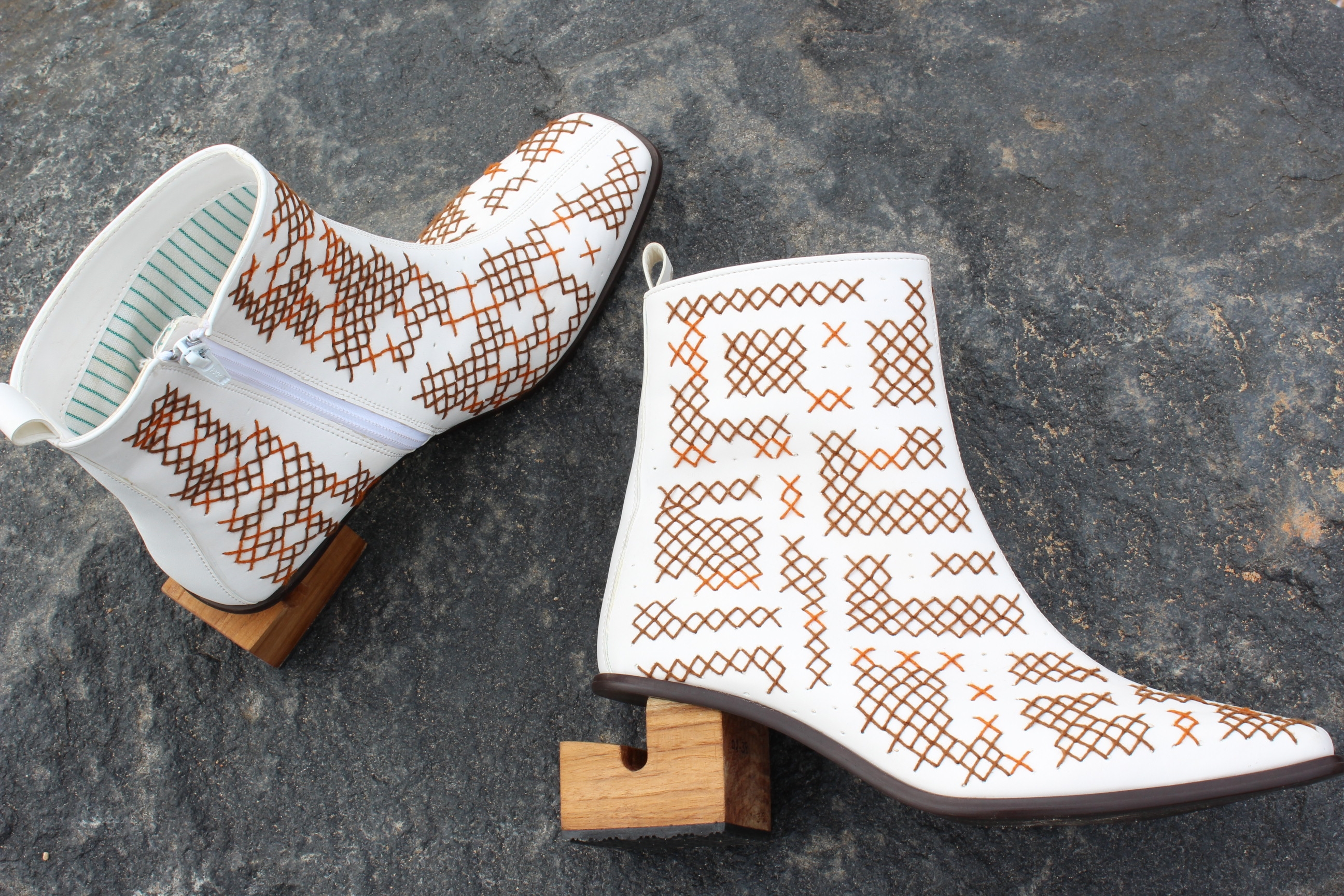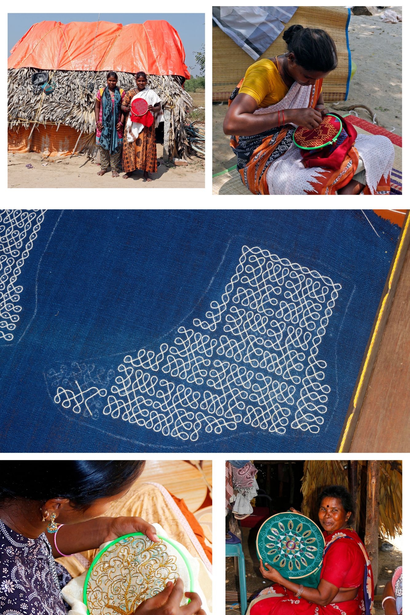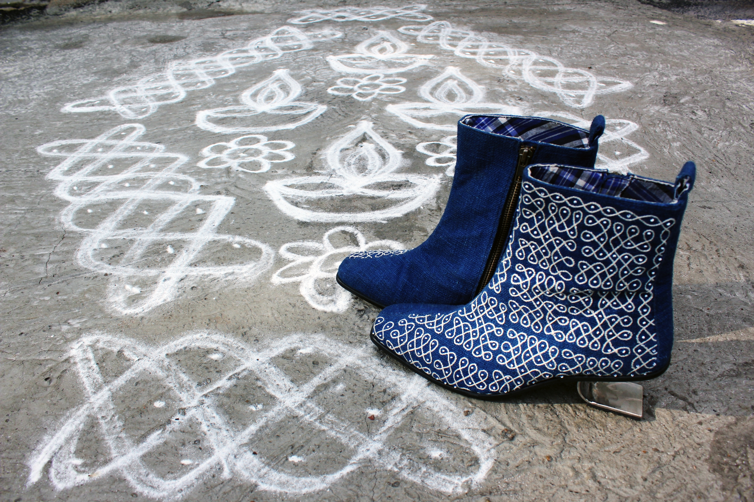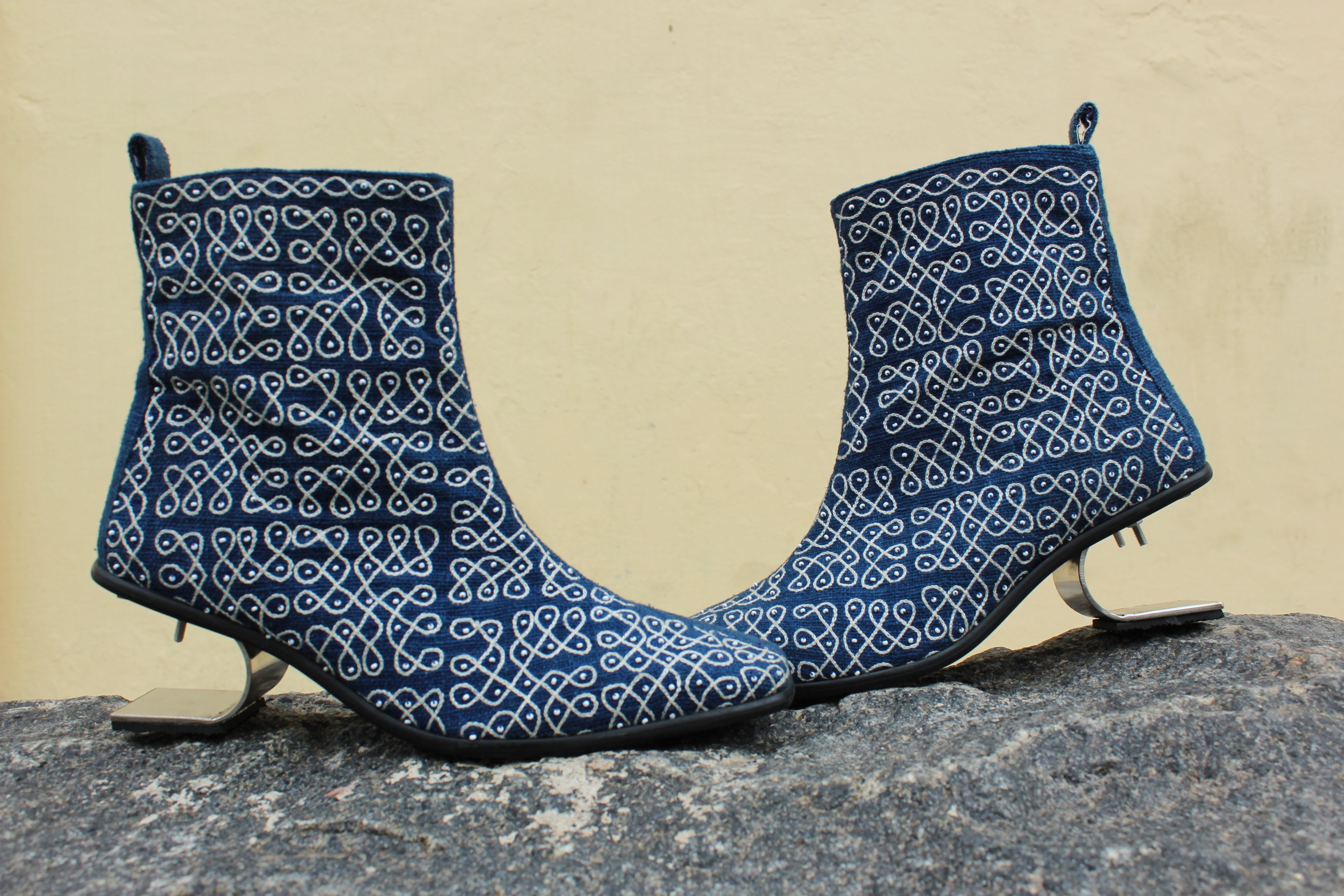 We collaborate with an NGO called Kanimar, which gives snake-catching community women the opportunity to study needlework. We collaborate closely with these ladies to incorporate their expertise in surface design into our shoes because we believe that doing so helps to support the livelihood of this group of women and also exemplifies Tamil culture.