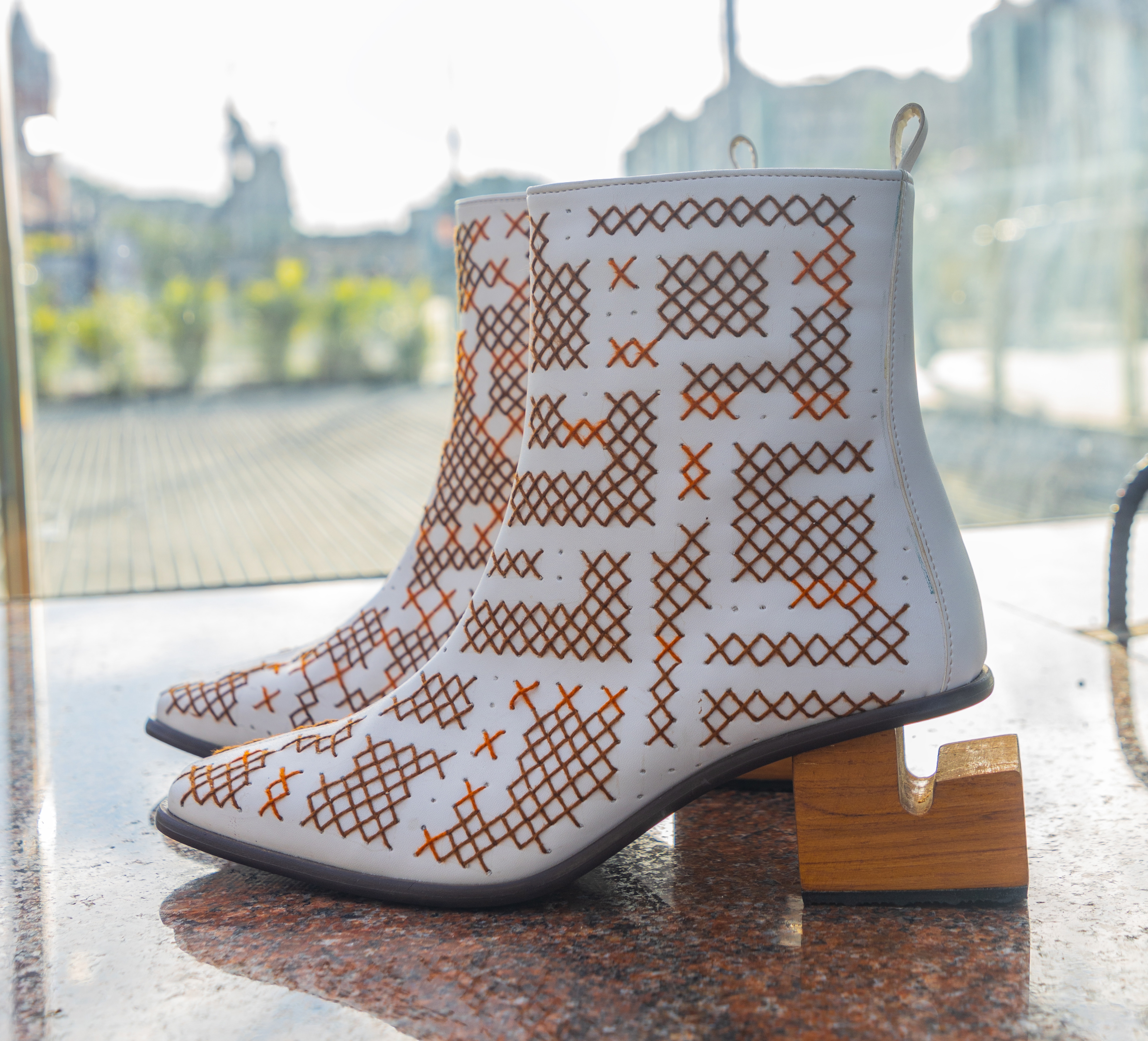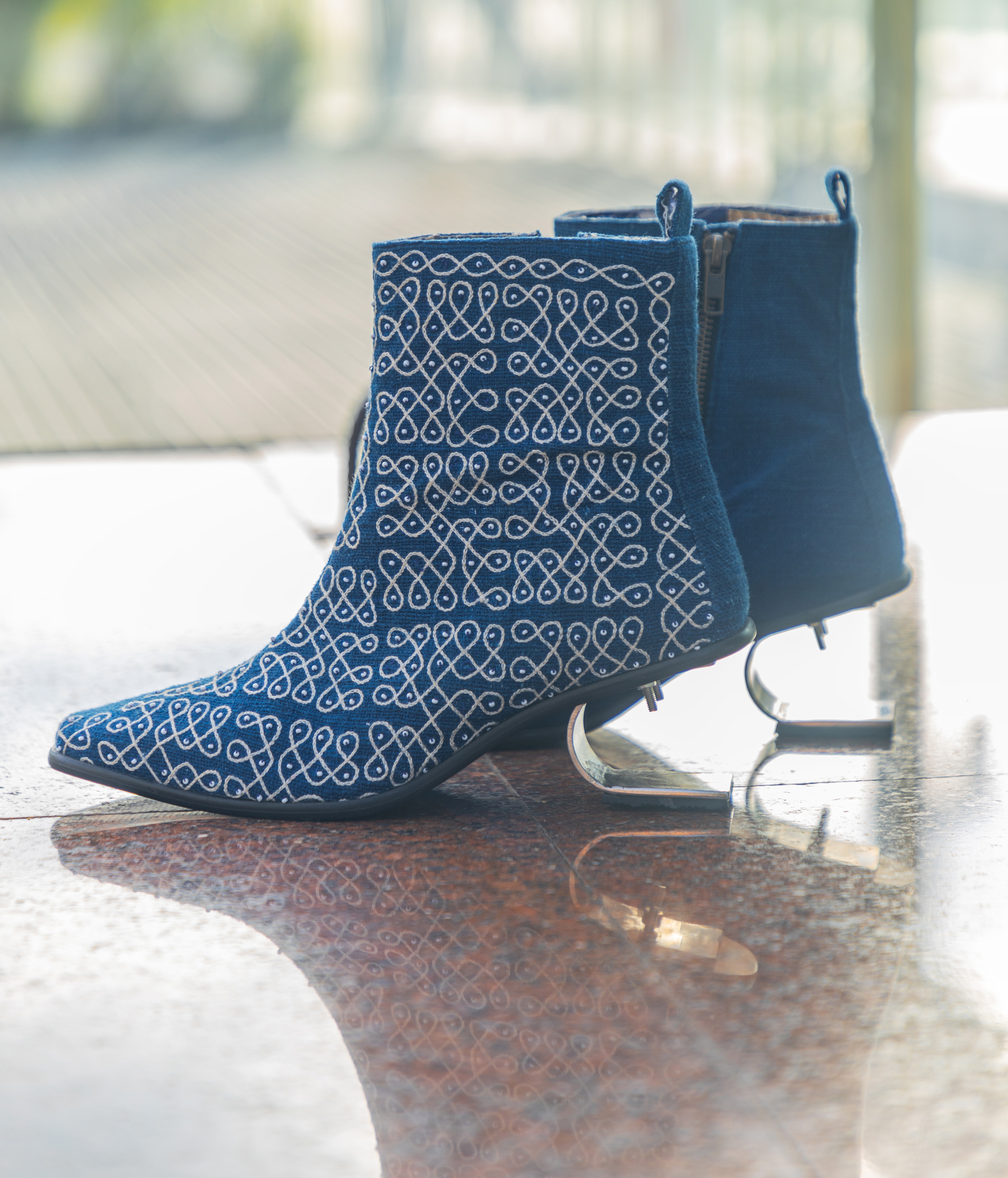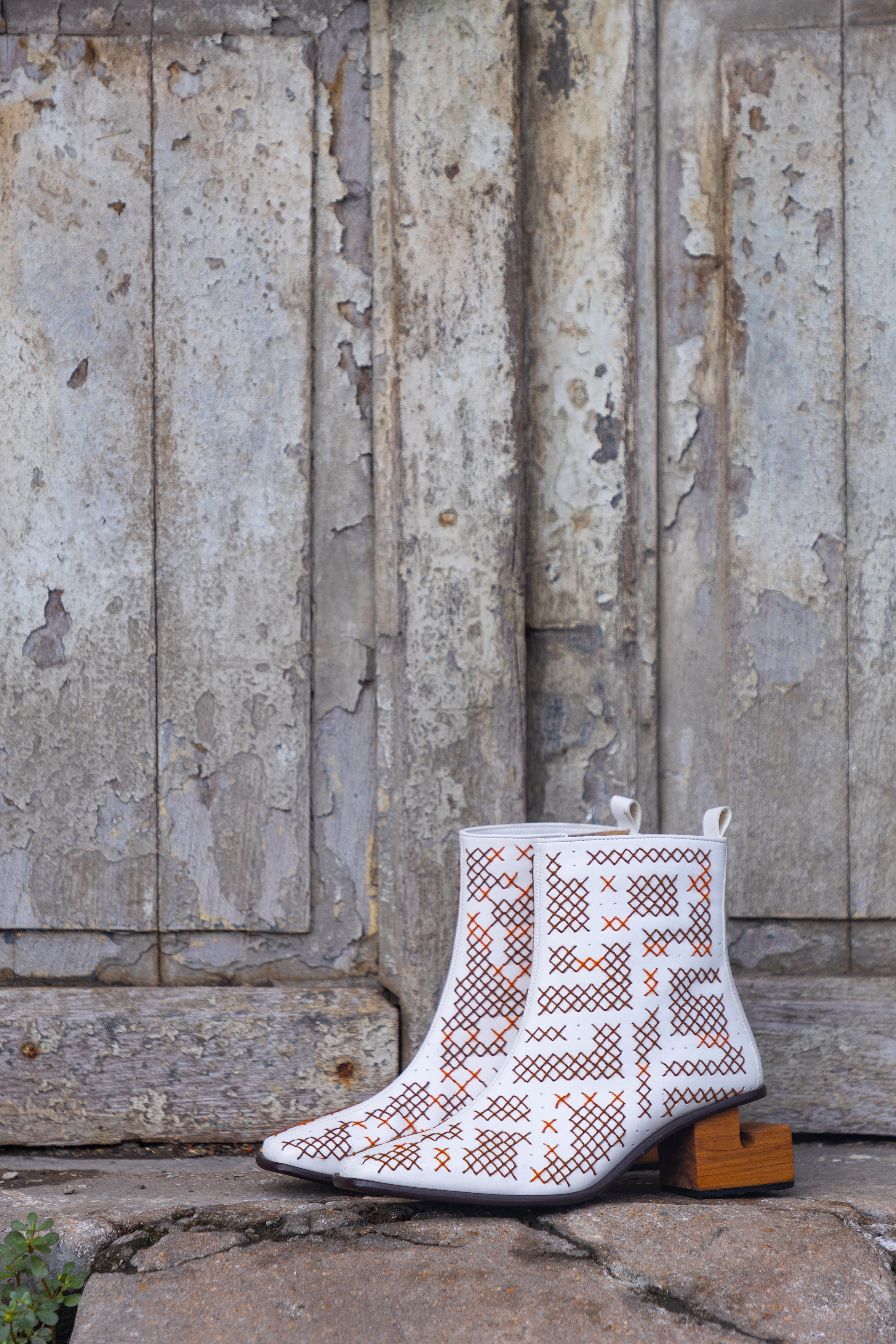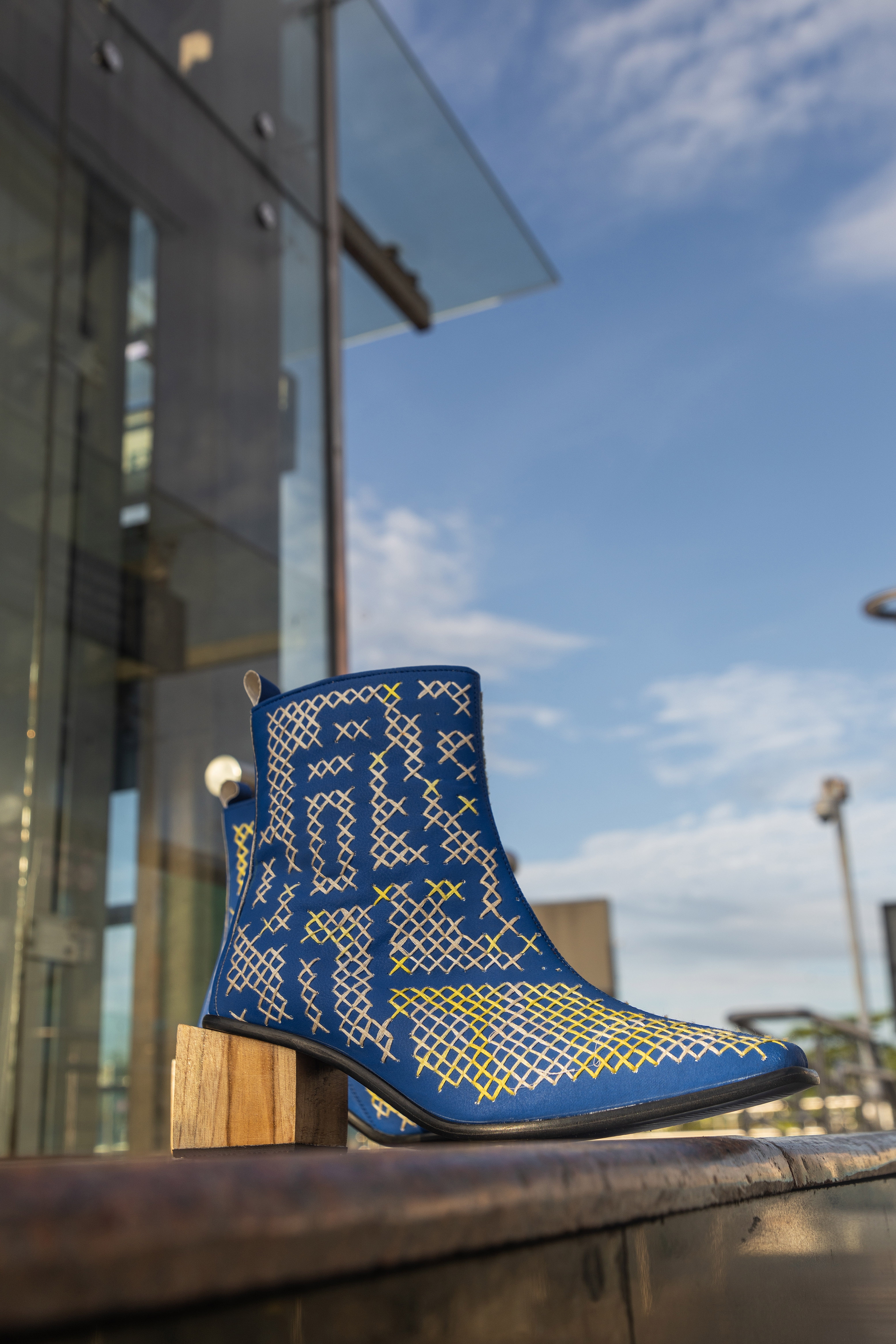We collaborate with an NGO called Kanimar, which gives snake-catching community women the opportunity to study needlework. We collaborate closely with these ladies to incorporate their expertise in surface design into our shoes because we believe that doing so helps to support the livelihood of this group of women and also exemplifies Tamil culture.