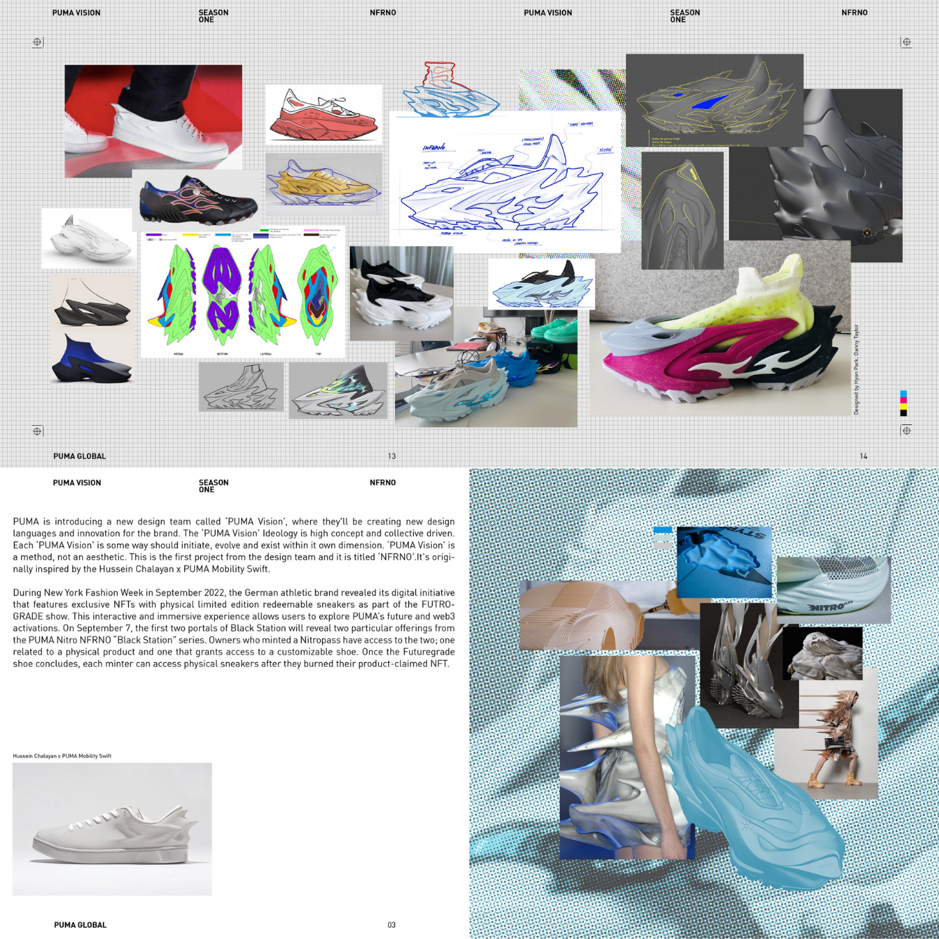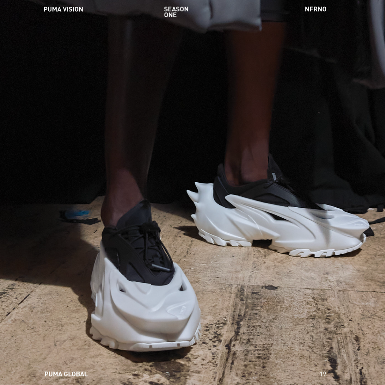 PUMA is introducing a new design team called ‘PUMA Vision’, where they'll be creating new design languages and innovation for the brand. The ‘PUMA Vision’ Ideology is high concept and collective driven. Each ‘PUMA Vision’ in some way should initiate, evolve, and exist within its own dimension. ‘PUMA Vision’ is a method, not an aesthetic. This is the first project from the design team and it is titled ‘NFRNO’. It was originally inspired by the Hussein Chalayan x PUMA Mobility Swift.