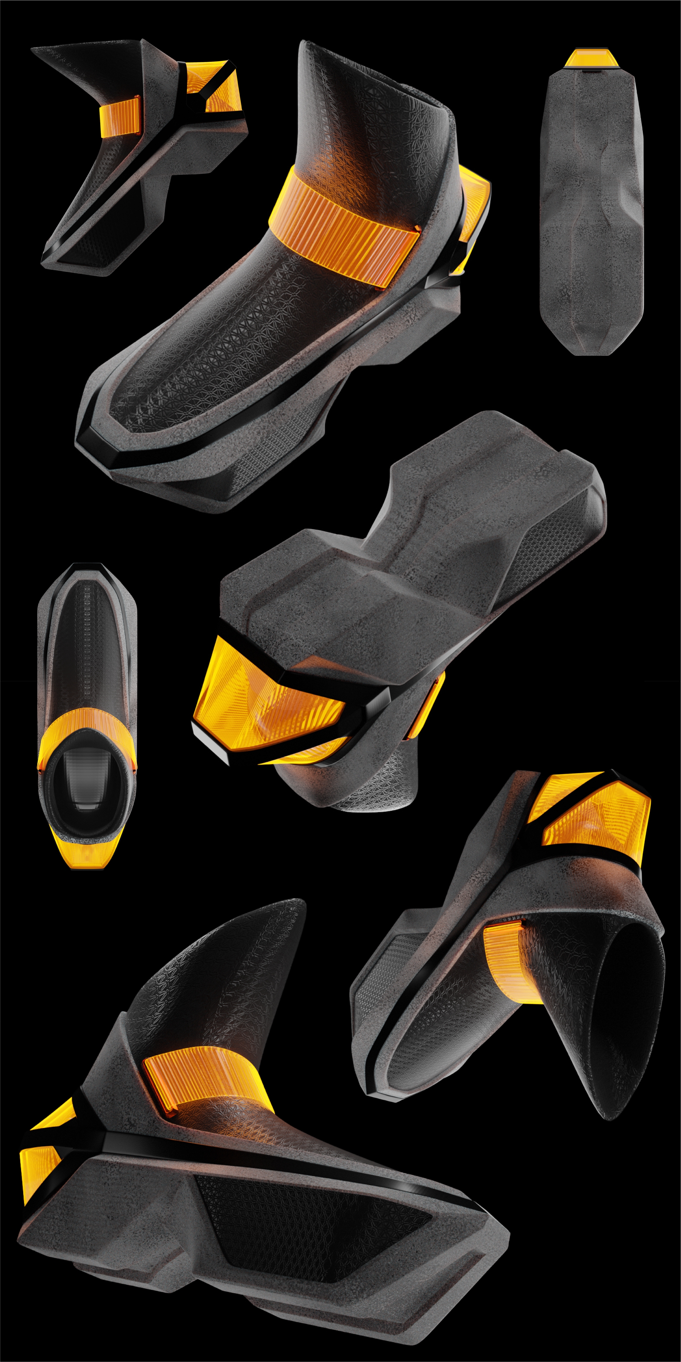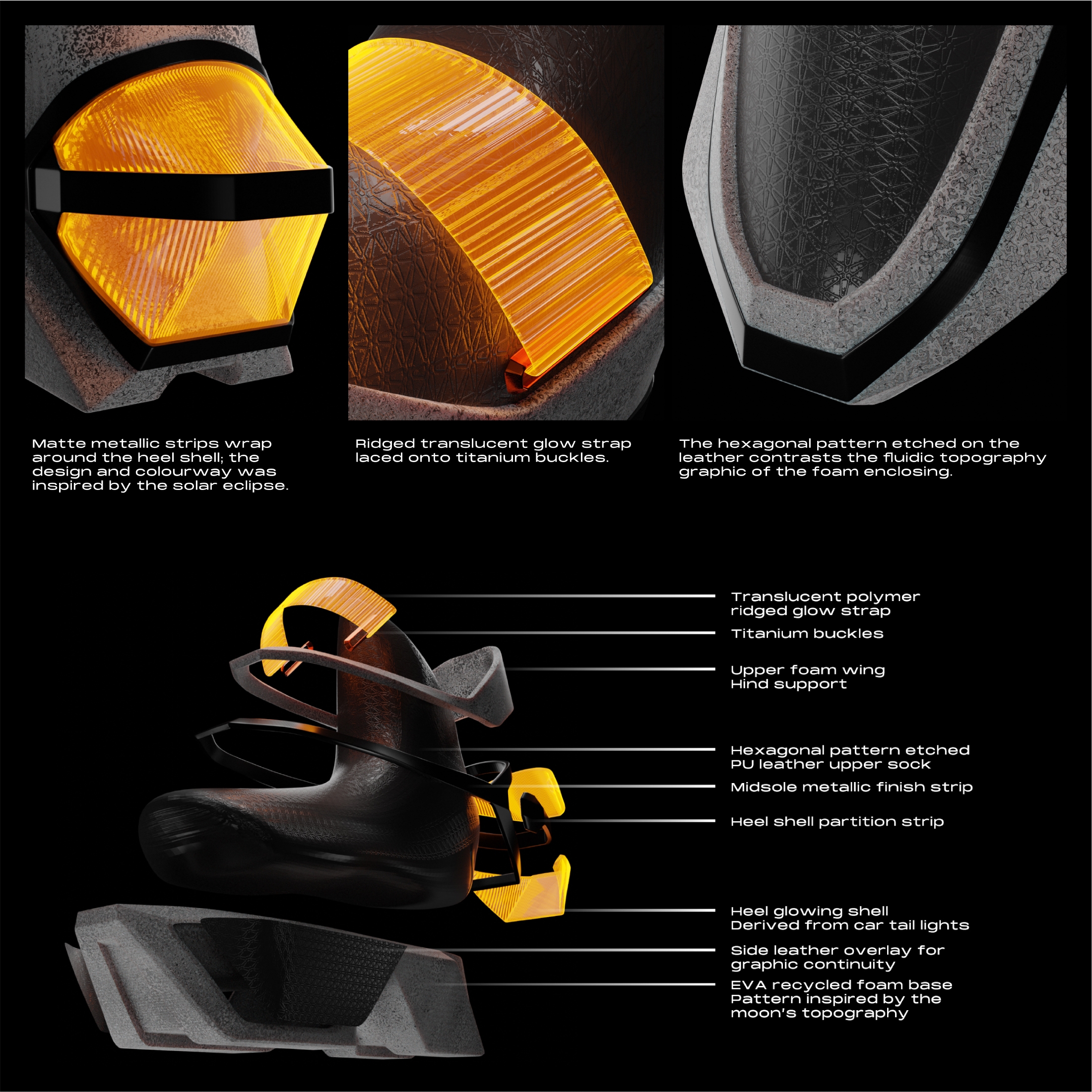 A futuristic space boot conceived at the intersection of cutting-edge space tech and sneaker culture. A design inspired by the moon for sneakerheads on Earth. With renewed interest in space exploration ignited by NASA’s Artemis mission and the endeavours of Space X, the shoe rekindles one’s childlike curiosity of the cosmos.