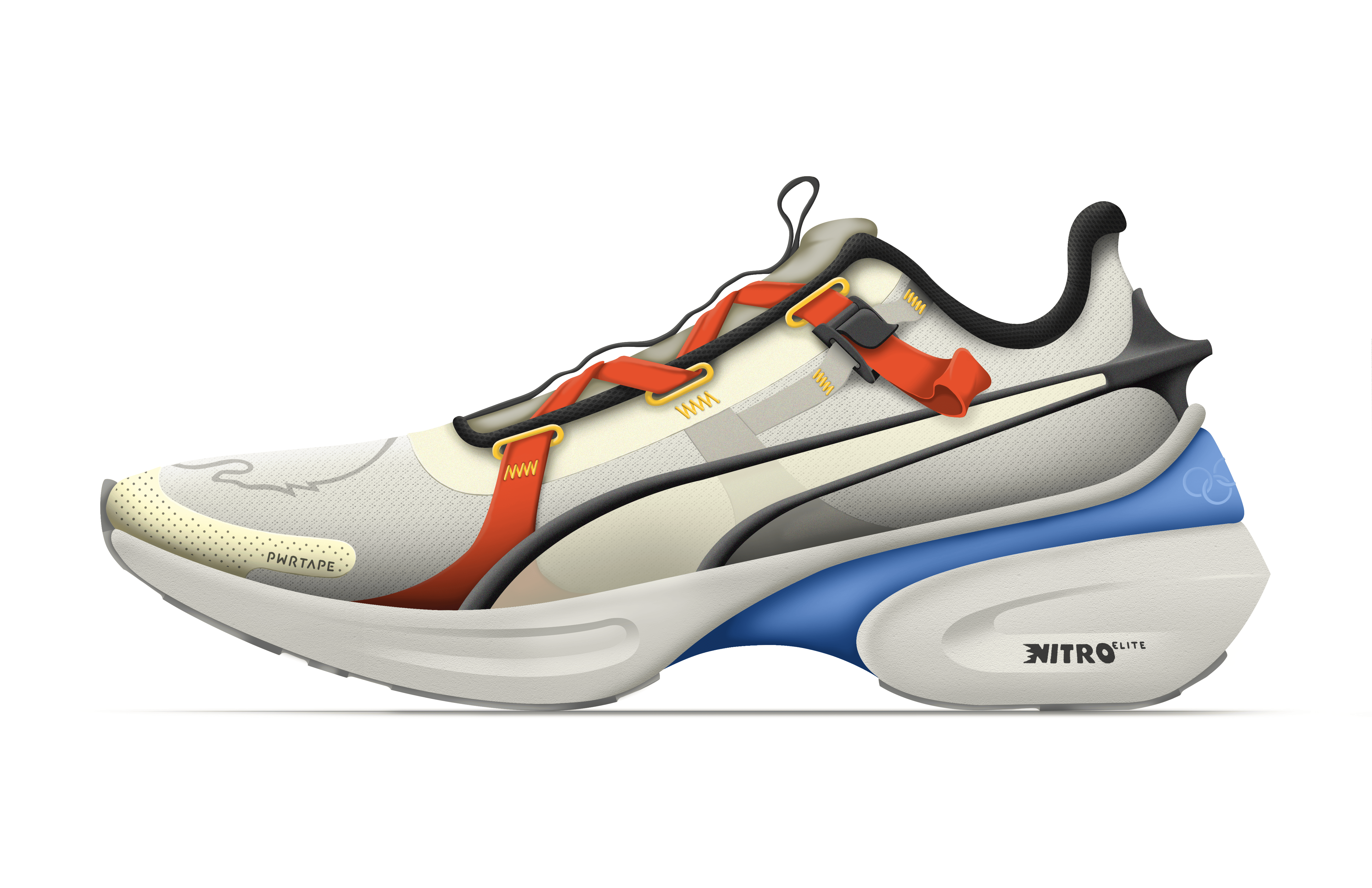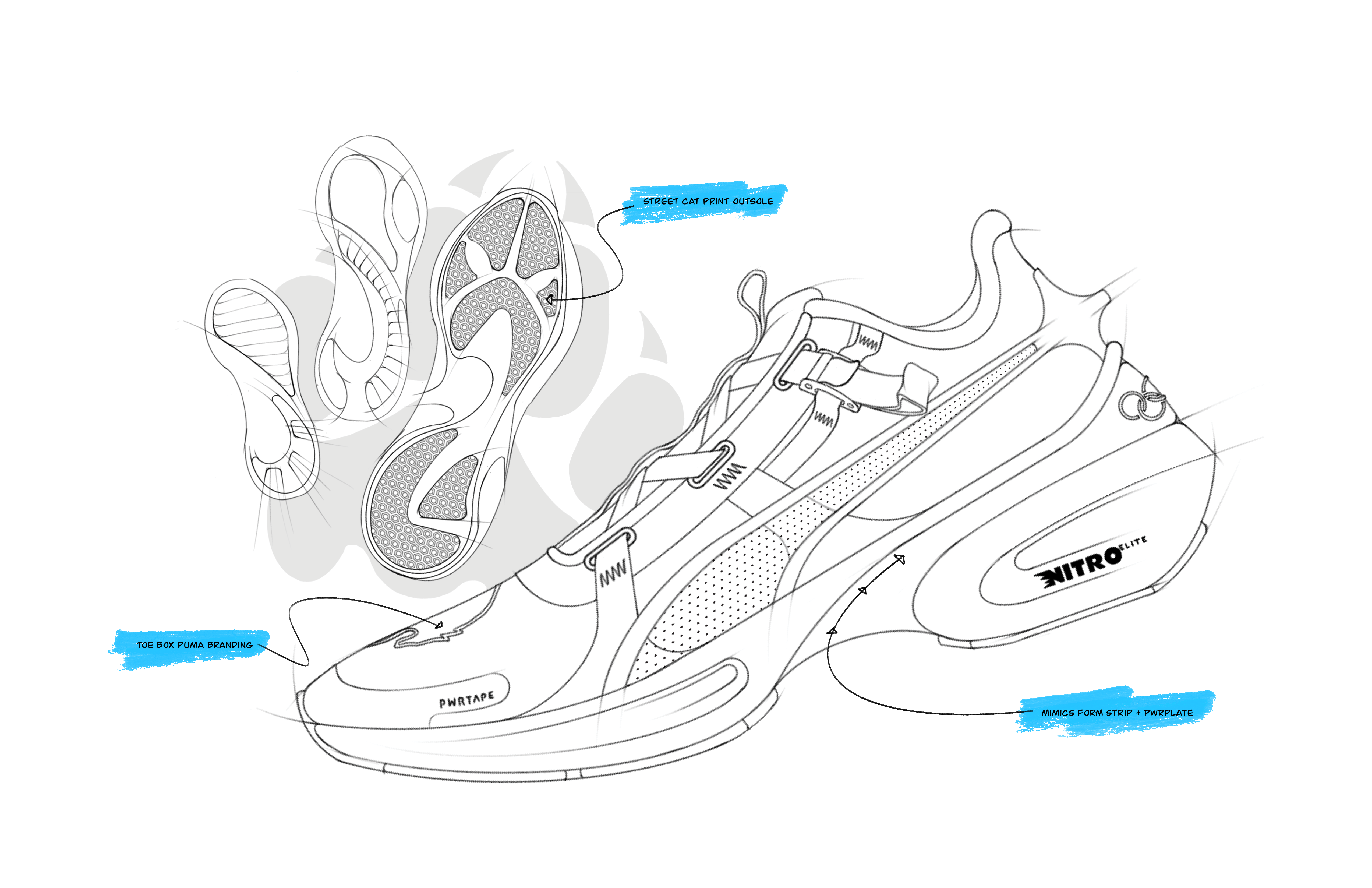 The Puma Street Cat is designed for the elite Olympic marathon runner. This shoe supports the athlete through long range distances, in this case, Olympic marathon runner, Molly Seidel, during her push for the podium in the 2024 Paris France Olympic Games. The Street Cat incorporates a carbon fiber plate within the sole to provide forward spring, as well as a wedged heel counter, to lock the wearers foot in place, and give the athlete a push point to get their shoes off quick after a long run. The Shoe also integrates pull strap style lacing, which helps quickly lock down the foot to the sole.