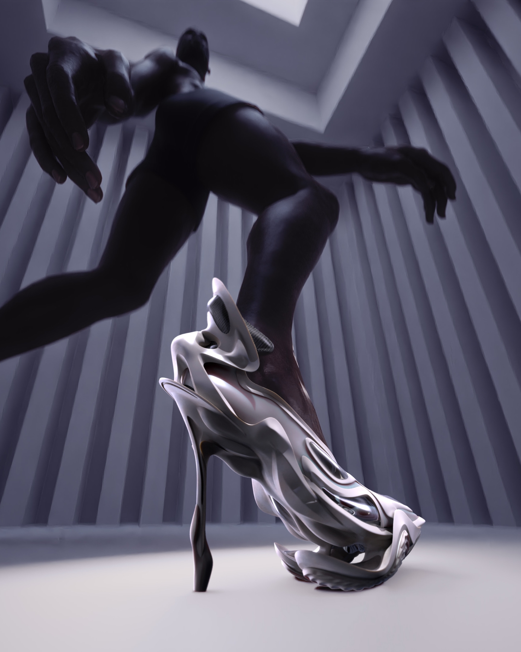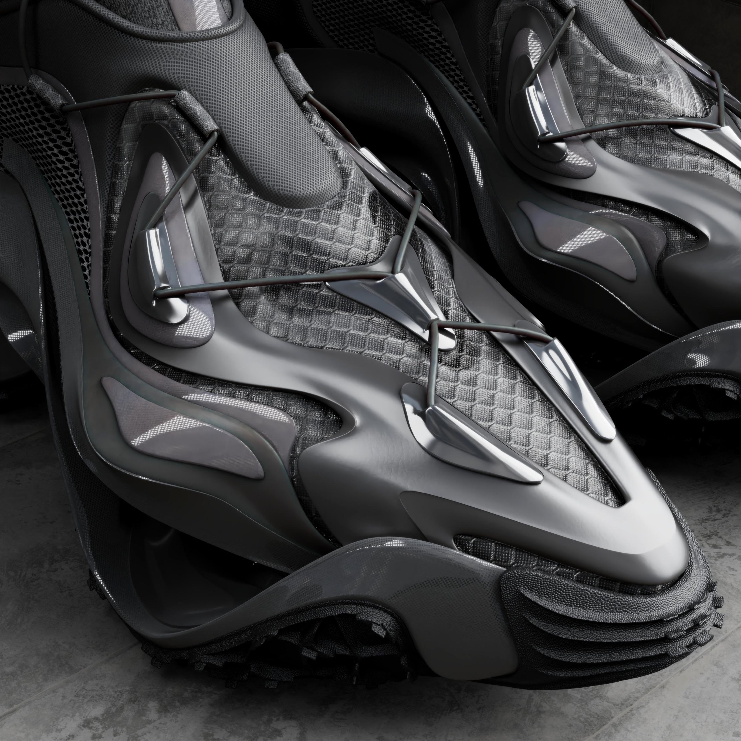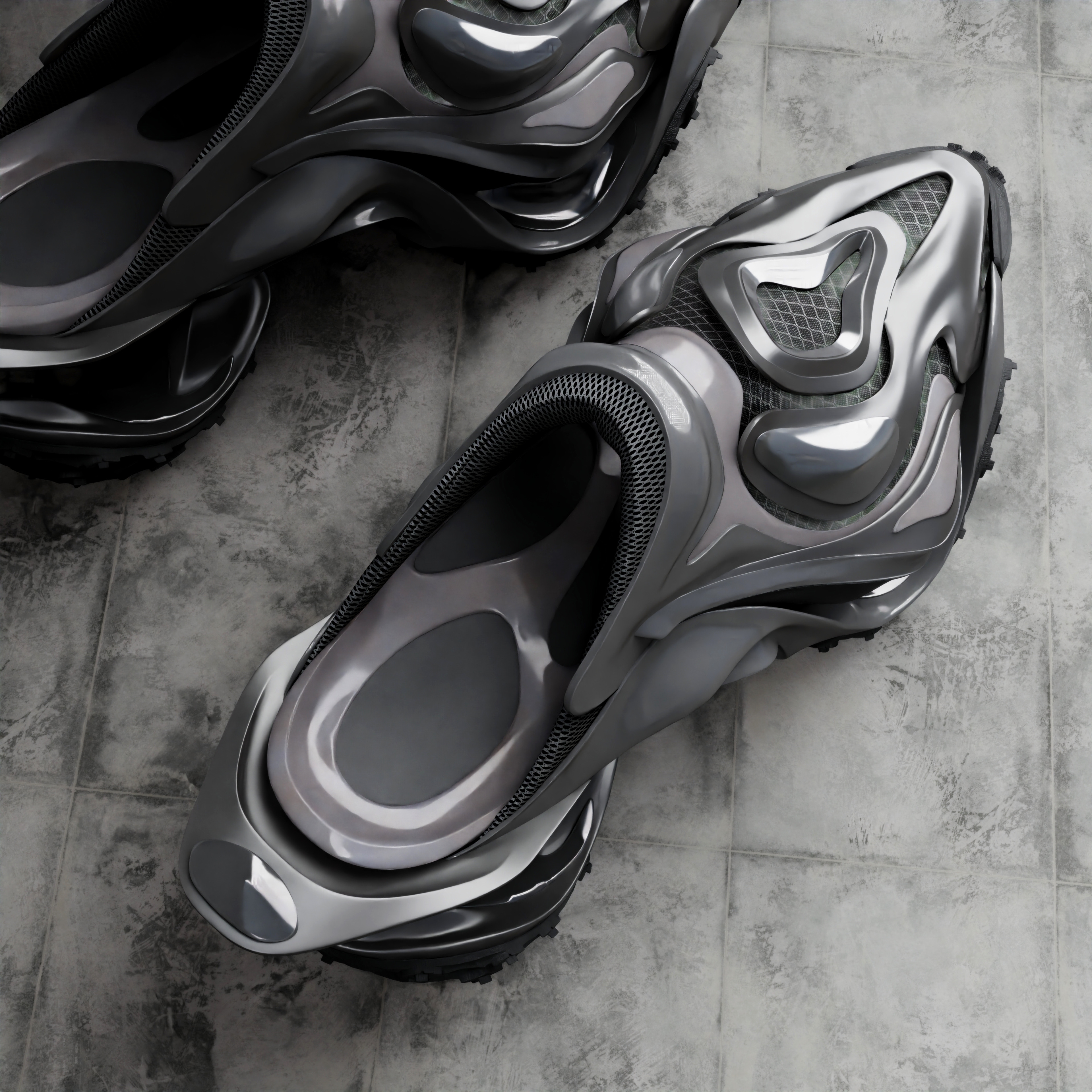 This collection draws inspiration from elevated military references and technical detailing. It uses tafoni sandstone formations as the foundation for the tread, serving as a design feature that allows it to adapt to diverse environments and terrains. Both styles are driven by elements that create a sense of support, incorporating protective paneling and versatility to echo the tactical nature of the designs, while offsetting it with non-traditional silhouettes.